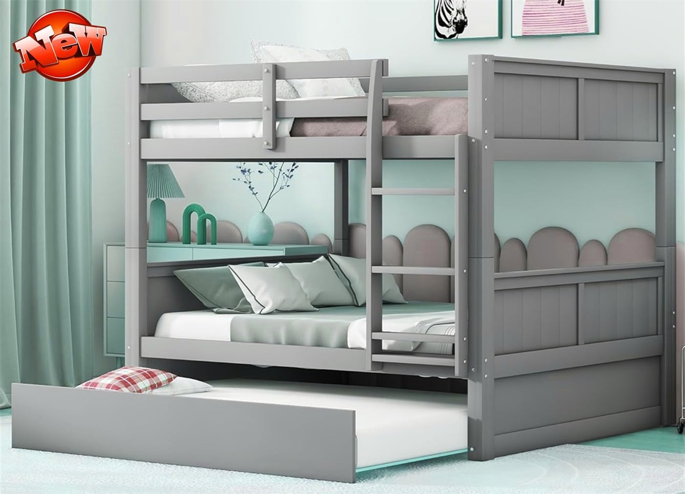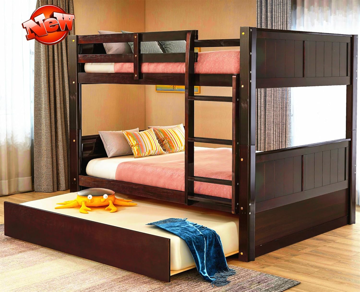 Get it faster If any parts are damaged or lost in the process of transportation, Just tell us, we promise to replace the parts for you. Product features 1. 100% upgraded version & stronger & safer --- Origin: Vietnam. YES, our designers have specially reinforced this solid wood full over full bunk bed (especially the legs, slat system, ladder and guardrails). Material: thicken and higher quality solid pine wood and higher-grade plywood and MDF wood panels. Tightly connected by higher strength iron bolts. It is more stable and has a longer service life. Very suitable for kids and adults. 2. 100% greater weight capacity & safer & more corrosion-resistant --- Weight Capacity: Upper bed: up to 700 pounds, bottom bed: up to 900 pounds, Trundle: up to 400 pounds. Total product weight: 174 pounds. Thickened and reinforced guardrails and ladder will provide more safety for your children. In addition, better quality and more environmentally friendly anti-corrosion coatings are applied to the surface, You will not be disappointed! 3. Convertible design --- You can easily convert this bunk bed into two separate full beds and one twin size trundle that is easy to pull out. Recommended mattress thickness: Top: 6"; Bottom: 8"; Trundle: 8". (Please note that the mattress is not included). 4. Easy to assemble --- Size: 79.5"L x 57.0"W x 59.9"H. Please refer to the picture for details. With detailed instructions and all necessary accessories, you can quickly complete the assembly. Number of packages: 2
