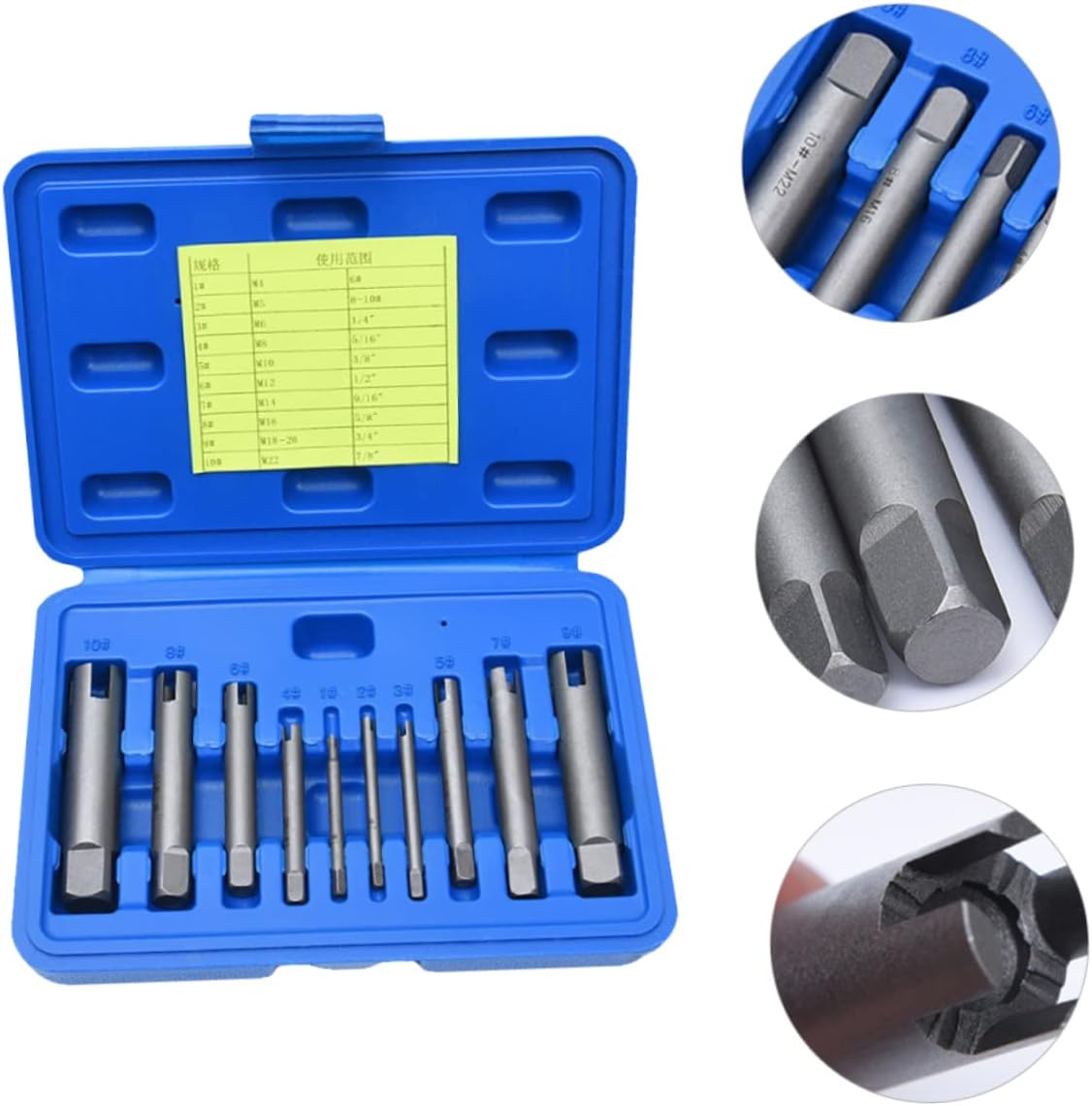 Package List 10x broken screw extractors, 1 x storage box Features -Size: About 8.00X1.79X1.79cm / 3.14X0.70X0.70inch damaged bolt removers. -Material: Alloy stripped screw tap extractors. -Color: Silver alloy screw extractors. -Note: with/without label alloy screw extractor kit -The broken end tap extractor of -M10 specification is a three-jaw design durable screw removers -Great for industrial screw and bolt removal and for everyday home repair work repairing tools -Made of superior alloy, high hardness and damaged extractors -Surface sandblasting, wear- and , easy to clean and maintain screw remover tools -Removing broken or stripped screws could never been easier with this tool set broken tap removersGoods Informationbroken tap removers Made of superior alloy, high hardness and.repairing tools Great for industrial screw and bolt removal and for everyday home repair work.sturdy screw extractors Removing broken or stripped screws could never been easier with this tool set.bolts removers Surface sandblasting, wear- and , easy to clean and maintain.alloy screw extractor kit The broken end tap extractor of -M10 specification is a three-jaw design