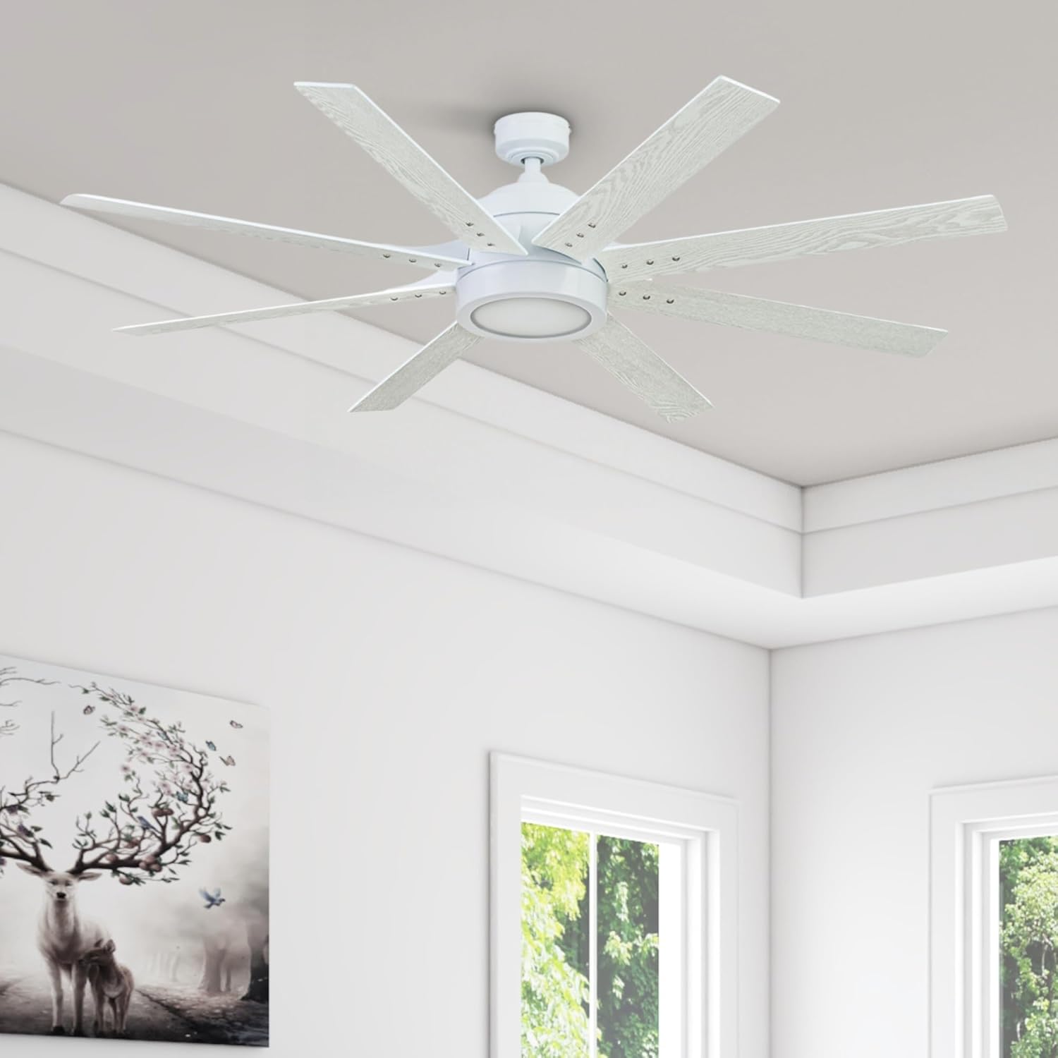 The Xerxes dry rated modern ceiling fan with light and remote combines stylish details with contemporary influences for decor inspiration. This large ceiling fan with light features frosted glass and dimmable LED lighting, along with an innovative 8-blade design that provides ultra-efficient, adjustable airflow. Control your Honeywell fan with our easy-to-use ceiling fan remote control that's packed with features like Walk Away Light Delay and Homeshield. Enjoy year-round comfort by adjusting the convenient reversible airflow switch on the remote that lets you change the direction of the modern ceiling fan with light. During summer, this ceiling fan with remote will provide a cooling effect, and throughout winter, our strong fan can reverse to spread warm air, helping reduce energy costs. This high-powered fan blends with many decor styles. When paired with your decor, it can be transformed into a mid-century modern ceiling fan, farmhouse ceiling fan, or the industrial ceiling fan with light you've been looking for. The LED ceiling fan lights provide 1400 lumens, 18 watts, and a 3000k color temperature. Whether you're looking for a large bedroom fan, living room ceiling fan, or family room fan, this reversible gray and white ceiling fan with light has you coverd.