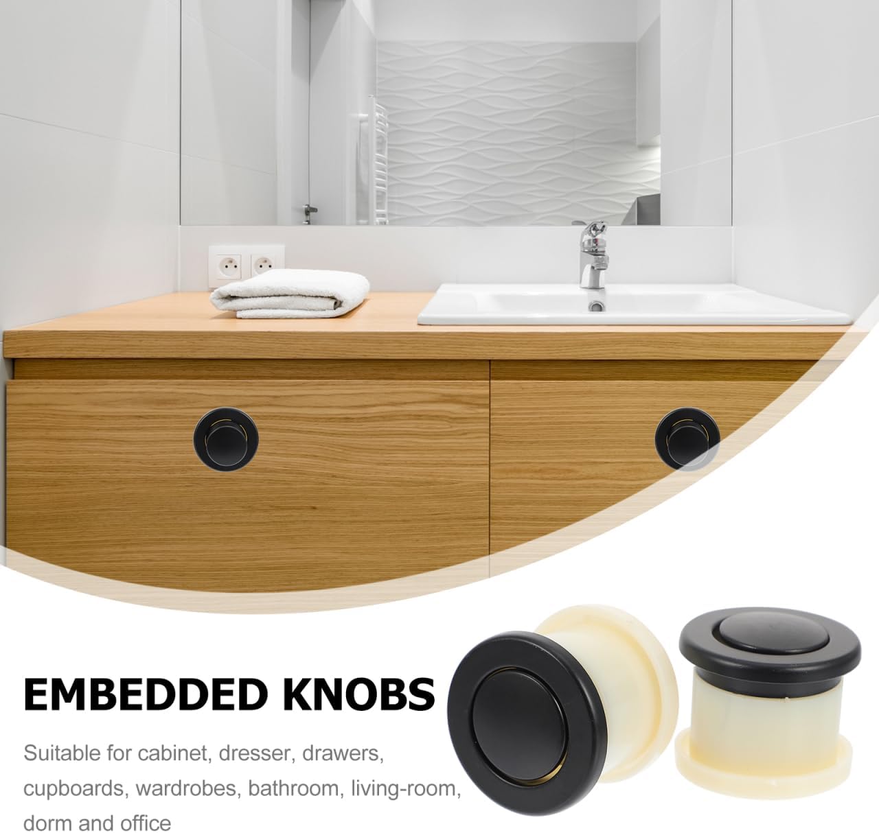 Housoutil 6Pcs Embedded Retractable Spring Knobs Zinc Alloy Cabinet Door Pulls Hidden Handle Design for Drawers Dressers Cupboards