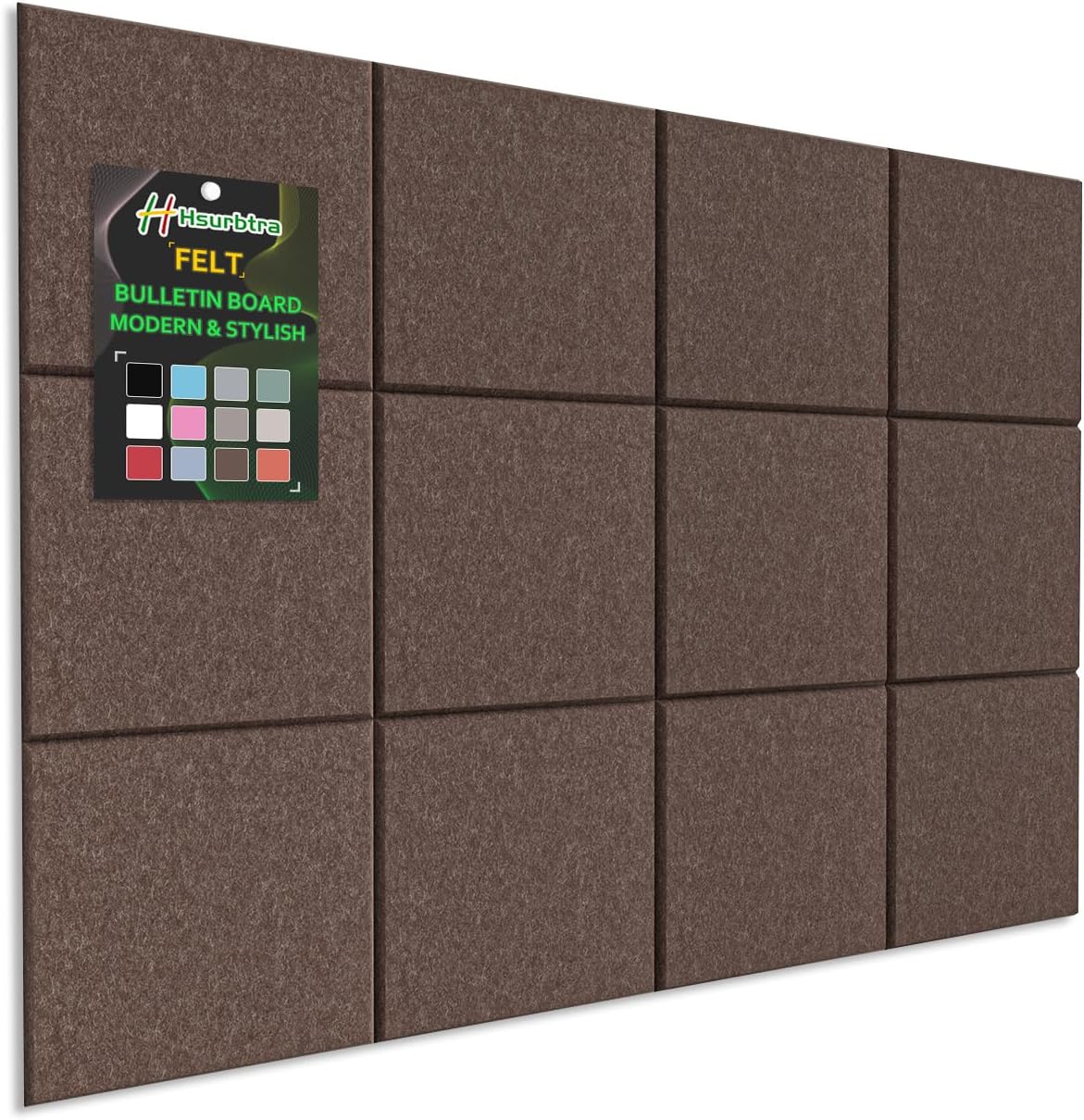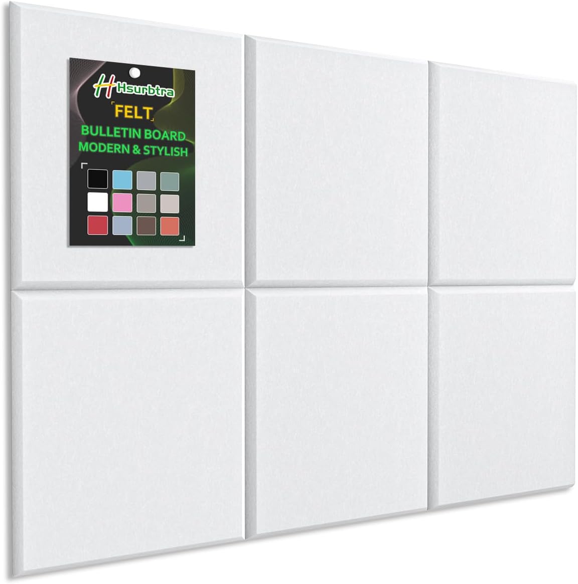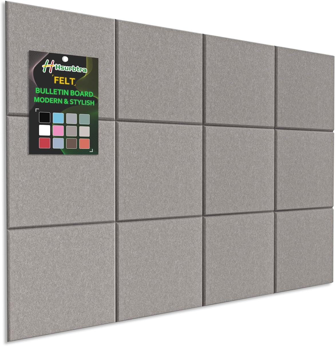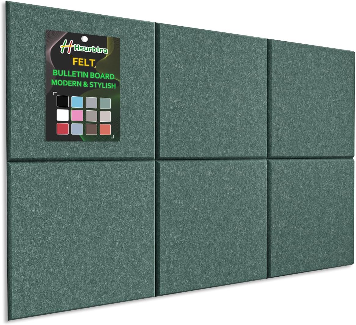 Crafted from premium polyester fabric, this cork board combines safety, style, and functionality. The dense material holds pins securely without tearing, while the matte finish reduces glare, adds warmth to any space. Why Choose Hsurbtra Felt Bulletin Board? √ Quiet: No noisy tacking like cork or metal boards √ Portable: Use on walls, doors, or even tabletops √ Modern: Alternative to cork boards, more innovative and stylish √ Safety: Odorless, human and pets friendly √ Long-lasting: Lightweight but dense and sturdy – lasts for years √ Easy Installation: With double-sided adhesive paper. Mounts in minutes – no tools and no drilling required Versatile Use: Classrooms displaying student work Families tracking reminders and photos Offices displaying calendars and work schedules Craft rooms organizing decorations and supplies Cafés showcasing daily specials Wellness studios tracking schedules Creative studios brainstorming ideas Specification: Size: 12 Pack 11.8 x 11.8 inches felt bulletin boards Thickness: 0.35 inches Included: 50 pushpins and 42 double-sided adhesive Upgrade Your Space Now – A stylish, safe, and versatile bulletin board that adapts to any task!