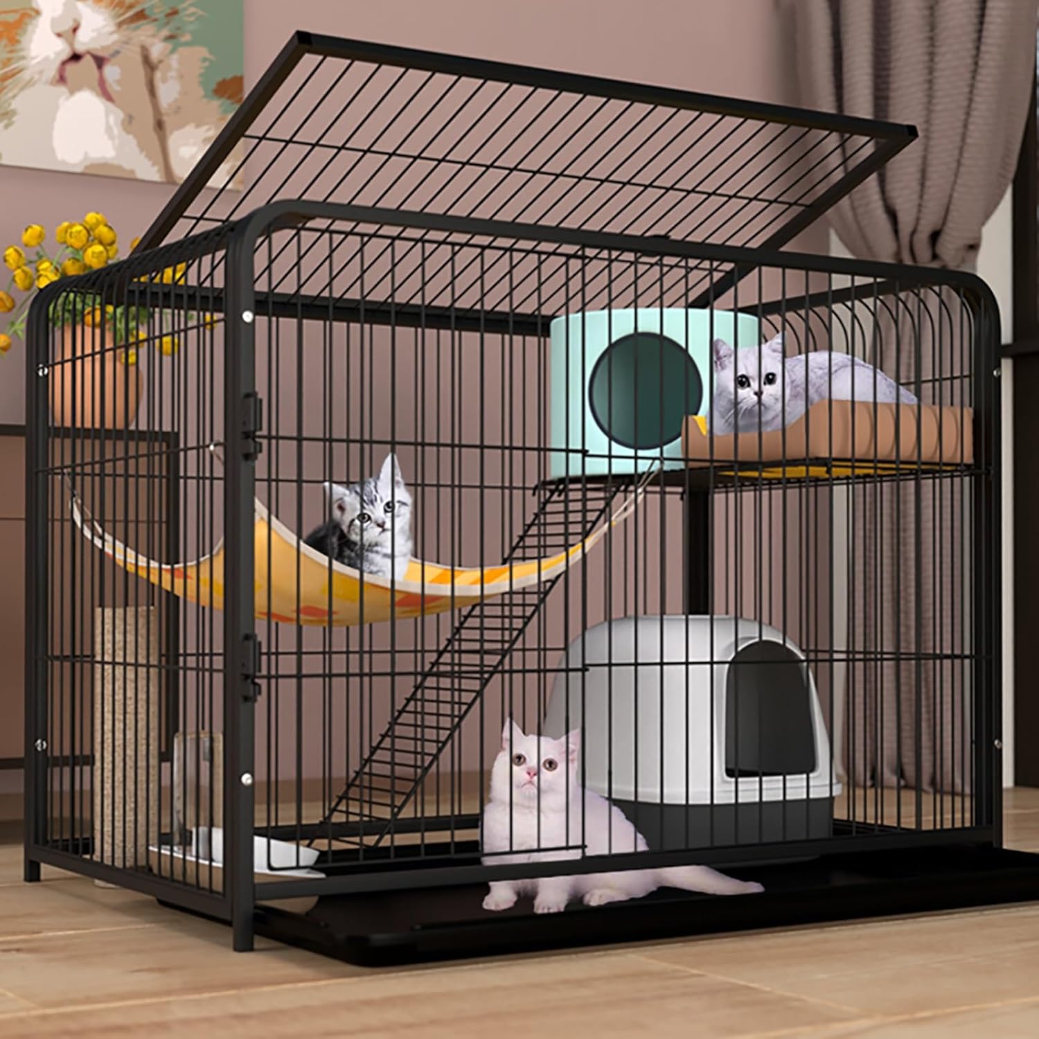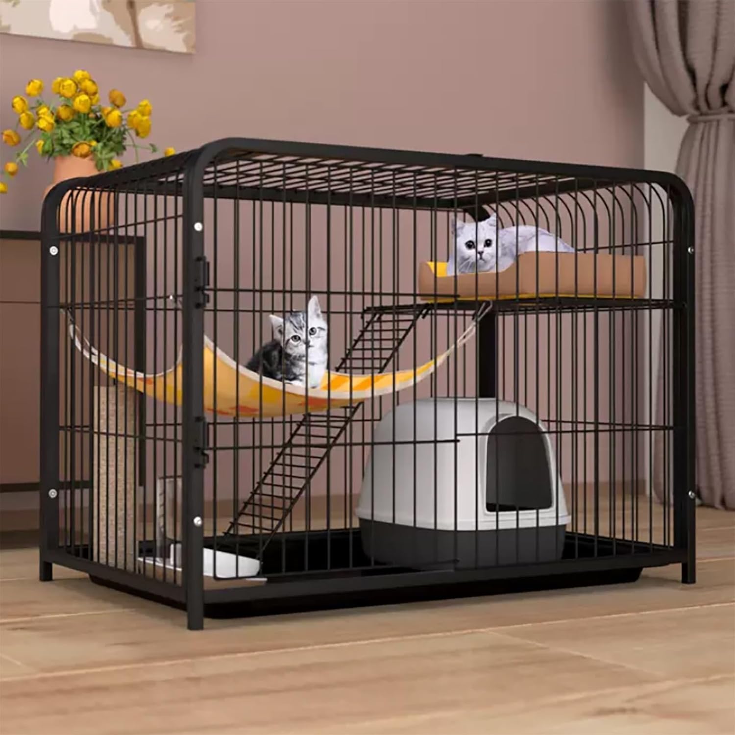 Are you looking for a cat cage with a nice appearance and stable construction Check out our cat cage. Our Cat Cage Made of high quality low carbon thick steel, the frame is very sturdy, rustproof and wear-resistant, ensuring stability and durability of the cage. Each space is scientifically divided, giving your cat a fun and safe place to spend time or play. This wire cage is suitable for most small animals, such as puppies, kittens, rabbits, guinea pigs, ferrets and more, you can give it to family or friends with pets to make them feel that you care for them. The spacious cat bed offers space for even the most energetic cat. Your furry little friend will be the king of his castle in the cat bed. This spacious enclosure will ensure your pets stay fresh and happy all the time. Size: 60*40*47cm/24*16*18in, 77*53*58cm/30*21*23in, 92*58*66cm/36*23*26in Reminder: Please note that the measurement data may vary slightly. Please refer to the actual product, there may be a deviation of 1-3 cm. Ask for forgiveness. The color is produced by different camera settings, shooting light source and computer settings. Actual colour may vary depending on the picture. Please refer to the actual product, but this is not a quality problem. We hope you are satisfied with your purchase. If you have any questions about customer service, please feel free to contact us. Thank you.