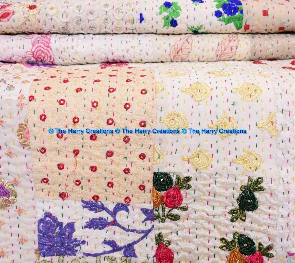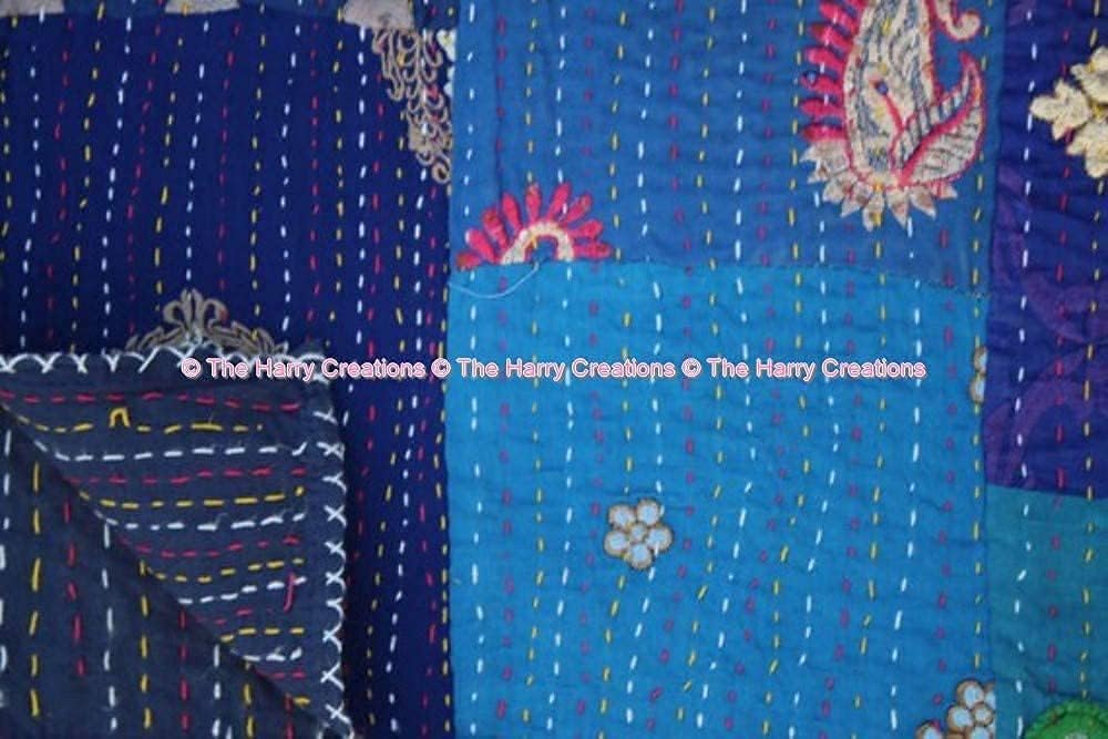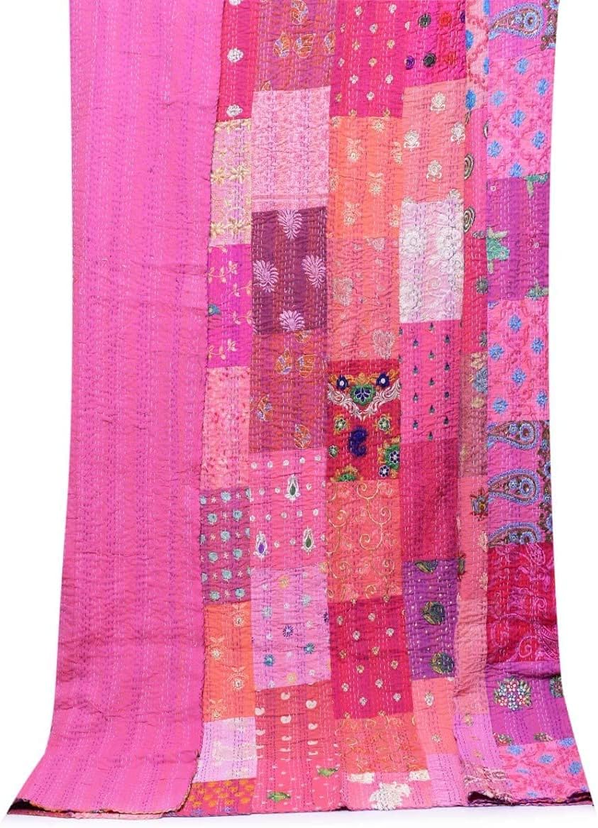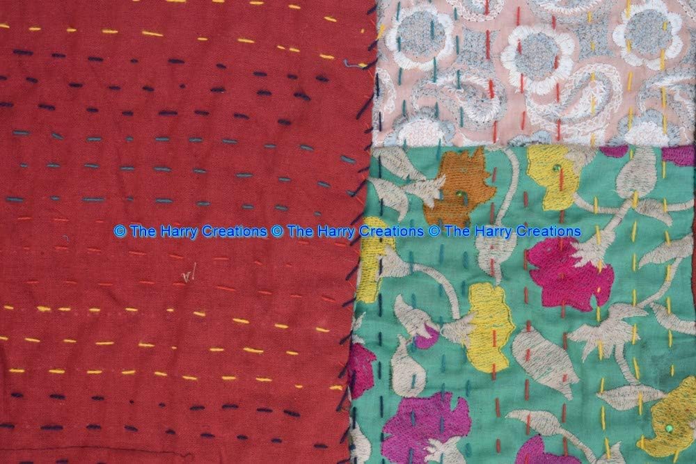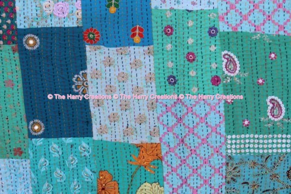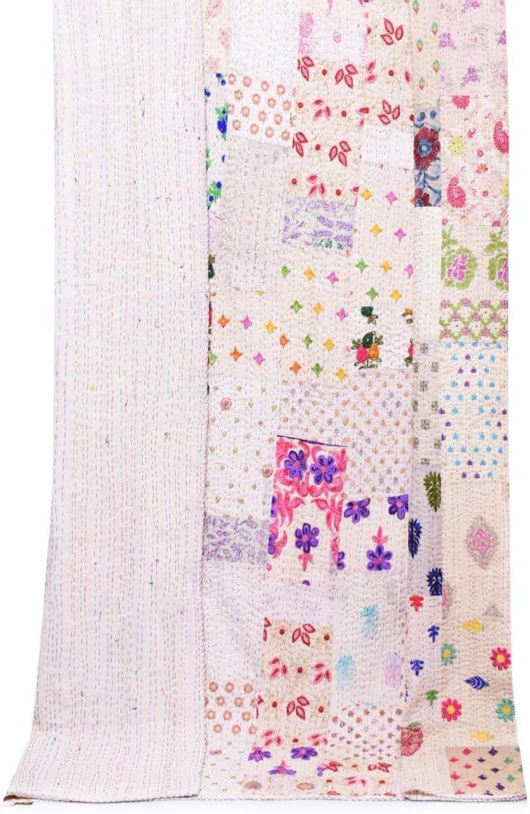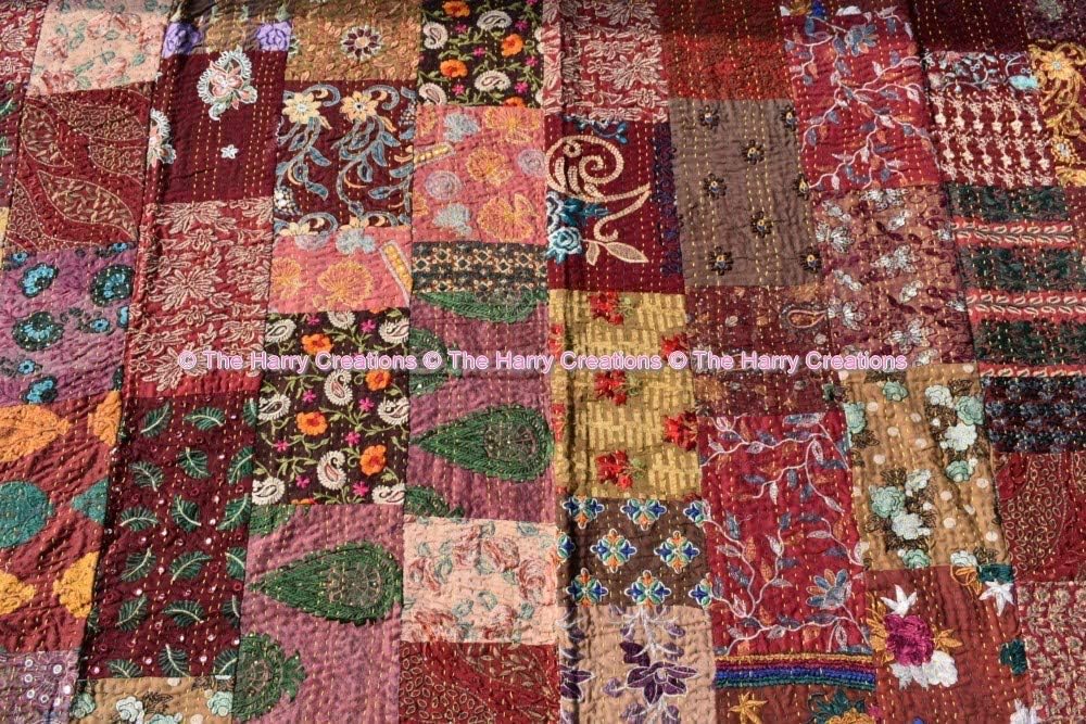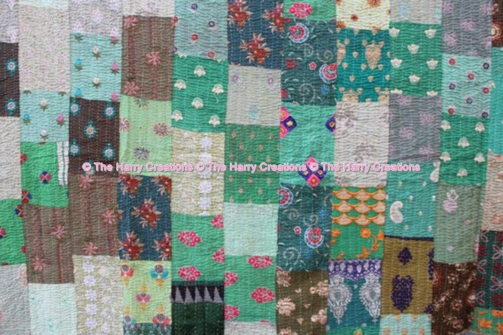 Women in India have saved their old Dresses to make quilts for centuries, Kantha is an old art of embroidery done by the women in rural India. The Throw is made of Vintage cotton Dresses, Stitched together with hundreds of small straight stitches. Each one is unique, No two are the same. As old Vintage Dresses are used for these throws there may be signs of wear & Tear and may have little patches or some may have extra thread, This is not an imperfection but its characteristic. These throws are reversible & can be used either side. The Flip side is the plain as shown which makes it more useful and can be used anywhere in the house be it as a Bedspread,Throw, Quilt, Sofa cover or Tapestry. These throws are one of a kind Throw. Each throw is different. No two throws are the same.