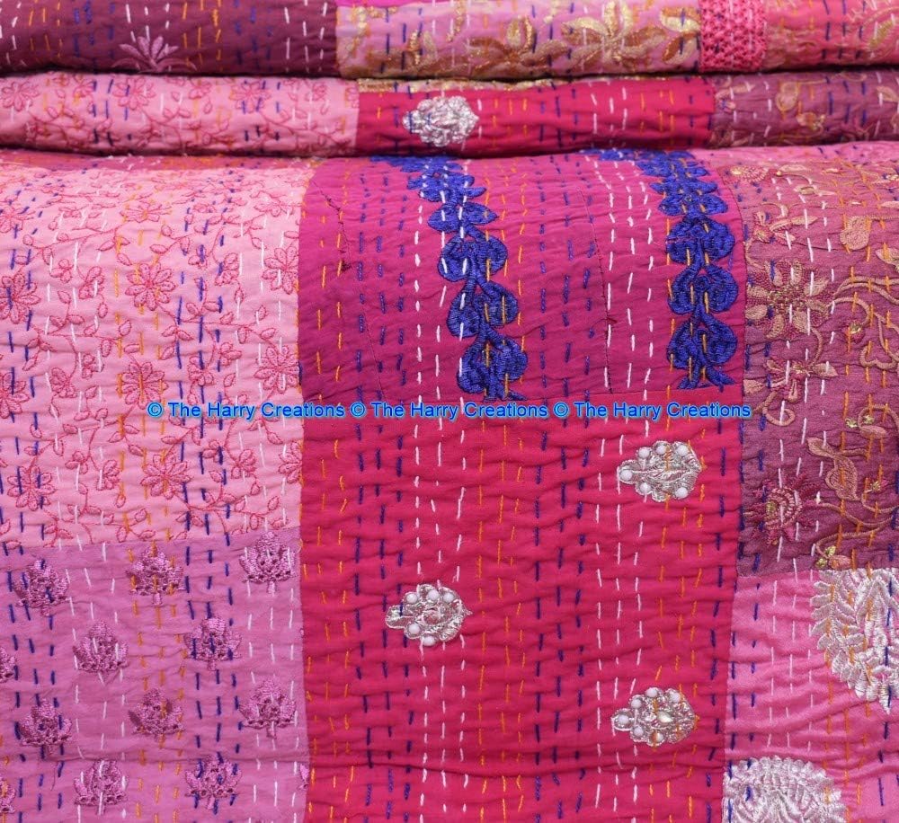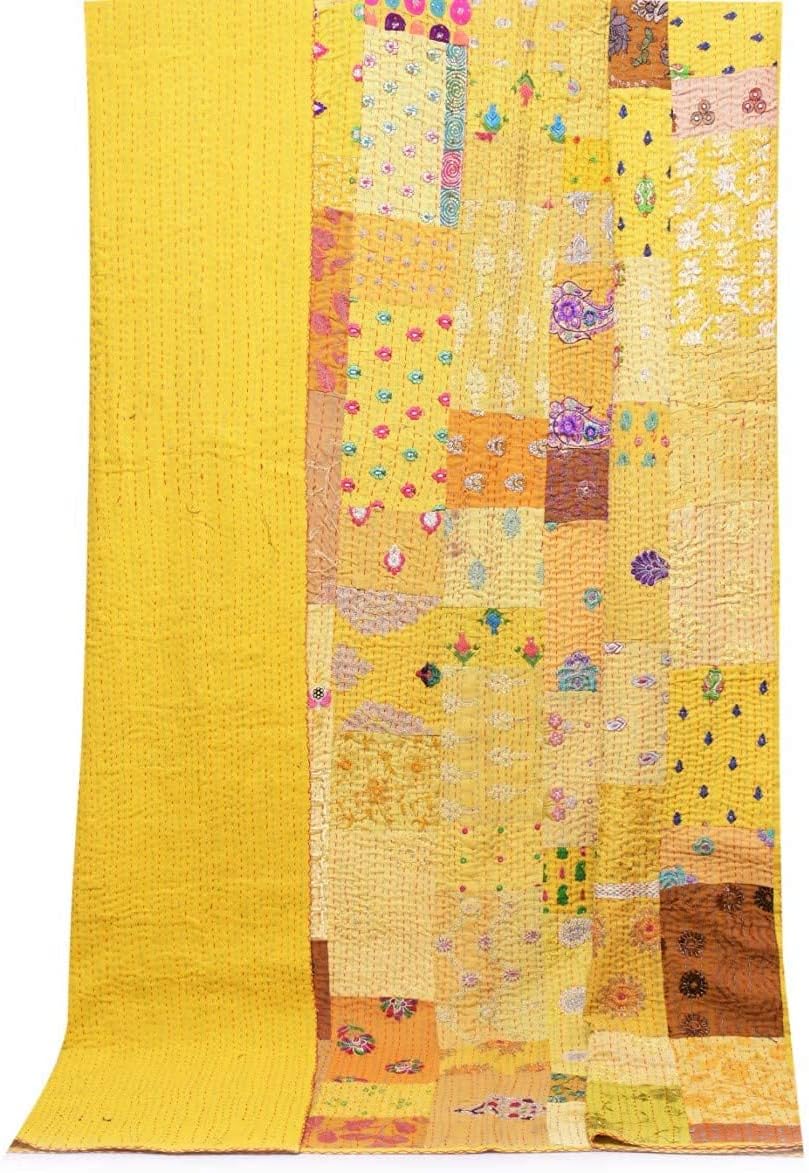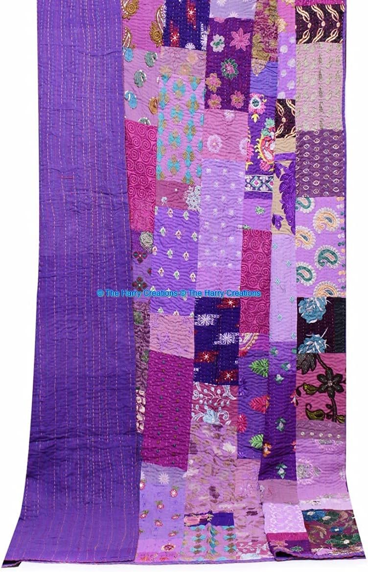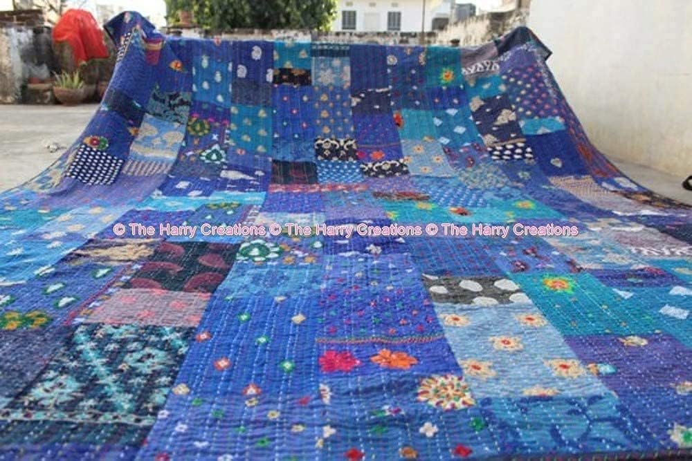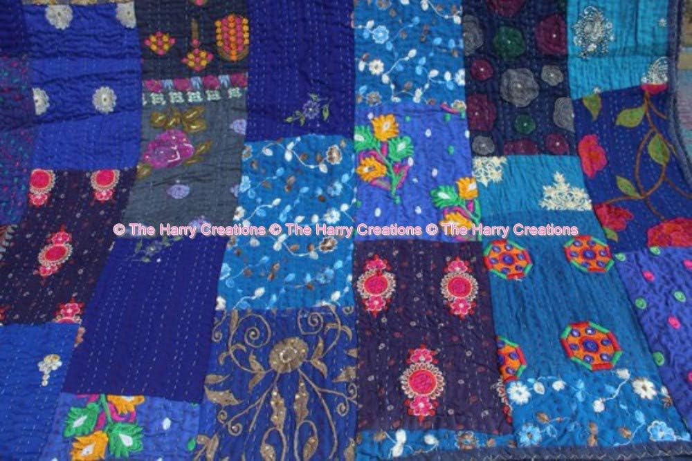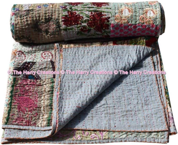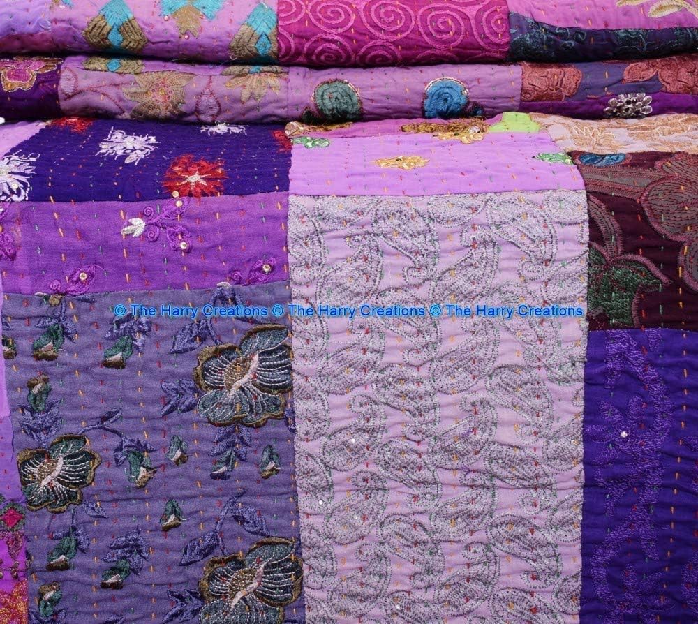Women in India have saved their old Dresses to make quilts for centuries, Kantha is an old art of embroidery done by the women in rural India. The Throw is made of Vintage cotton Dresses, Stitched together with hundreds of small straight stitches. Each one is unique, No two are the same. As old Vintage Dresses are used for these throws there may be signs of wear & Tear and may have little patches or some may have extra thread, This is not an imperfection but its characteristic. These throws are reversible & can be used either side. The Flip side is the plain as shown which makes it more useful and can be used anywhere in the house be it as a Bedspread,Throw, Quilt, Sofa cover or Tapestry. These throws are one of a kind Throw. Each throw is different. No two throws are the same.