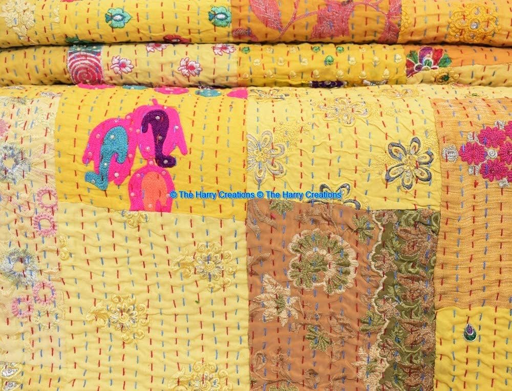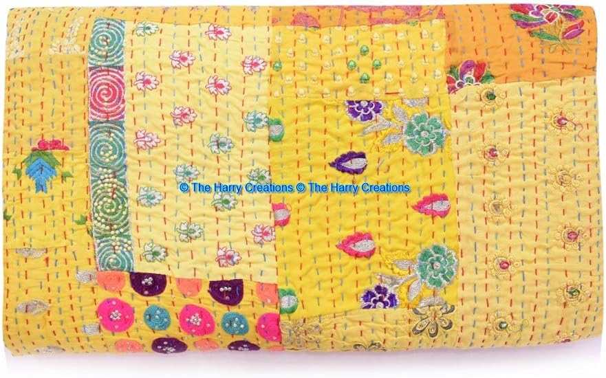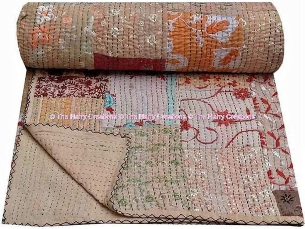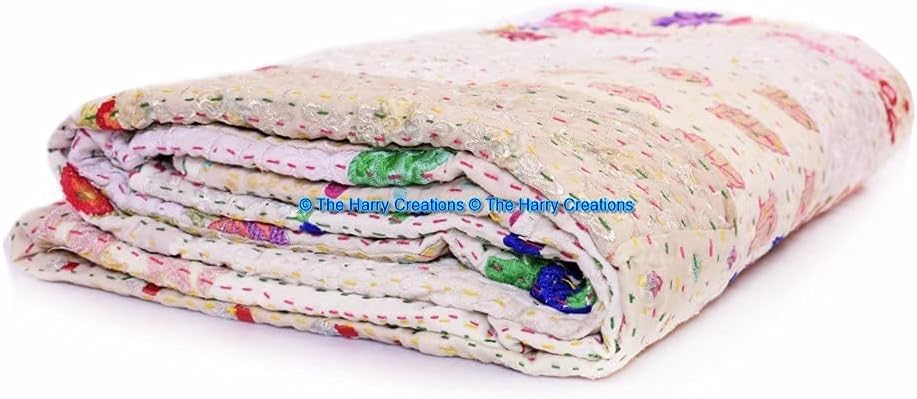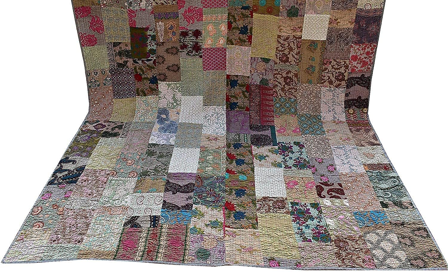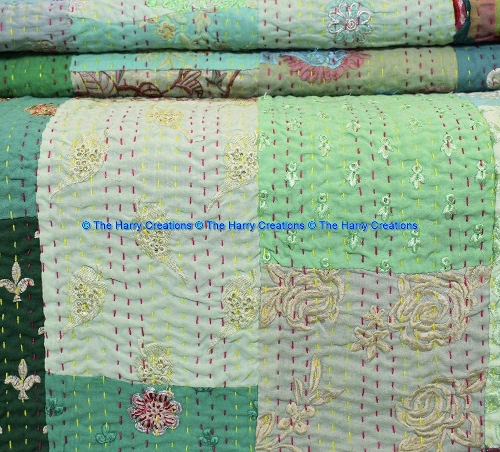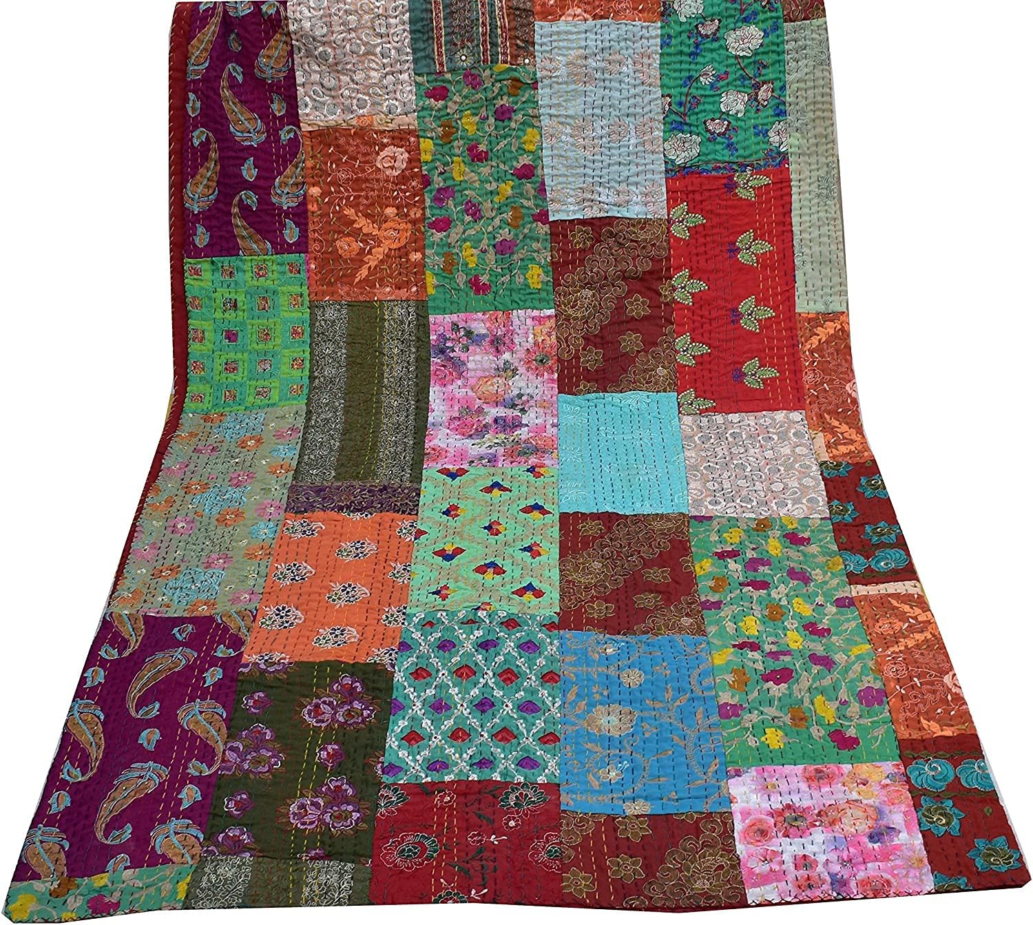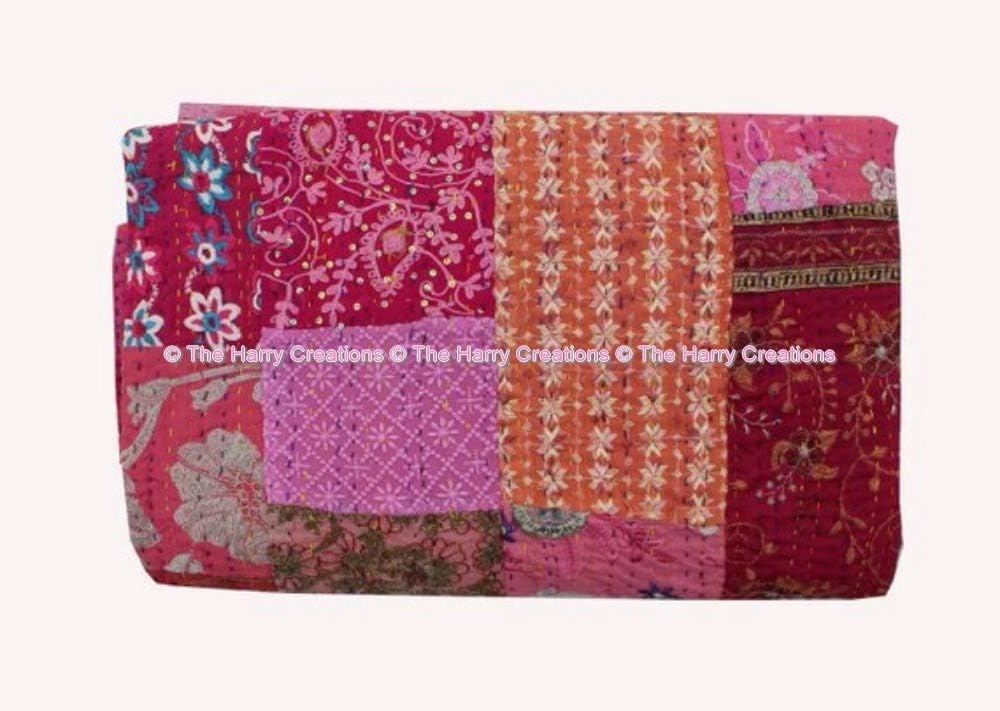 Women in India have saved their old Dresses to make quilts for centuries, Kantha is an old art of embroidery done by the women in rural India. The Throw is made of Vintage cotton Dresses, Stitched together with hundreds of small straight stitches. Each one is unique, No two are the same. As old Vintage Dresses are used for these throws there may be signs of wear & Tear and may have little patches or some may have extra thread, This is not an imperfection but its characteristic. These throws are reversible & can be used either side. The Flip side is the plain as shown which makes it more useful and can be used anywhere in the house be it as a Bedspread,Throw, Quilt, Sofa cover or Tapestry. These throws are one of a kind Throw. Each throw is different. No two throws are the same.