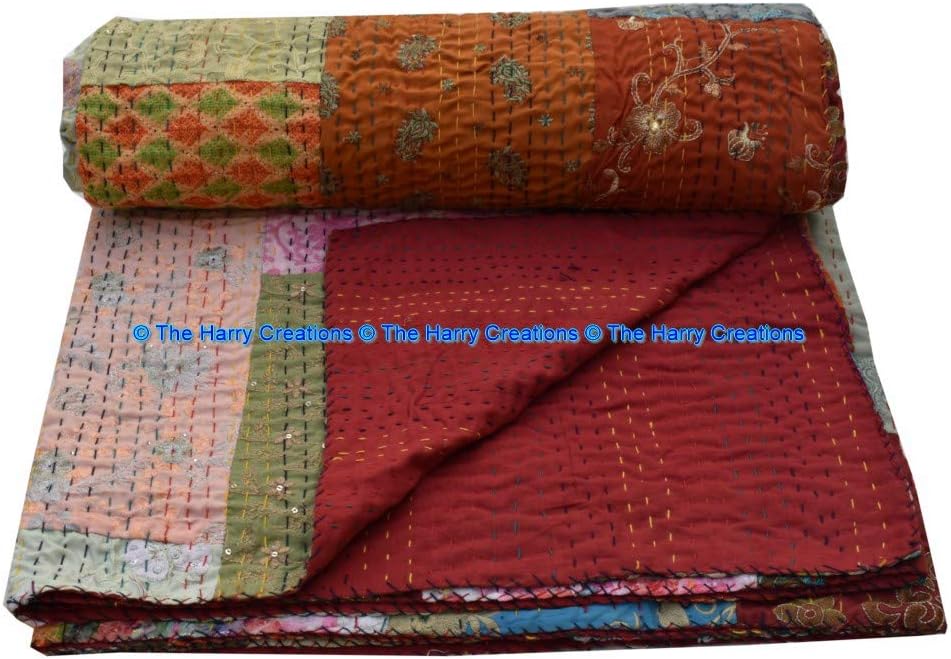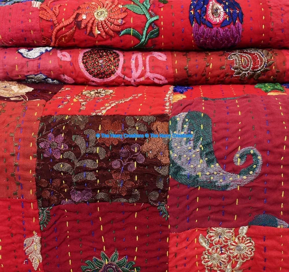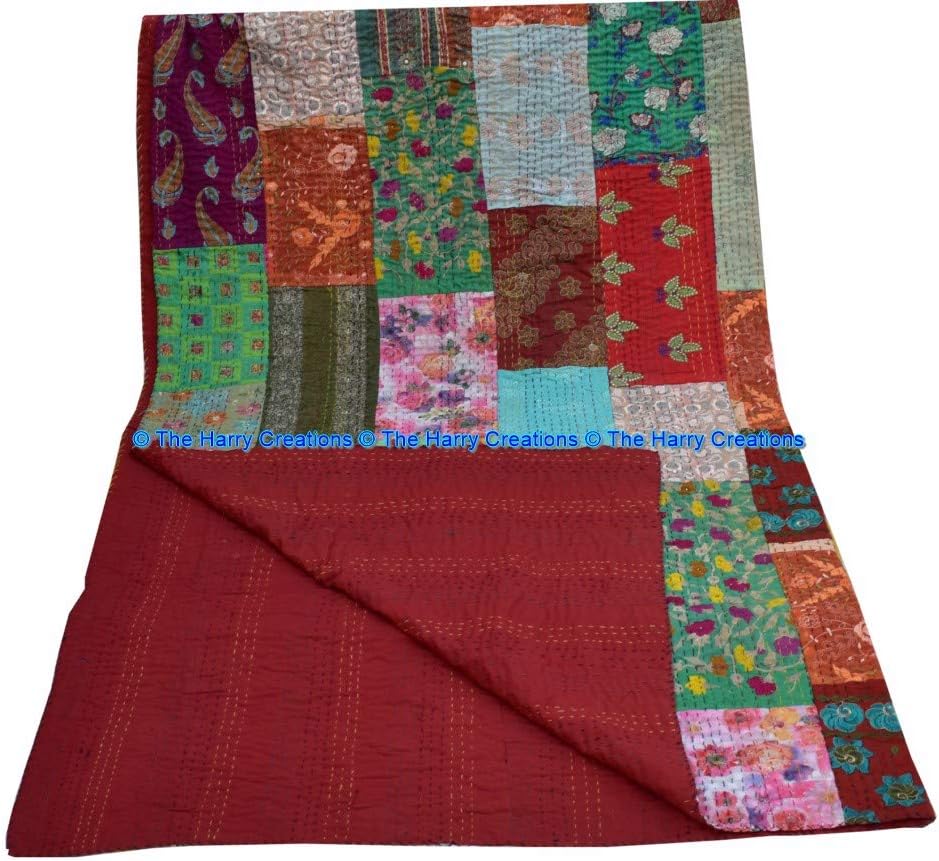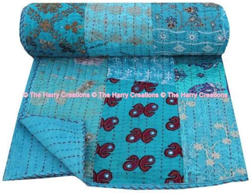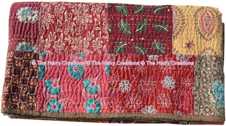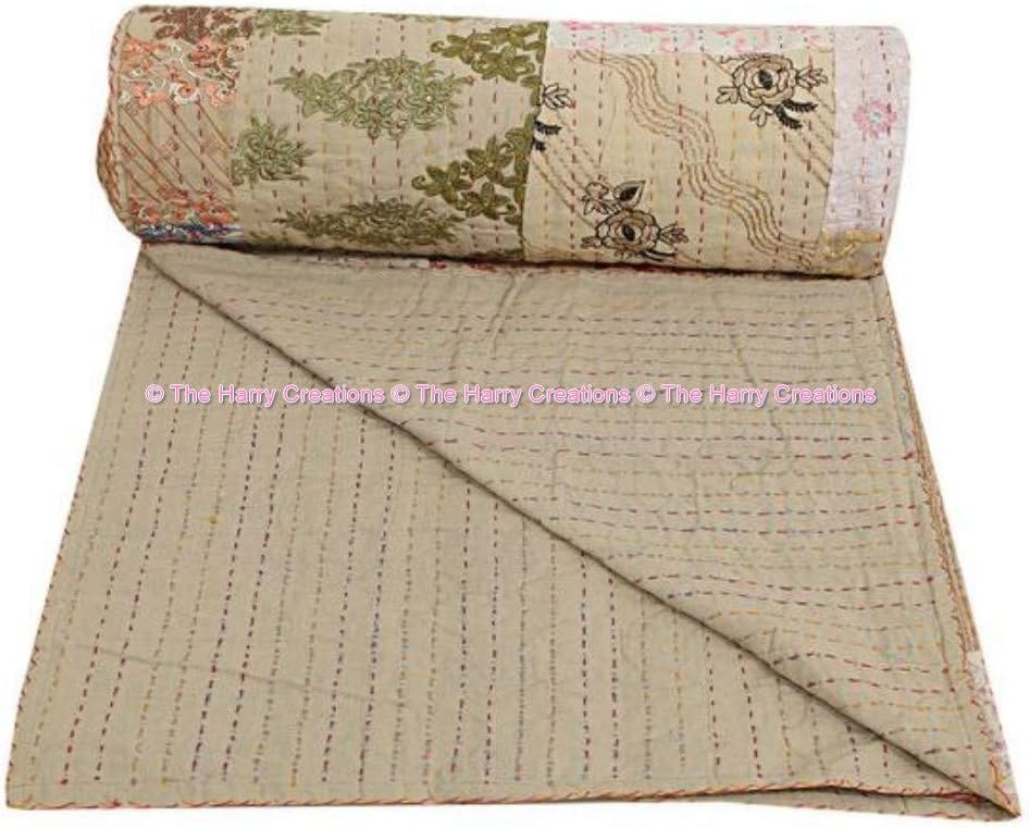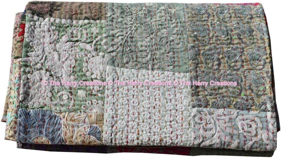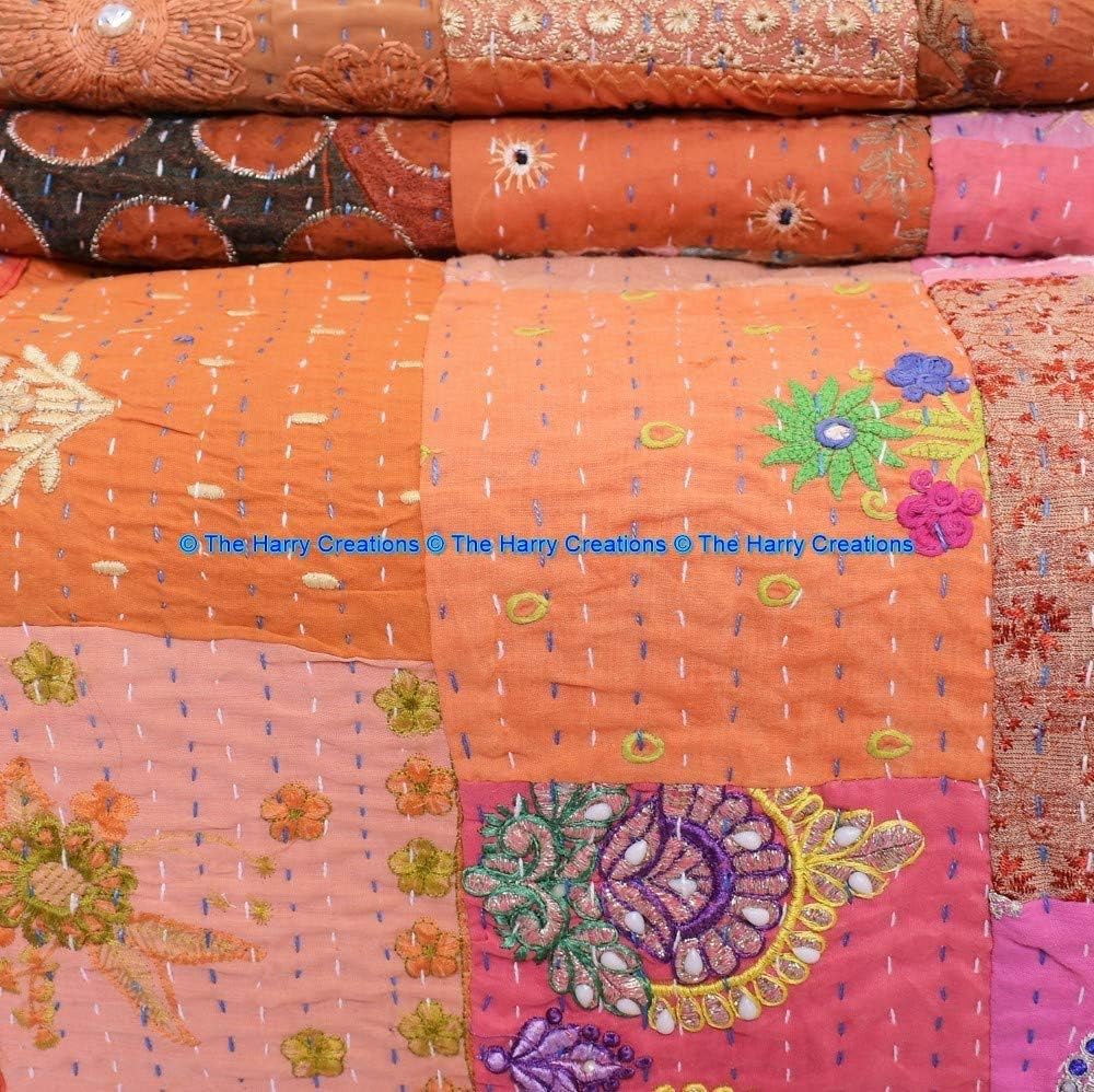 Women in India have saved their old Dresses to make quilts for centuries, Kantha is an old art of embroidery done by the women in rural India. The Throw is made of Vintage cotton Dresses, Stitched together with hundreds of small straight stitches. Each one is unique, No two are the same. As old Vintage Dresses are used for these throws there may be signs of wear & Tear and may have little patches or some may have extra thread, This is not an imperfection but its characteristic. These throws are reversible & can be used either side. The Flip side is the plain as shown which makes it more useful and can be used anywhere in the house be it as a Bedspread,Throw, Quilt, Sofa cover or Tapestry. These throws are one of a kind Throw. Each throw is different. No two throws are the same.