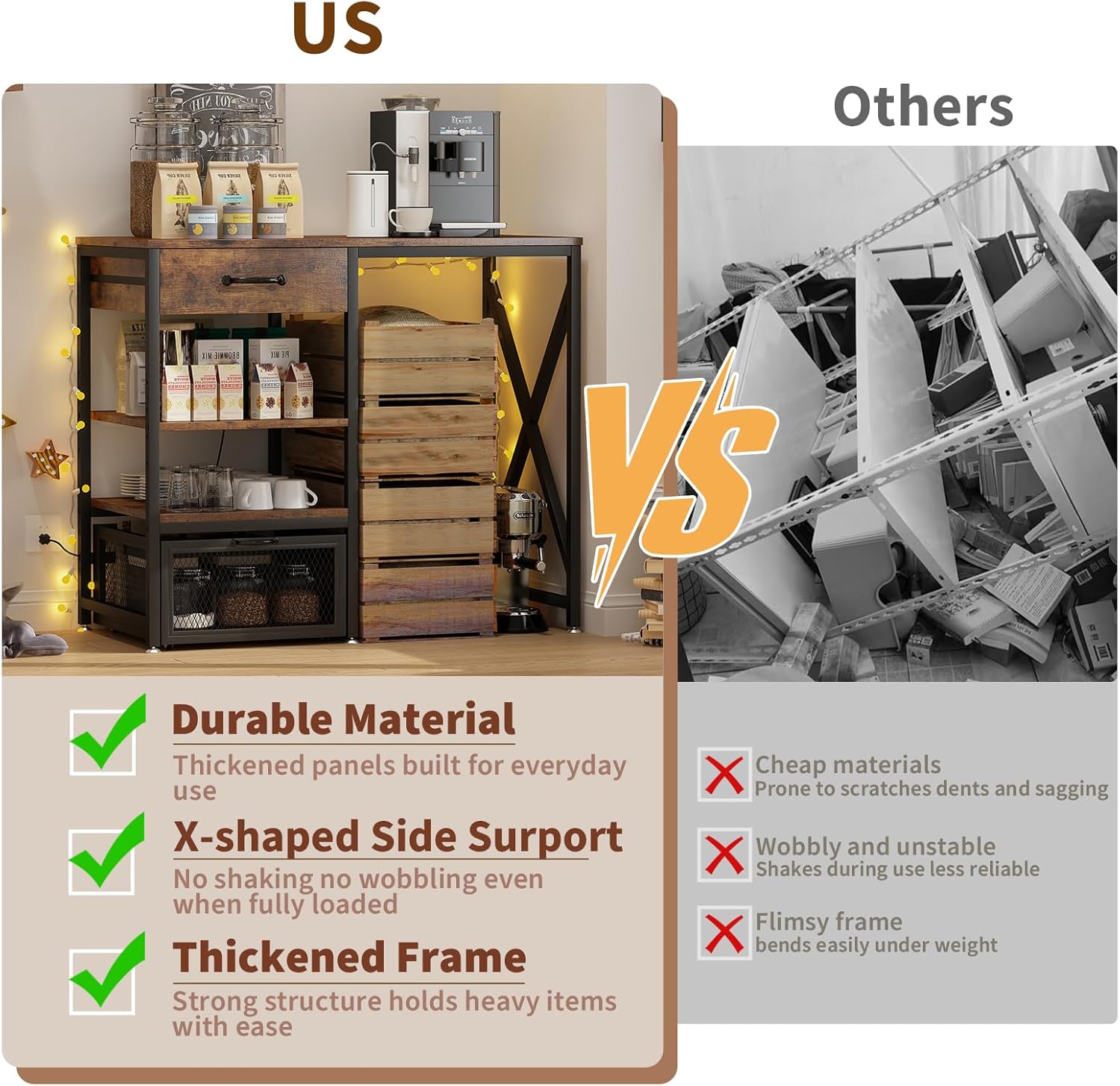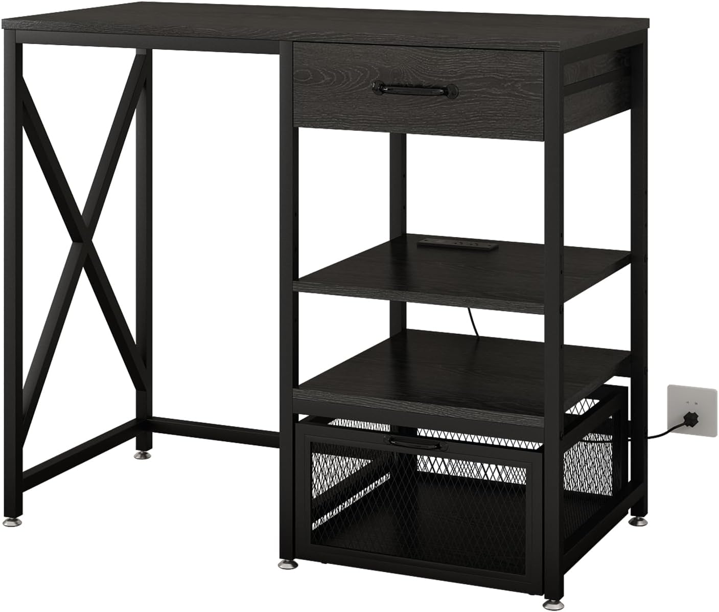 | Special Feature | Adjustable Height, Pull-out drawer, Pull-out wire basket drawer, With Power Outlet, X-shaped support |