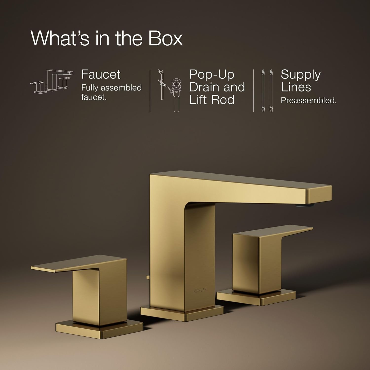 With clean lines and square features, the contemporary KOHLER Honesty widespread faucet draws inspiration from modern European design. This widespread bathroom sink faucet's sleek look helps create a clutter-free, easy-to-clean bathroom atmosphere. Elevate your experience with KOHLER.