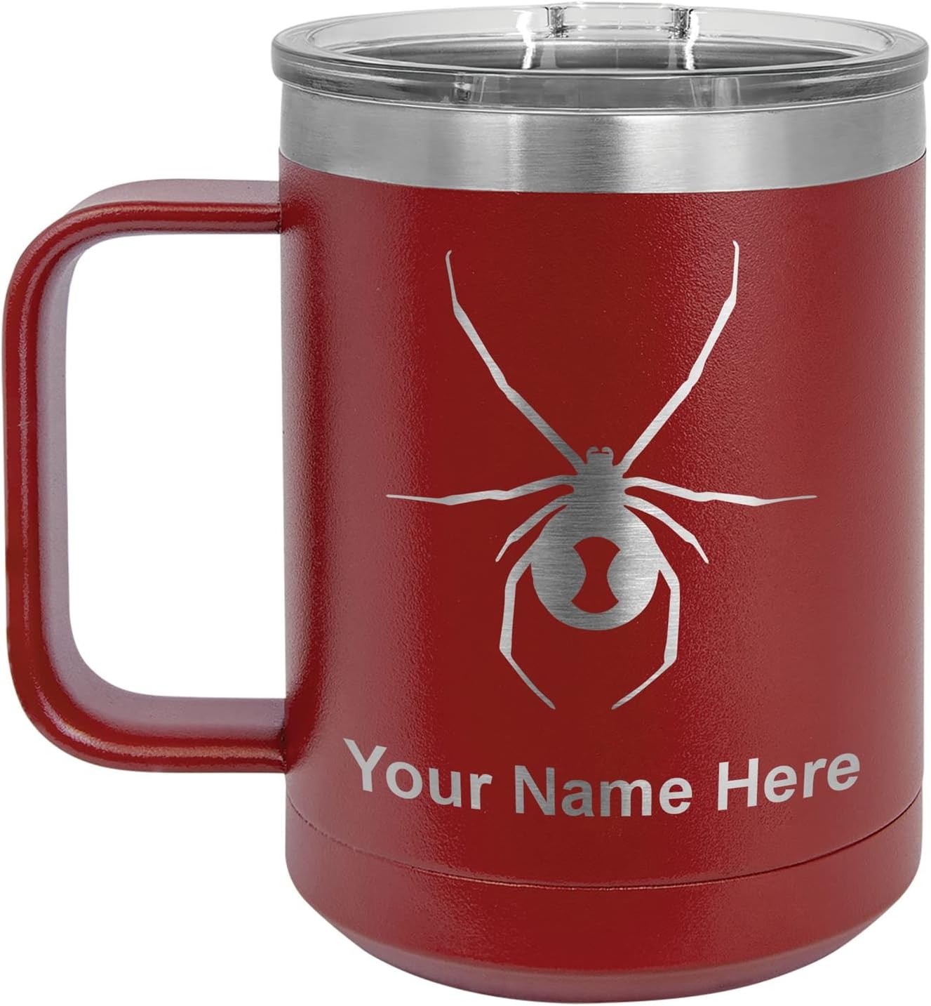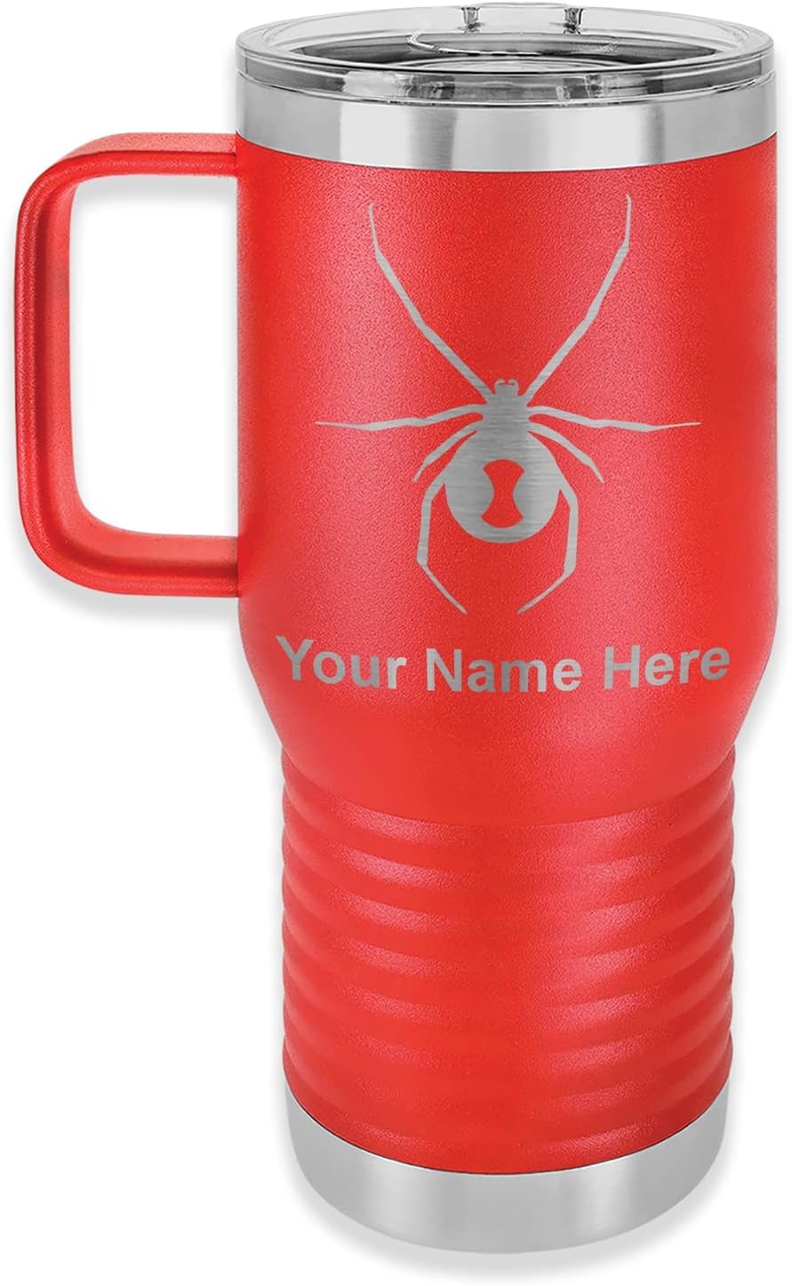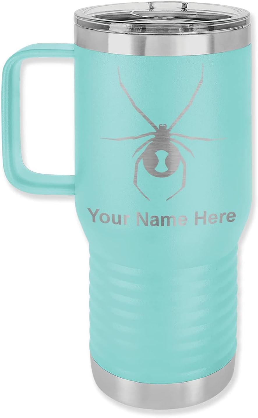 LaserGram 40 ounce Travel Mug with Handle that is laser engraved with the image that you see in the photo. Your own personalized text will be laser engraved below the image. Features double-walled stainless steel vacuum insulation with a clear lid. Click the "Customize Now" button to begin customizing your mug.