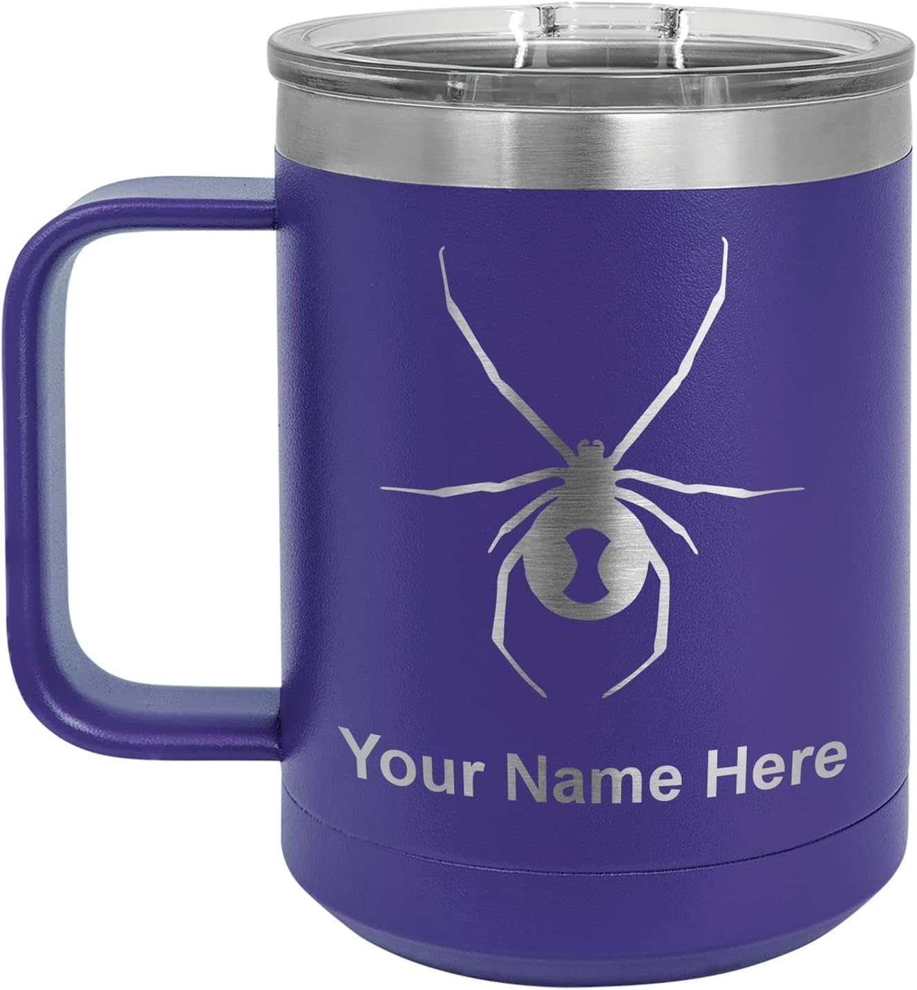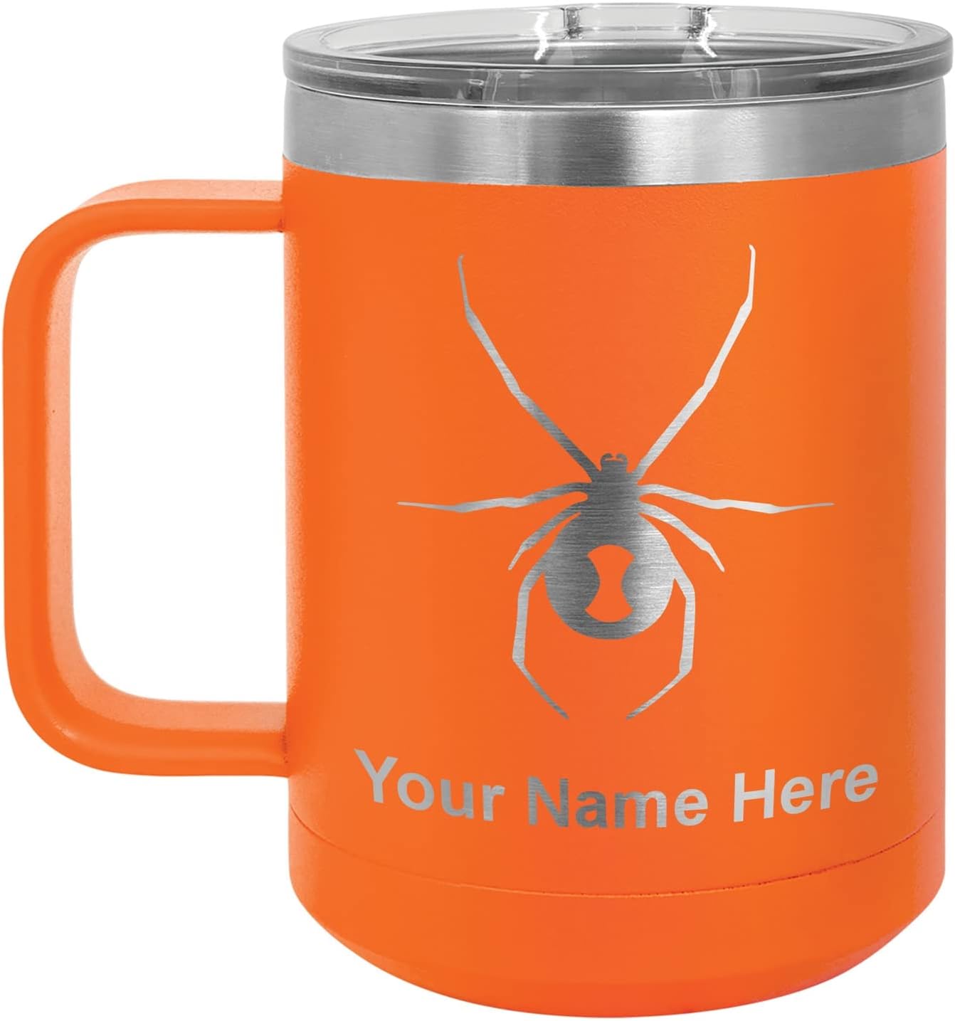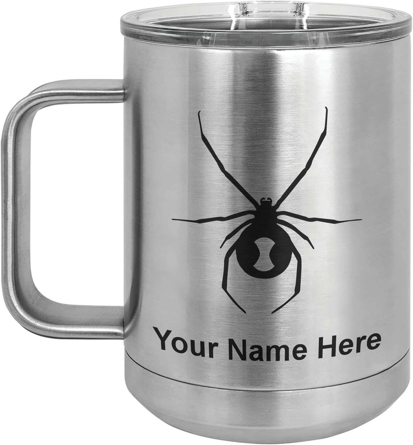 LaserGram 40 ounce Travel Mug with Handle that is laser engraved with the image that you see in the photo. Your own personalized text will be laser engraved below the image. Features double-walled stainless steel vacuum insulation with a clear lid. Click the "Customize Now" button to begin customizing your mug.