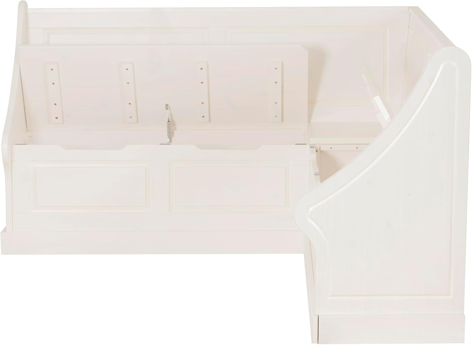 The perfect setting for breakfast with friends or just enjoying a post workout smoothie. This solid white breakfast nook adds a cottage feel to your kitchen or den. The look and quality of built-ins at a fraction of the cost. The seats open up to reveal hidden storage for extra placemats or seasonal decorations. Well thought out details like rounded edges are both good looking and practical for households with little ones. Finish the look of your dreams with a table and side chairs. Matching table available
