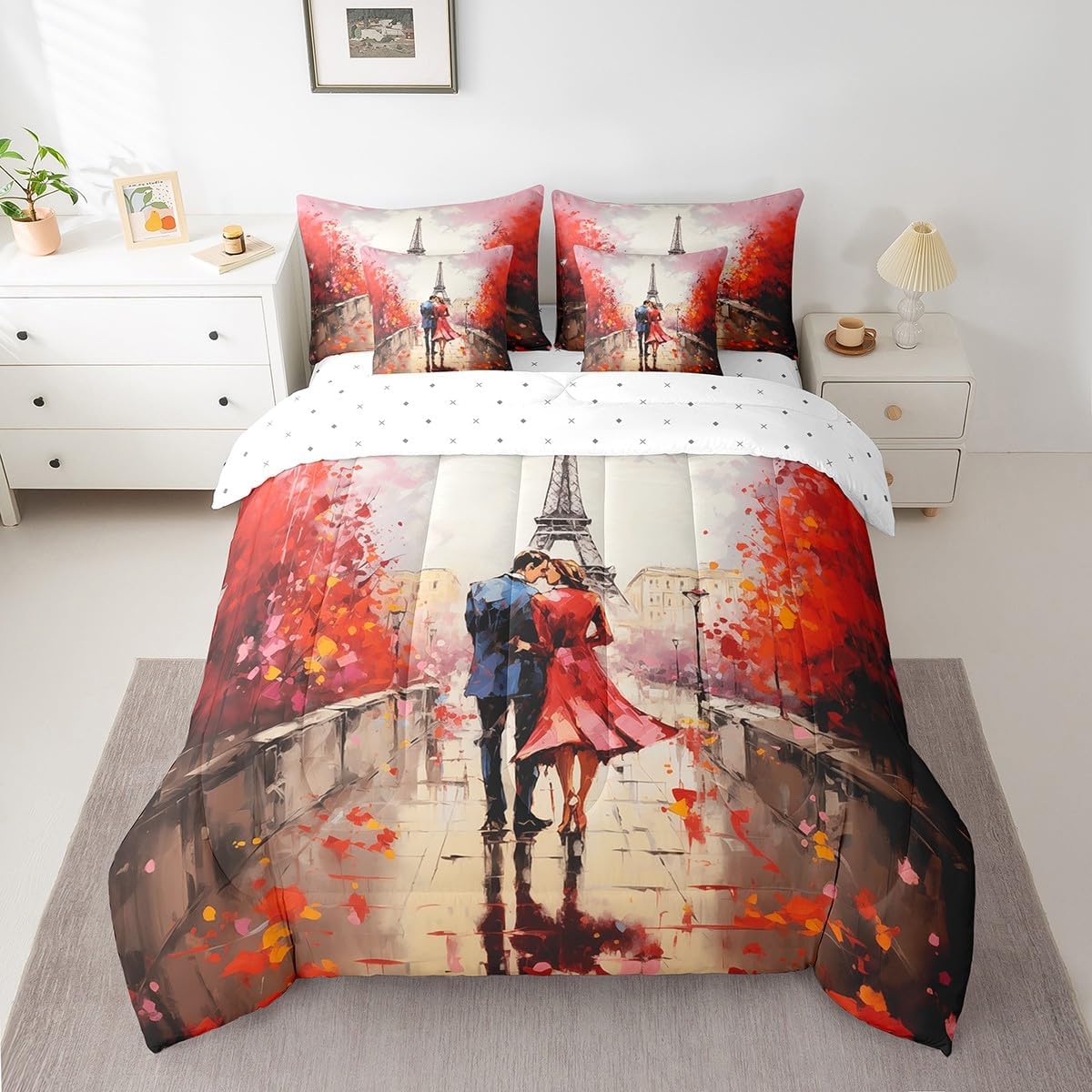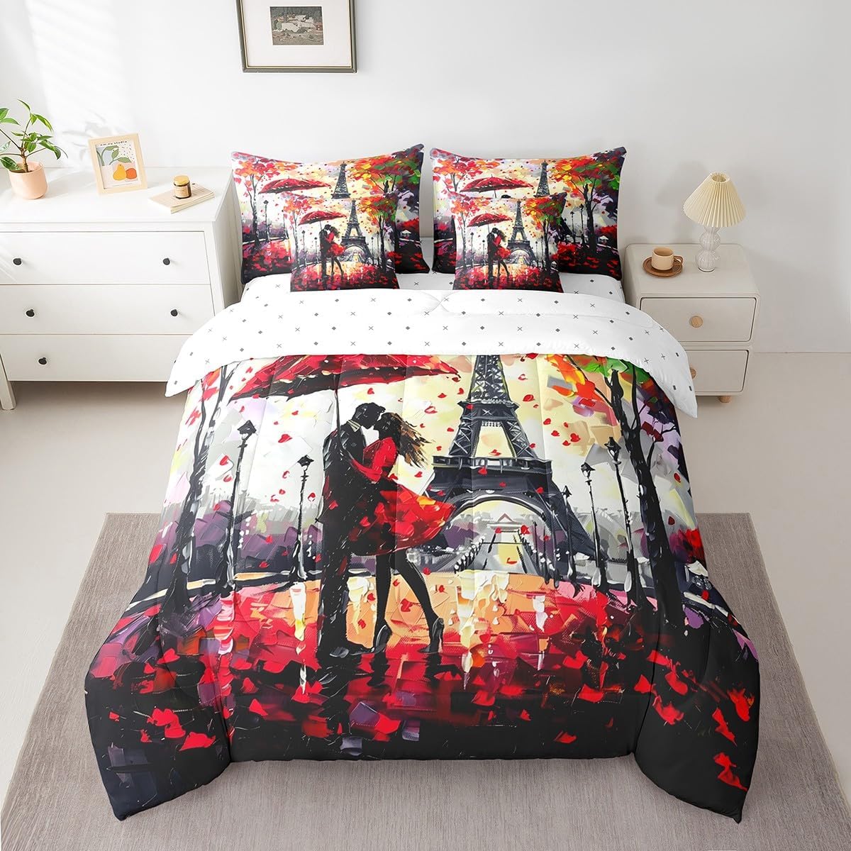 Welcome to our store. We have specialized in home textile for many years. We are contribute to provide the best customer service and products. We'll try our best to answer your questions and solve your problems. Size information: Twin size: 1 Down Comforter 68"W x 90"L, 1 Fitted Sheet 39"W x 75"L x 16"H, 1 Flat Sheet 67"W x 96"L, 2 Pillowcases 20" x 30", 2 Throw Pillow Covers 18" x 18" Full size: 1 Down Comforter 79"W x 90"L, 1 Fitted Sheet 55"W x 75"L x 16"H, 1 Flat Sheet 81"W x 96"L, 2 Pillowcases 20" x 30", 2 Throw Pillow Covers 18" x 18" Queen size: 1 Down Comforter 90"W x 90"L, 1 Fitted Sheet 60"W x 80"L x 16"H, 1 Flat Sheet 90"W x 102"L, 2 Pillowcases 20" x 30", 2 Throw Pillow Covers 18" x 18" King size: 1 Down Comforter 104"W x 90"L, 1 Fitted Sheet 78"W x 80"L x 16"H, 1 Flat Sheet 90"W x 106"L, 2 Pillowcases 20" x 36", 2 Throw Pillow Covers 18" x 18" Useful and practical: A luxurious product for homes,dorm rooms,hotels,guest rooms. Practical to use for being polyester, feels like cotton which is super soft and breathable. No chemicals used, no dye substance harming the health of you or your family. Unique design: Vivid Colors won't fade thanks to new 3D digital printing methods. These unique designs match well with various color palettes of your rugs, curtains, headboard, furniture, and all other decor accessories. Washing instructions: Machine wash separately in cold water,hang dry, do not bleach.