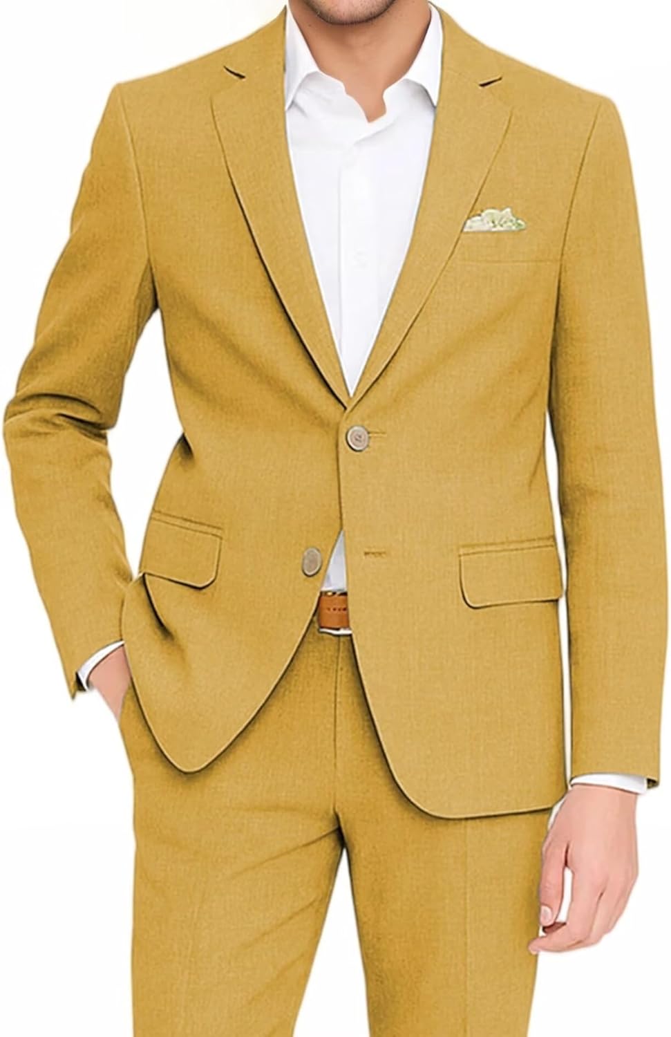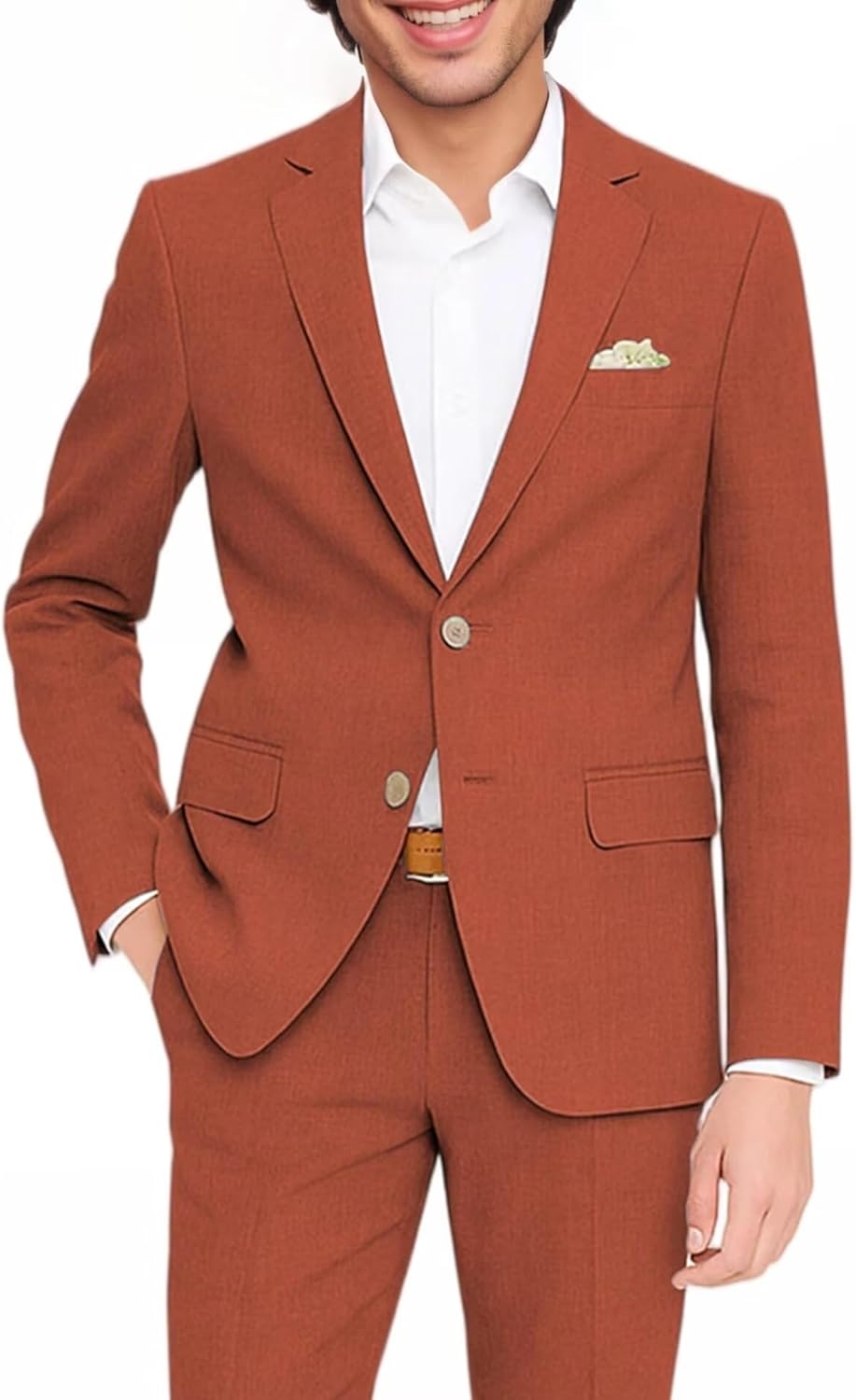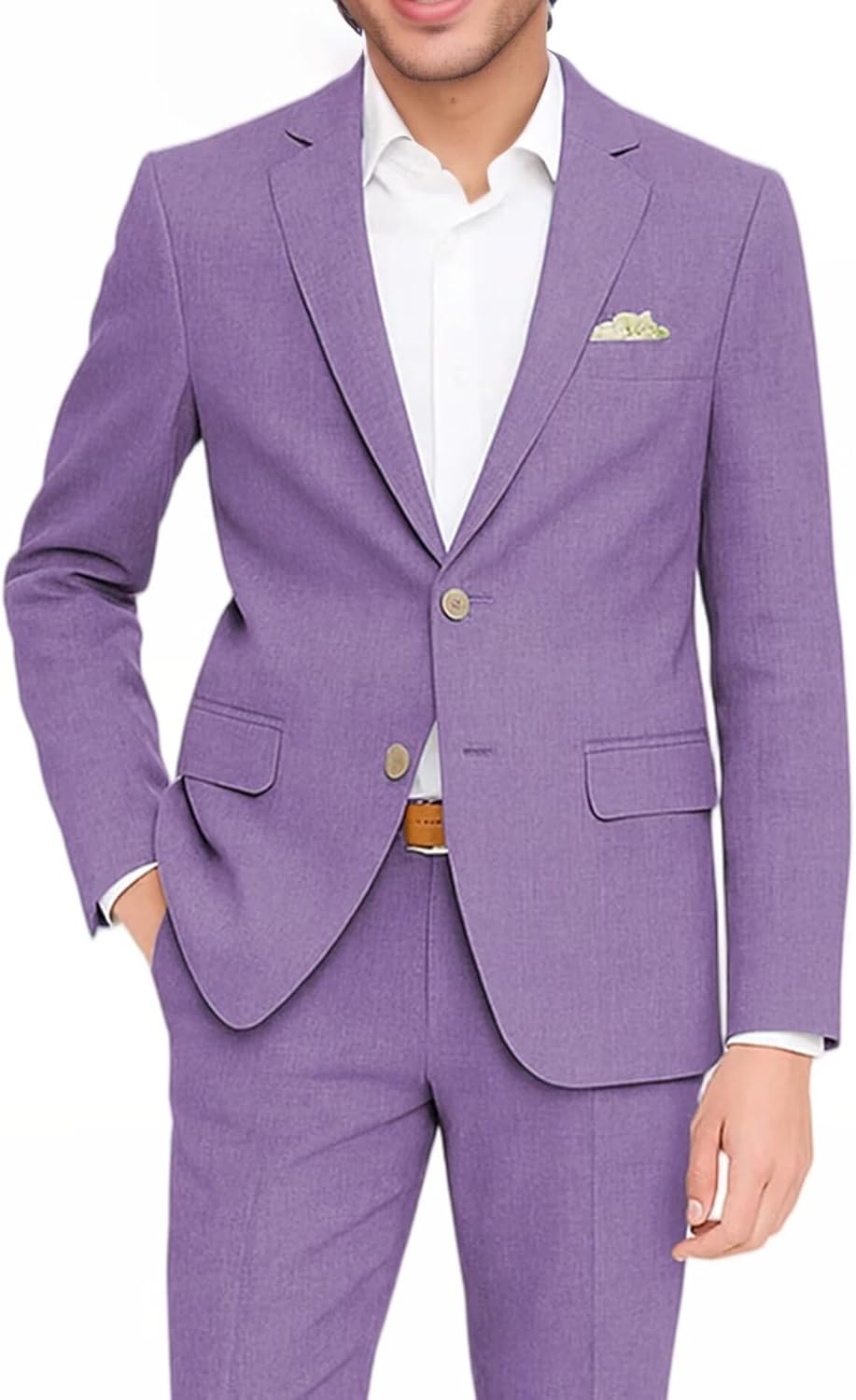 Mens 2 Piece Linen Suits Slim Fit Summer Wedding Suit for Mens Notch Lapel Blazer and Pants Set for Holiday The mens linen tuxedo suits slim fit is made of soft fabric with modern and classic design will bring you tons of compliments at any events. Slim fit cutting mens suit makes you look elegant and stylish. Product Information: 1. High Quality Fabric: The men's 2 piece linen suit set are composed of high quality materials .This material makes you feel comfortable when wearing it. 2. Color: Blue, Navy, Light grey, Pink, Red, Royal blue,Champagne, Yellow, Green, Orange, more colors is coming. 3. Size: Size X-Small-Size 5X-Large is suitable for any body type. 4. Wash Care: Hand wash, machine wash or dry clean. 5. Occasion: This mens' tuxedo suits are perfect for any occasions such as: Dinner, Banquet, Beach Wedding, Graduation, Summer Vocation, Dating, Ball, Meeting, Celebration, Stage Performance, Festival,Etc. We are dedicated in providing our customers with comfortable and high quality mens dress suits and also continuously optimizing our products to meet higher demands. If you have any questions, please do not hesitate to contact us, we will try our best to help you solve the problems.