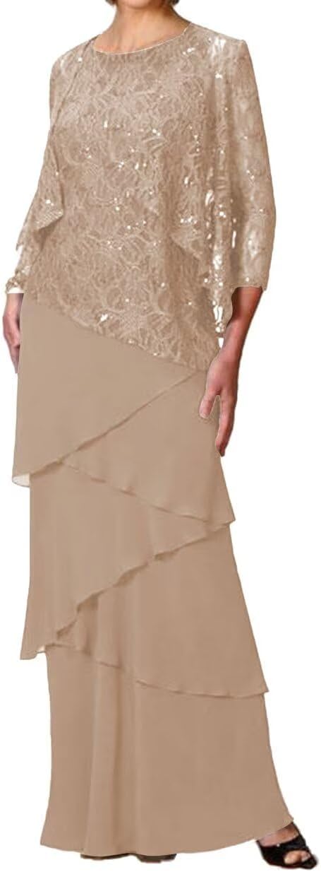 Mother of the Bride Dresses for Wedding Long Evening Formal Dresses Lace Wedding Guest Groom Dress with Lace Jacket Sequins for WomenItem DescriptionGender:Womens,Teens/Teenager GirlsFabric:High Quality Lace and ChiffonFeatures:A Line,Scoop Neck,3/4 Sleeve,Lace Jacket,Sequins/Paillettes,Long/Floor/Full Length,Zipper Back,Built-in BraCustomized ServicesCustomized Size and Color are also available,detailed measurements as follows:A.Bust _____ inchB.Waist _____ inchC.Hips _____ inchD.Hollow to floor(Without Shoes)______inchE.Height(Without Shoes)______inchF.Shoulder to Shoulder______inchG.Height of Shoes(Shoe Heel)______inchH.The date you need the dress_____