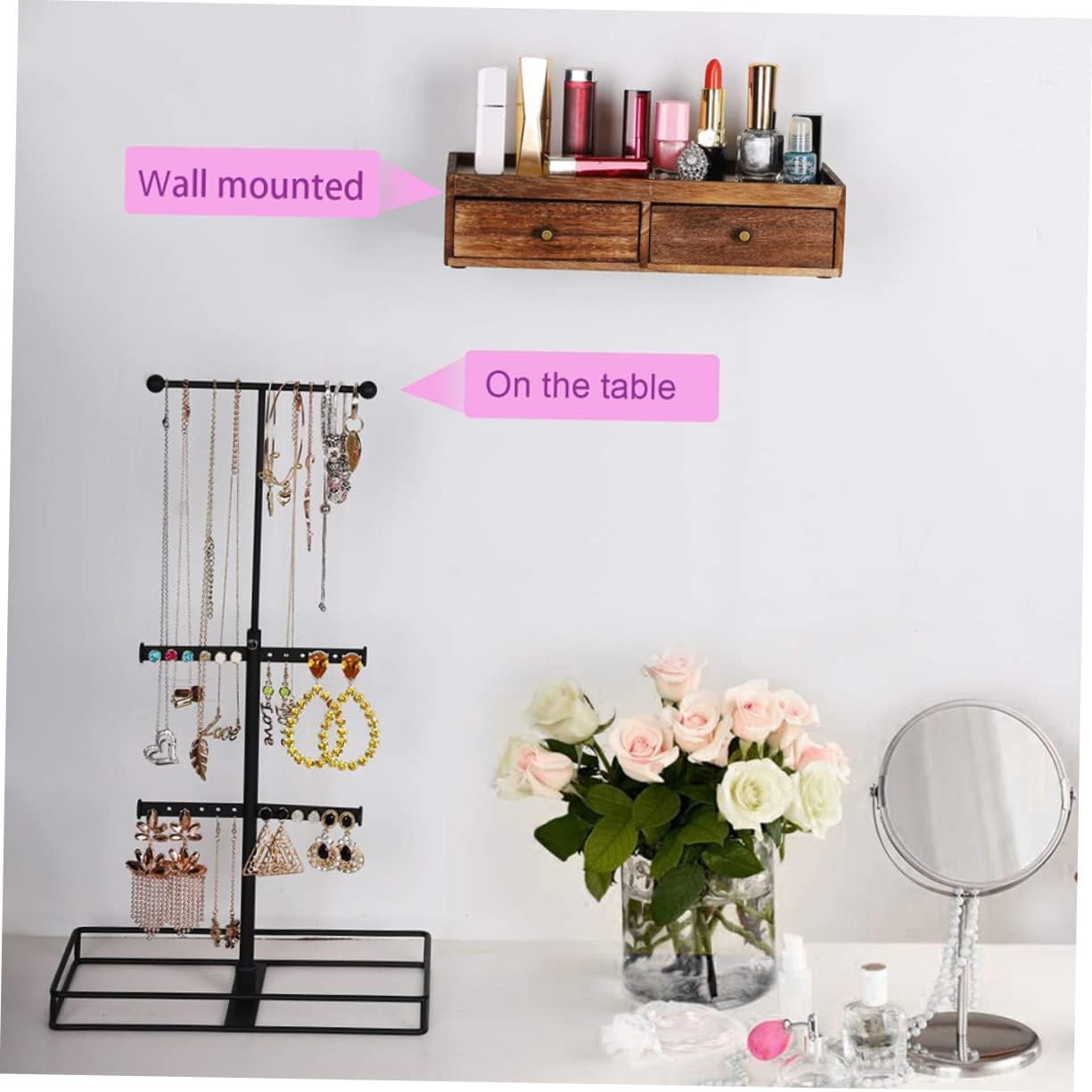 Package List 1 x Jewelry Rack Features -Size: 25.00X12.00X54.00cm 9.82X4.72X21.22inch case -Material: wood, iron display -Color: Assorted Color mothers - Wonderful choice for women, friends, family, co-worker and more bar. - Help keep your jewelry neat and orderly, quickly and efficiently find what you need small. - for holding small daily wearing jewelry and keep them well organized Bracelet Rack. - Main used for small ornaments such as rings, earrings, pendants, necklace, etc hanger. - Decorative jewelry rack is suitable for placing on anywhere, bathroom, living room, etc earring.Goods InformationEarring Rack Wonderful for jewelry display decor.jewelry earring tower texture, great hand feeling, fashionable style.earring rack This wood base jewelry rack has been designed for and natural material, odorless and .Necklace Hanging Stand You can store your favorite jewelry, such as bracelet, rings etc