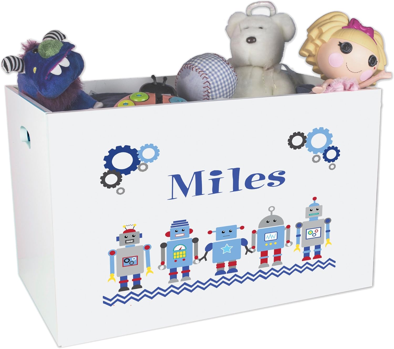 Store it quick and easy! MyBambino's Boy's Personalized Dinosaur Toy Box features an open top to ease clean up and avoid smashed fingers. Comes decorated with light pink, gold, and yellow colors with crown, princess, and birth design elements.MEASURES: 23" x 14.5"W x 13.25" made with sustainable wood composite.