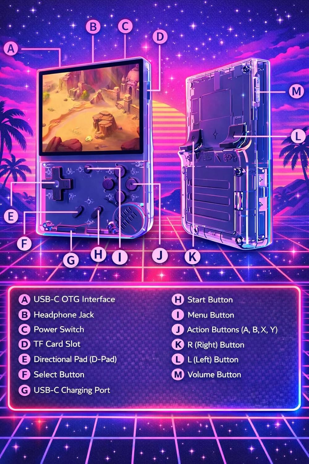 Rediscover the golden age of gaming with the Nerdy Boy Retro Handheld Console by Nerdy Minds — a compact, modern recreation of the classic handheld experience. Designed for players who grew up on pixel graphics and timeless gameplay, this pocket-sized console brings your favorite eras back to life with crisp visuals, responsive controls, and a nostalgic look that feels instantly familiar. Featuring a vibrant 3.5-inch IPS full-fit HD screen, the Nerdy Boy delivers sharp color, wide viewing angles, and faithful retro presentation. Powered by the efficient VT569 chipset and a 32-bit ARM A7 system, gameplay feels smooth with fast response times across all supported systems. With 12 classic platforms built in — including FC, GB, GBA, MD, CPS, GBC, NEOGEO, MAME, SFC, and PS — the Nerdy Boy puts decades of gaming history into the palm of your hand. A generous 64GB TF card gives you space for thousands of titles, while support for real-time archiving means you can save progress instantly. The built-in 2000mAh rechargeable battery provides up to 3.5 hours of portable play, and the 3.5mm headphone jack plus AV-out capability let you game privately or enjoy the classics on a bigger screen. Available in three nostalgic finishes — Onyx, Atomic Purple, and Retro Sand — the Nerdy Boy blends retro charm with modern usability. Lightweight, durable, and easy to take anywhere, it’s the perfect handheld for casual fun, quick pick-up gaming sessions, and those who want to revisit the era that started it all. Whether you’re reliving childhood favorites or discovering classic games for the first time, the Nerdy Boy is your personal portal to the past — redesigned for today.