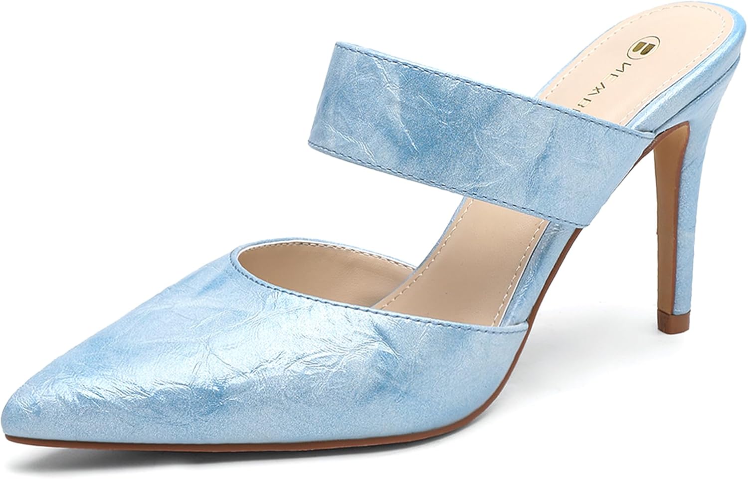 The NEWBELLA Women's Pointed Toe Stiletto Mules exude timeless elegance with their sleek silhouette featuring a sharp pointed toe and 3-inch slender kitten heel that delivers just the right amount of lift for all-day comfort. These sophisticated slip-ons are crafted from luxurious faux leather with a smooth, glossy finish that pairs perfectly with evening gowns, cocktail dresses, or tailored pantsuits. The closed toe design offers a polished look while the open back mule style ensures easy on/off convenience, making them ideal for quick outfit changes at weddings, galas, or date nights. Designed with a padded insole and flexible rubber outsole, these heels provide surprising comfort for extended wear without compromising on style. The weight-balanced stiletto construction ensures steady strides on dance floors or city pavements, while the slim ankle strap (non-adjustable) adds a flirtatious touch to the classic pump design. Whether you're the bride at your bachelorette party, a guest at a summer wedding, or simply elevating your office-to-dinner ensemble, these versatile mules deliver show-stopping glamour with every step.