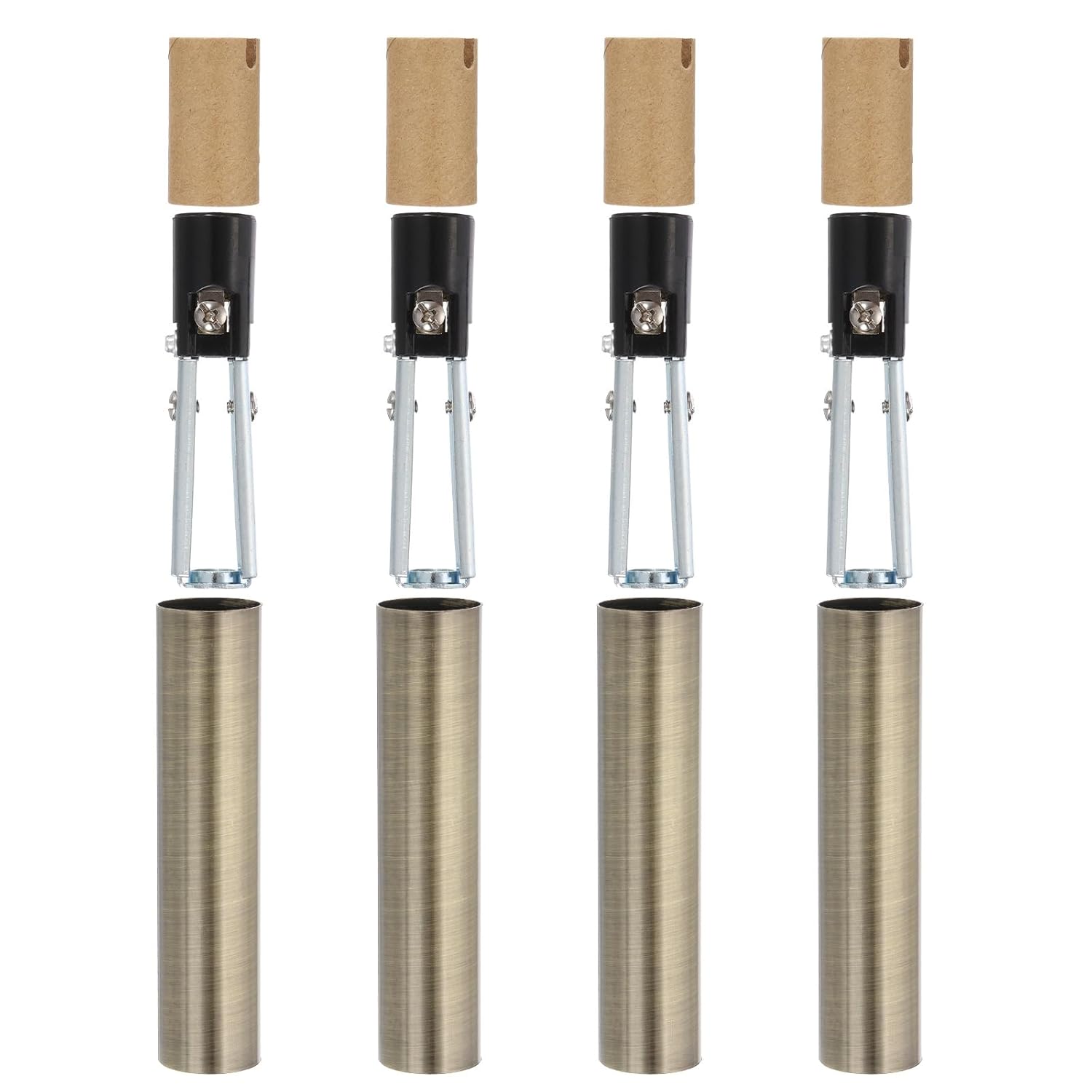 The chandelier lighting fixture socket kit includes candle cover sleeves, the E12 candelabra base length-adjustable bulb holder, and the cardboard insulator cover. Decorate your lamps with this sleeve, you can refresh old lamps, and enhance the appearance of your chandeliers and lamps. Widely used to decorate various chandeliers, candle lamps, crystal lamps, wall lamps, and other lighting fixtures.Specification:Socket Material: Metal;Candle Cover Sleeves Color: Black;Total Size: 21 x 22 x 100mm / 0.83 x 0.87 x 3.94 Inch (ID*OD*H);Packing list: 4 Sets x Chandelier lighting fixture socket kitsAdvantage:Compared with ordinary plastic tubes, this socket cover is made of durable metal material, has high-temperature resistance, will not discolor, brittle, crack, or turn yellow, is very suitable for replacing old lamp sleeves, and can be used for a long time;Exquisite workmanship, the appearance is pretty, adding a unique atmosphere to the home environment;Adjustable Height, You can adjust the height of the chandelier socket from 3-1/4 inch (85mm) to 4-3/4 inch (120mm).Instruction:The kit includes almost all installation accessories. Great replacement for fixing a broken E12 socket fixture. The casing is suitable for European crystal chandeliers, making your chandeliers more retro-style.NOTE: Bulbs are not included; Please check their compatibility with your bulb.