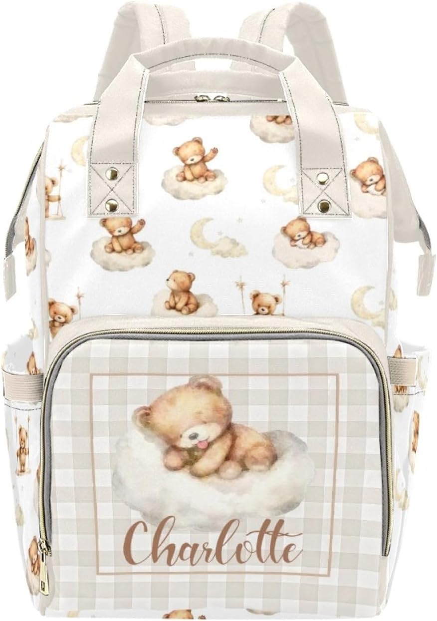 Personalized Diaper Bag Backpack – Custom Name Baby Nappy Bag for Moms & DadsPremium Waterproof Material – This custom diaper backpack is made from high-quality waterproof nylon, durable and easy to clean. The stylish unisex design makes it a great choice for both moms and dads, perfect for everyday use or travel.Spacious & Organized Storage – Measuring 10.83"(L) x 6.69"(W) x 15"(H) with a 3.1" hand drop, this personalized diaper bag backpack offers a large main compartment, multiple inner pockets, and 2 side storage areas. Easily carry diapers, wipes, clothes, bottles, toys, snacks, and books without feeling cluttered.Multi-Pocket Functional Design – The front compartment features 3 insulated bottle pockets to keep milk or drinks at the perfect temperature, plus a mesh pocket for small essentials. Extra side pockets are ideal for wipes or water bottles, while inner compartments with 4 slip pockets and 1 zippered pocket provide maximum organization for baby and parent essentials.Comfortable & Versatile to Carry – Designed with padded back support and adjustable shoulder straps, this custom baby backpack provides comfort even during long outings. It can be used as a diaper bag backpack, shoulder bag, or stroller bag, making it convenient for shopping, daycare, travel, or family adventures.Perfect Personalized Gift – Customize this diaper bag with a baby’s name to create a thoughtful and unique keepsake. Ideal as a personalized baby shower gift, newborn gift, this custom name nappy bag is both stylish and practical—perfect for new parents.Easy Customization Process – 1. Select your style. 2. Click “Customize Now.” 3. Add the name you’d like to feature.