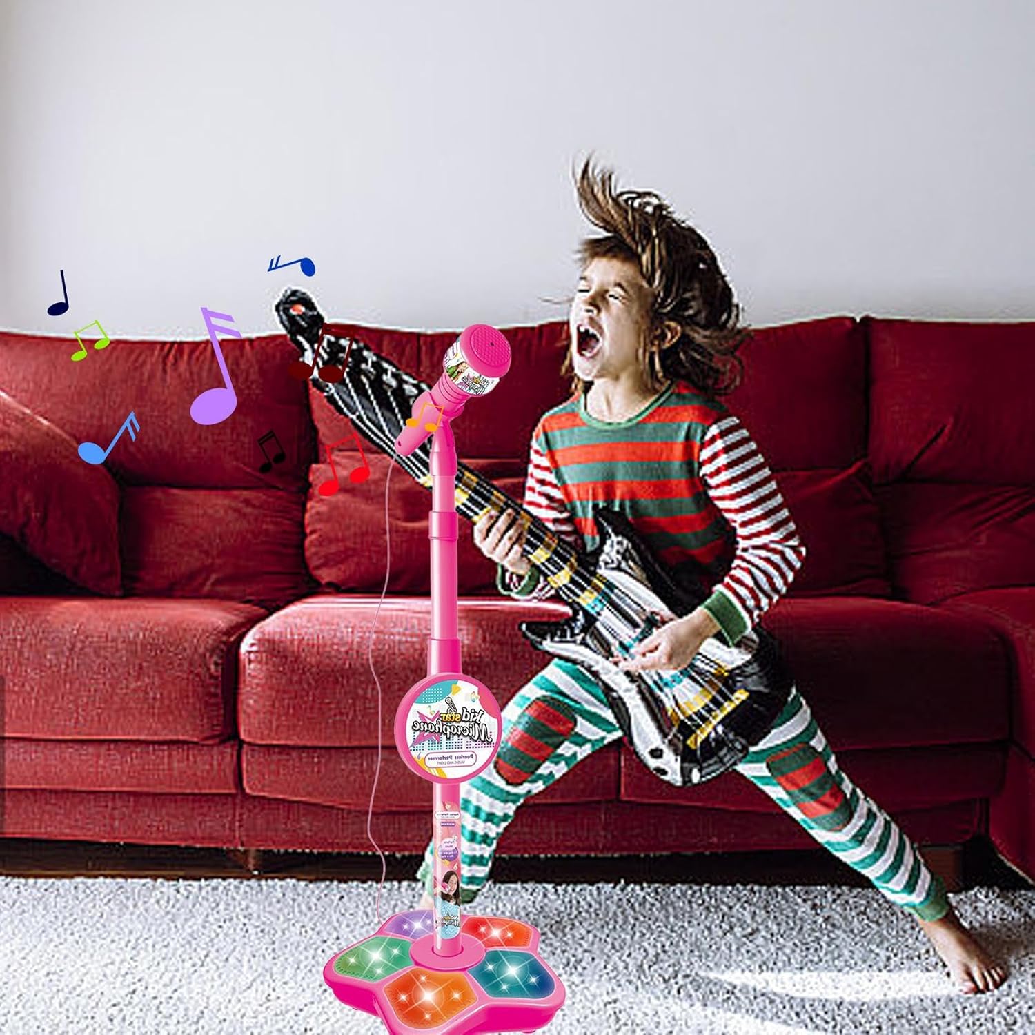 Bring out the singer in who is in your child with our karaoke! Made of durable ABS material and adjustable height, it is perfect for kids, both boys and girls. They can enjoy singing their favorite songs in various styles and tracks, which can also help stimulate their creativity and imagination. Let your child shine like a star at parties and home festivals with this karaoke. Specification: Name: Kids Microphone with Stand Material: ABS + electronic components Product size: (approx.) 21*100cm/8.27*39.37inch Style: as shown in the picture. Packing list: 1 x children's karaoke machine. Note: Due to different lighting and screen settings, the item's colour may be slightly different from the picture. Due to different manual measurements, please allow 1-2 cm size difference.