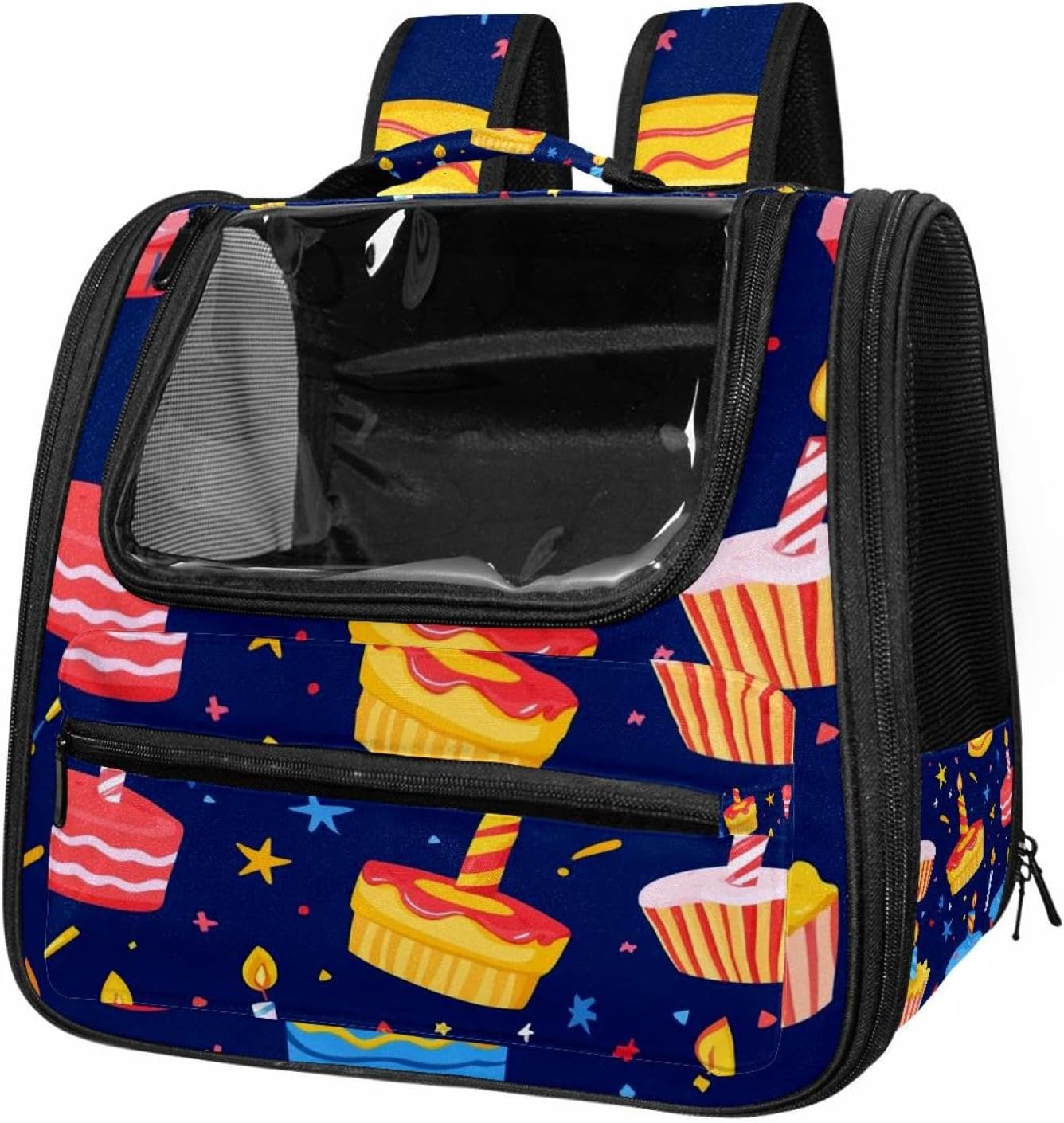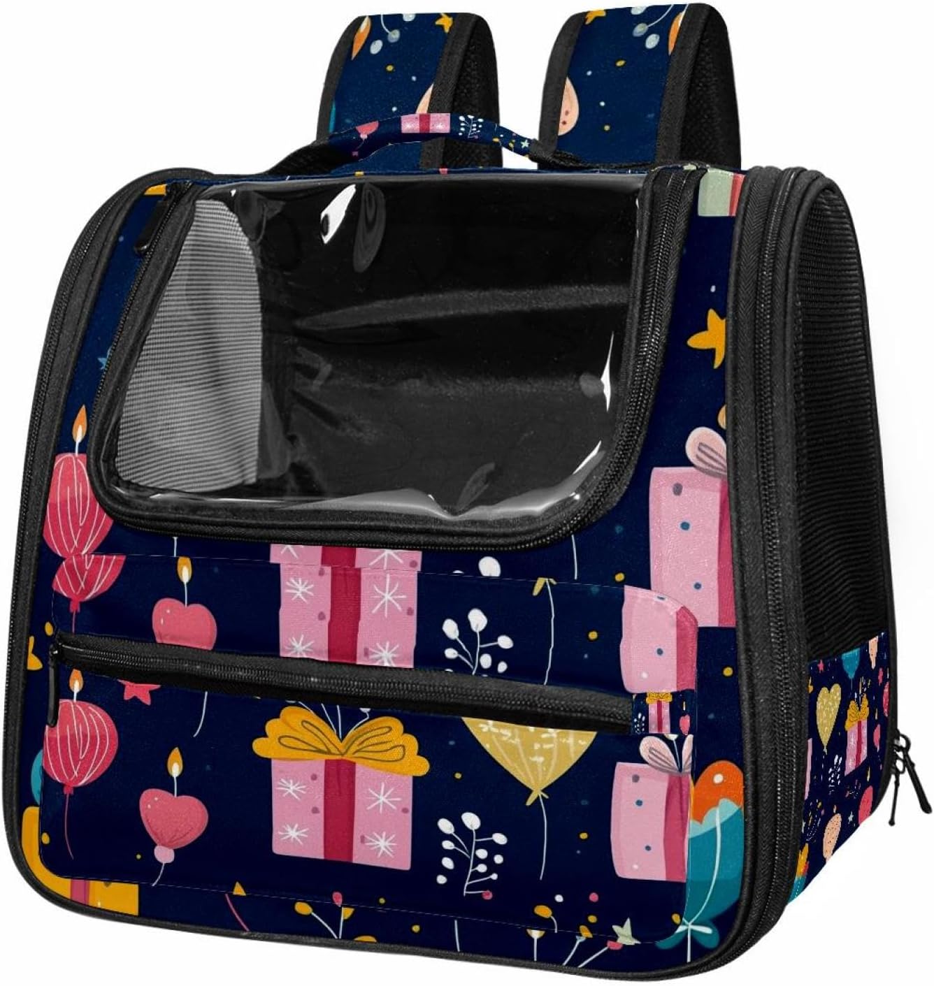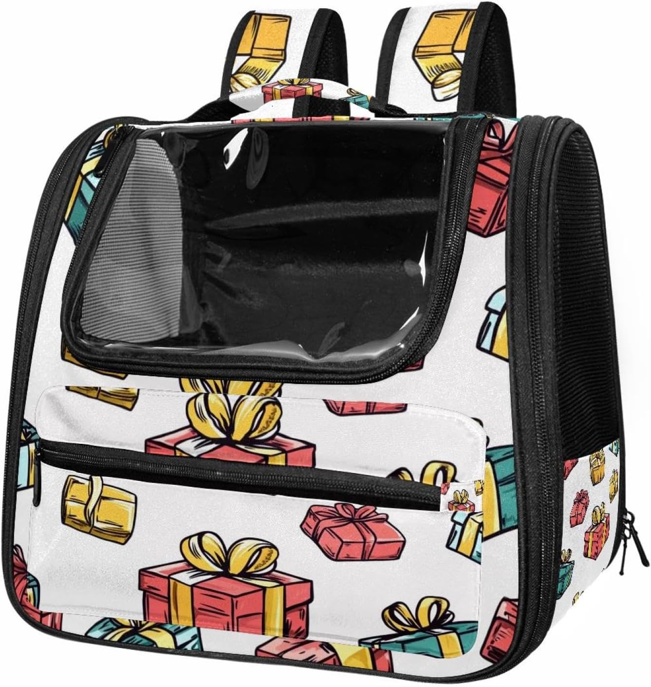 Well made: Cat Backpack Carrier is made from 900D oxford fabric, pp webbing, velvet, nylon, which is very sturdy, environmentally friendly and breathable. Not easily scratched by pet’s claws, pet backpack carrier is SAFETY & ANTI-SCRATCH. The back padding will give you a comfortable and breathable experience. Ventilated Backpack: With a breathable window in the front, this pet backpack allows cats to enjoy the sun without feeling stuffy. There are two side pockets and one big front pocket, and you can take foods or toy for your kitten pet. It is big enough for cat to turn around, and there are side pockets and hook holes, you will enjoy the greatest convenience when taking your cat out. Perfect size: Cat carrier is 15.75x9.84x13.78in/40x25x35cm. Fits most small/medium sized cat, dog, and pet. Quality fleece bed provide a comfortable place for your pet. Lightweight and easy to carry to all places. Built-in harnesses keep your naughty friends from escaping. Removable cosy mat for easier cleaning and let your pet enjoy it inside. Easy to carry: The adjustable shoulder strap of pet carrier bag help you hands-free carrying and makes it the most safe and convenient pet carrier bag for your travel. Seat belt design provide pets with safety protection throughout the trip. Pad protection keep your pets comfortable during travel. Unique Design: Innovative inside graphic design gives you a stereoscopic 3D visual experience. You also send us the photos you interest to make your unique dog or cat carrier. Pet bag is also a amazing gift for pet lover.