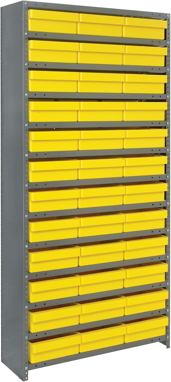 Quantum Storage Systems CL1239-601YL Solid Closed 7 Shelves 36 Super Tuff Euro Yellow Bins 39" H x 36" W x 12" D