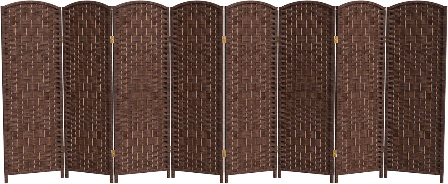 Elevate your space with our short, lightweight woven plant fiber room divider, a perfect blend of beauty and function. Standing at four feet tall, it is perfectly designed for compact offices or cozy homes. The sturdy panels are woven in a distinctive diamond pattern creating an airy, sophisticated aesthetic suitable for traditional design, and the pliable plant fiber captures dye fully and features a rich, warm color perfect for bohemian and modern spaces. This versatile piece allows light and air to flow while adding some privacy, making it ideal for both decorative backgrounds and functional partitions in your living room, study, or place of business. Experience the harmonious fusion of functional beauty with this exquisite addition. Whether you're carving out a dedicated workspace or creating a private reading nook, our woven plant fiber desktop room divider exemplifies style and versatility, transforming your space into one of elegance and purpose.