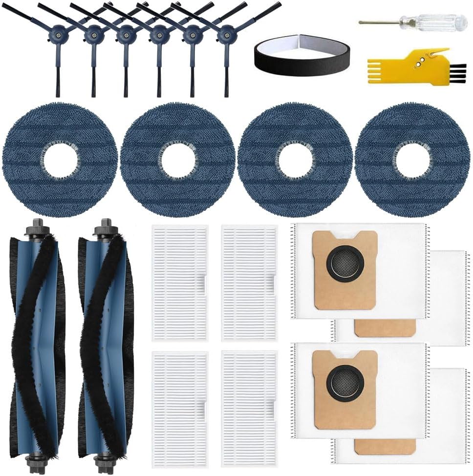 Compatible with:for eufy X10 Pro Omni Robot Vacuum Cleaner. Package includes:2 Pcs Main Brushes4 Pcs Hepa Filters6 Pcs Side Brushes6 Pcs Mop Cloths6 Pcs Dust Bags