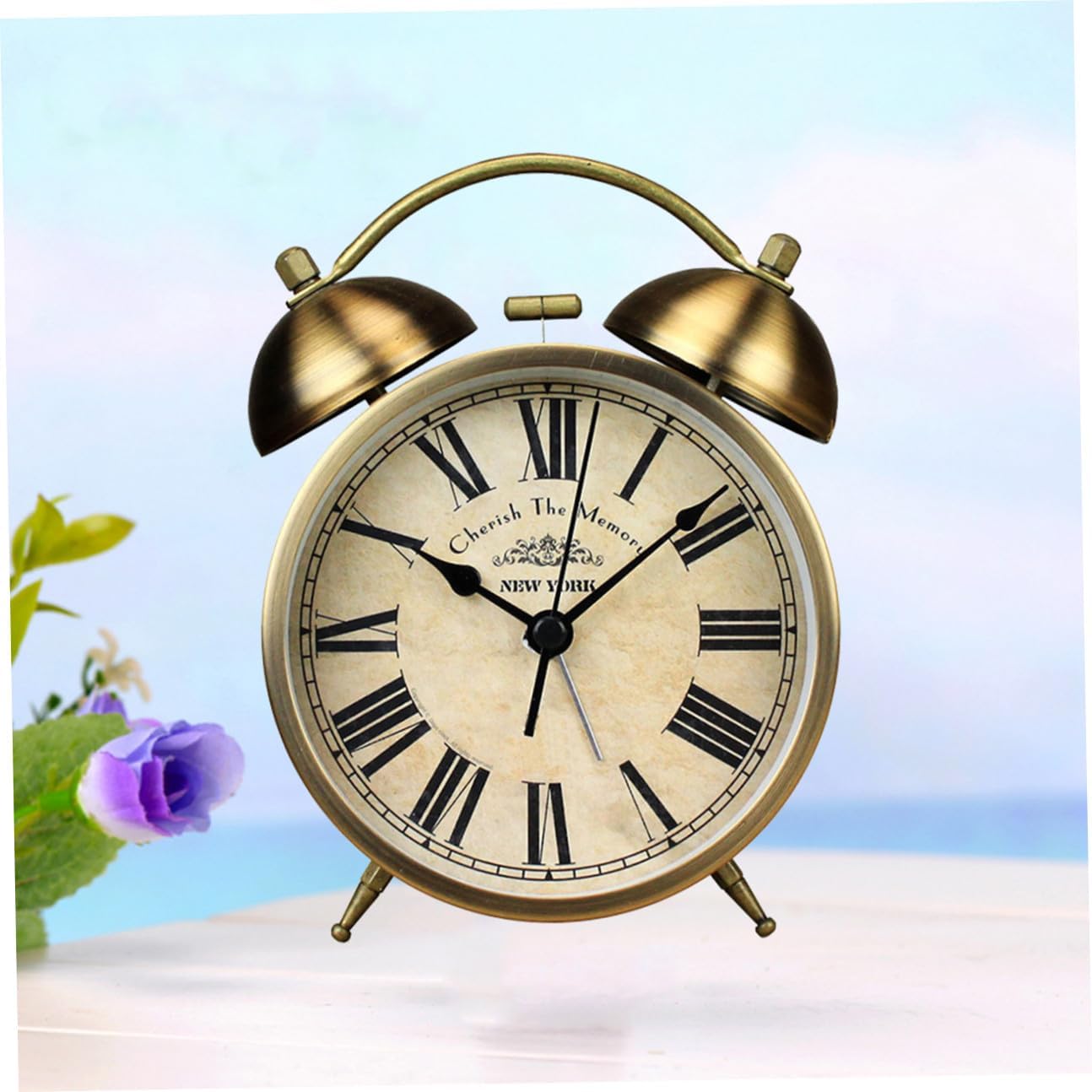 Package List 1 x clock Characteristics - Material: Metal and glass. - Size: About 10.9 x 5.2 x 15cm. -Product Info:Retro alarm clock - Loud alarm clock for people who are heavy sleepers, mild loss hearing even deaf alarm clock for bedroom. - No , good wake up clock for people who has trouble waking up desk clock decor. - It suitable for home, bedroom, office etc retro mechanical clock. - Silent with non-ticking hands, nice for a good working and learning environment, also for a soothing sleep old-fashioned clock. - Goods Descriptionmetal desk clock Neat dial with stereoscopic numbers instead of printed cardboard found in common market.ringing alarm clock This product is a bell small clock, which made from material for and use.alarm clocks for bedside Plus with the white hour and minute hands with perfect accuracy offer an awesome clearly legible look.alarm clock Retro appearance design makes this clock a good decoration for your home and bedroom etc