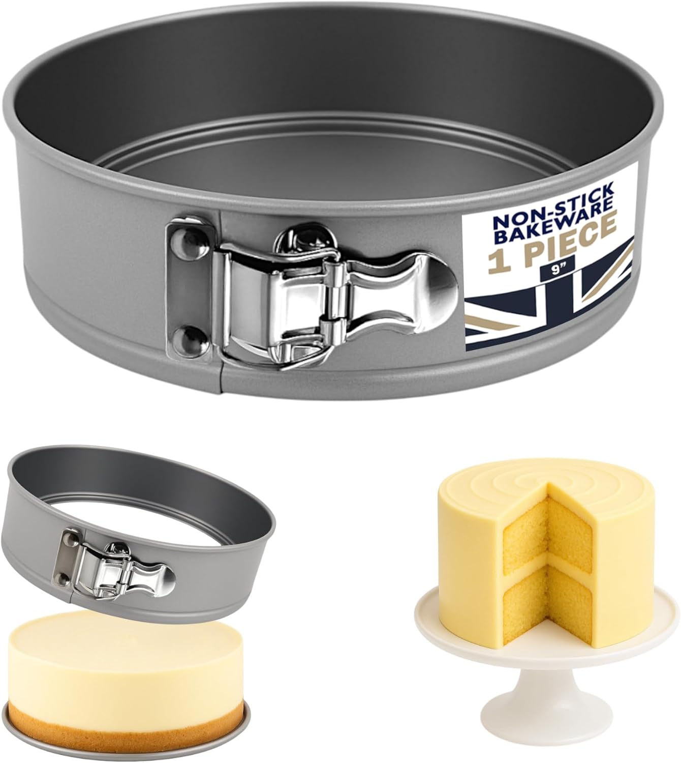The Great British Bakeware Range - This best-selling range is double coated non-stick which ensures uniform thickness, resulting in more even wear designed to bring the best out of your cake. EASY RELEASE: this cake pan has a secure springform clasp, so it’s easy to remove your cakes without damage NON-STICK: The Teflon loaf tin set is fully non-stick, meaning you don’t have to worry about scraping out once it is cooked, it will easily leave the pan and onto your plate. USEFUL INFO: Springform cake tins are 100% BPA, PTFE and PFOA free, and heat resistant to 220°C (428°F) Create great food with this, Perfect for baking fruit/sponge/cheesecake cakes, pies, buns, loafs, pastries, quiche and more