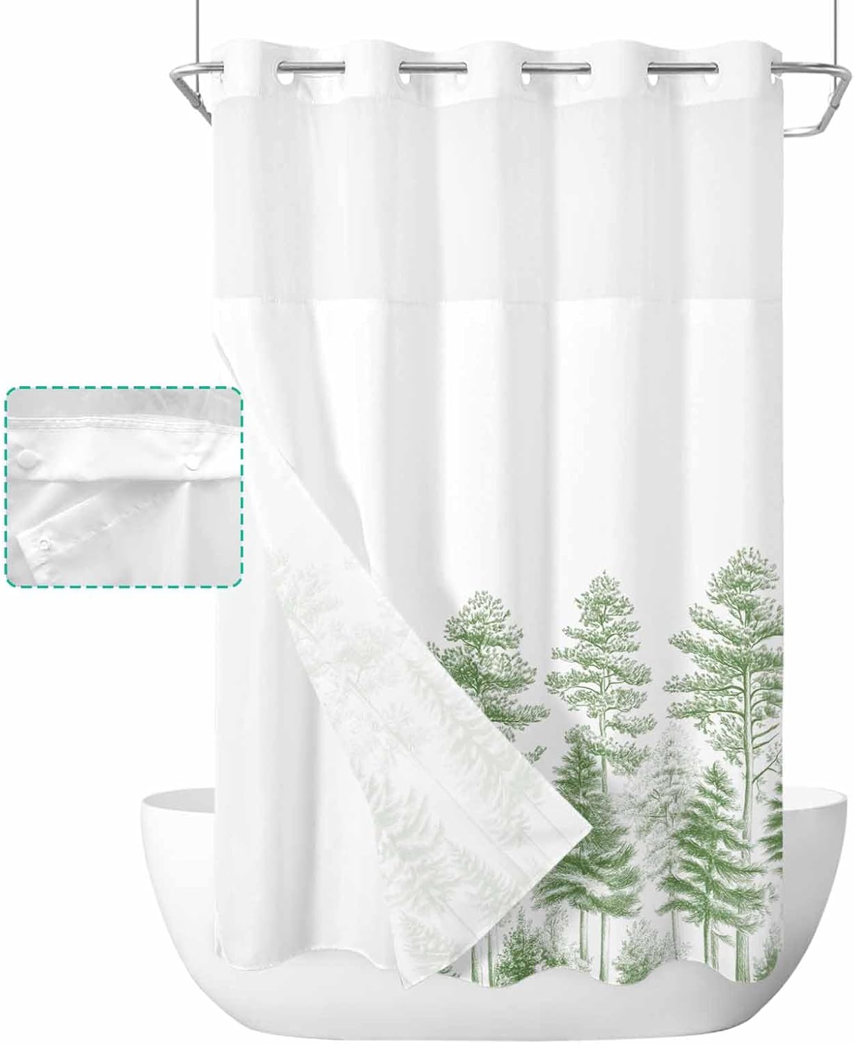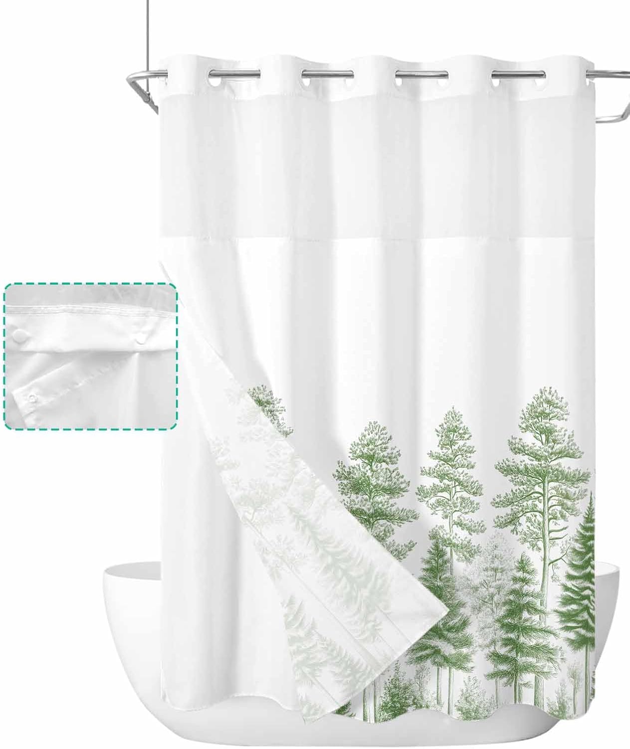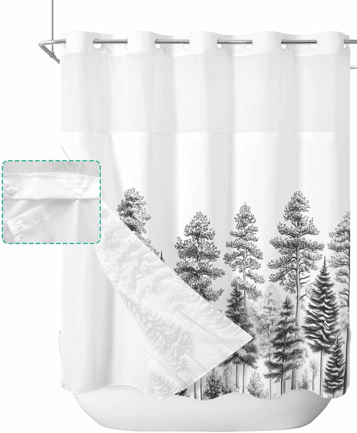 Pretty No Hook Shower Curtain Well Made & Easy to Hang Printed Shower Curtain With Snap in Liner Our shower curtain adopts high-definition printed design with unique patterns and bright colors, which matches your bathroom accessories and adds some elegance to your bathroom. Premium Fabric Waterproof Fabric. Made of premium polyester blend fabric, our no hook shower curtain with snap in liner is waterproof and dries quickly, keeping the floor outside the shower dry and clean. See Through Top Window Unique top sheer design. Our shower curtain no hooks with liner with top transparent protects privacy while remaining transparent, allowing you to see outside the shower area while showering, keeping the bathroom ventilated and breathable. Double Shower Curtain Hotel shower curtains with snap on liners with replaceable liners can protect your privacy while showering and are easy to remove and replace for easy cleaning and care. Great Choice Our decorative and practical shower curtain are ideal bathroom decoration choices and are also good choices on birthday, Halloween, Thanksgiving, Christmas for your friends and family. Machine Washable Shower Curtains Machine wash in cold water, gentle cycle, tumble dry low. Suitable for busy families. Specification Material: Polyester Blend Fabric Size: 36x72 Inch/ 36x78 Inch/ 48X72 Inch/ 54x78 Inch/ 60x72 Inch/ 66x72 Inch/ 72x72 Inch/ 72x78 Inch/ 72x84 Inch/ 72x96 Inch Package: 1x Shower Curtain and 1x Inner Liner