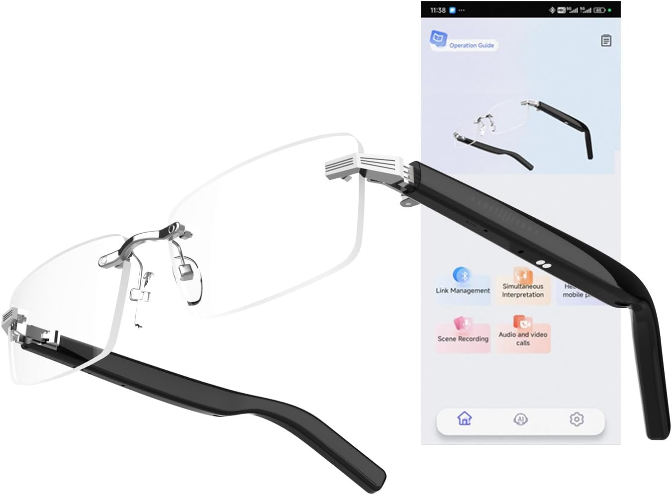 CatXQ Smart Glasses for Men & Women - Frameless Bluetooth Glasses with Blue Light Filtering, Voice Assistant, Auto On/Off & Remote Photo Audio & Mic for Working Gaming - Black