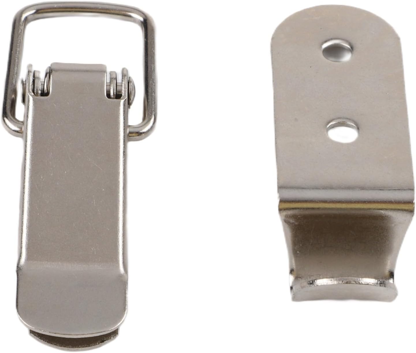 Product description Features:【 Material】Made of Stainless steel material, durability and practicality.【Good Security】The robust spring set inside the for toggle lock allows for easy opening and closing, providing good security.【Tension Locks】The tension locks offer quick opening and closing, making your items more secure.【 for versatile】This silver box lock can be used for leather, metal, wood boxes, suitcases, chests, tool boxes, and drawers, making it for home, office, and business use.【Widely Used】Suitable for various purposes including home, office, and business applications, making it a for versatile hardware option. Specifications: *Product Name: 90 Degrees buckle*Material: Stainless Steel*Size: 108*20MM*Color: Silver Package Content:/10 x 90 degree buckle hook lock Manufacturer Contact Information no