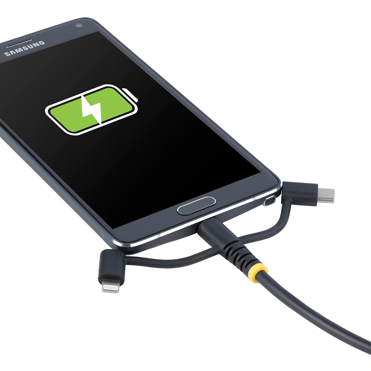 StarTech.com 3ft (1m) Rugged USB Multi Charging Cable, USB to Lightning/Micro-USB/Type-C, Apple MFi, 3-in-1 USB Charger Cord