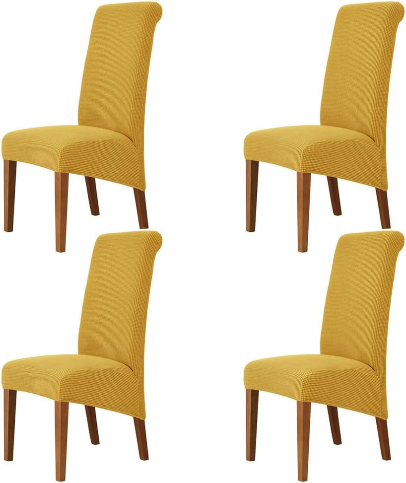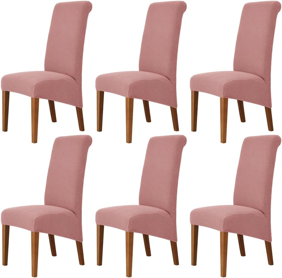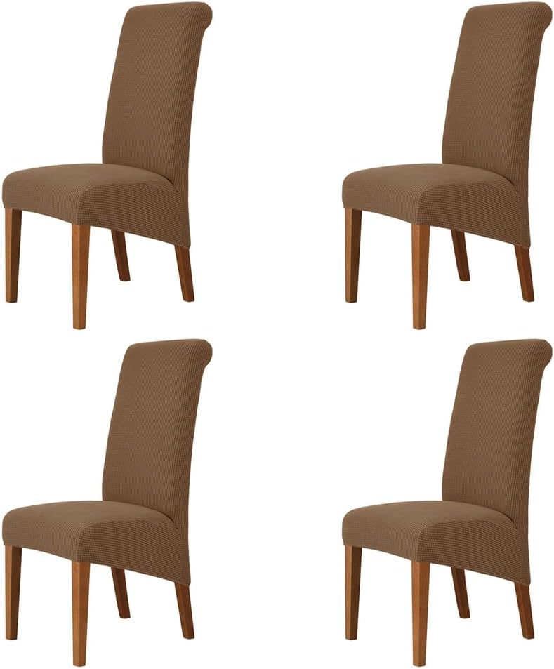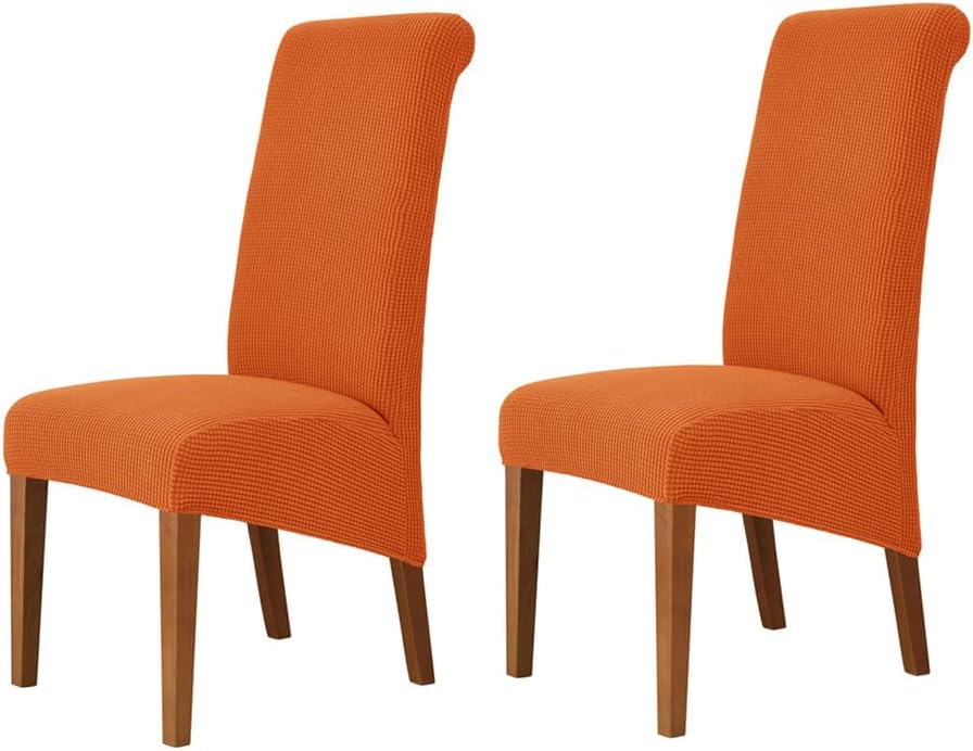 Stretch Parsons Dining Chair CoversOur chair covers use prime quality fabric, it is not only highly elastic to fit the majority chairs, but also thick enough to protect chairs again dust, stains and other damages. Moreover, we have a fabulous selection of colors for you. You can choose the colors according to the decoration style of your home. You may not wash your chair, but you can wash its cover! It’s easy to keep it clean by machine washing in cold.Dining chair cover will fit most of the Parsons chair,high back chair.CHAIR COVER SIZEChair back height: 55-68cmChair back width: 35-43cmChair seat Length: 38-48cmChair seat width: 42-48cmChair front seat thickness: 12-18cmChair back seat thickness: 18-28cmPlease check the size of your chair before orderingName: High Back Parsons Chair CoversStyle:ModernPattern:SolidCrafts: reactive printing and dyeingSpecial Feature: Removable, Stretch, Soft, ,Washable,Stretch FitClosure Type: Elastic bandMaterial: polyester + spandexColor: Dark brown, red, black, white, beige, khaki, pink, yellow, green, light brown, orange, gray, blue, dark blueWeight: about 240g (1 piece)Suitable for: all seasonsPackage includes: 2/4/6 x chair cover (excluding chairs)Please Attention- Due to different light and screen, the color of the item may be slightly different from the image.- Due to manual measurement, please leave a distance of 1-3 cm. Please understand us, thank you very much.