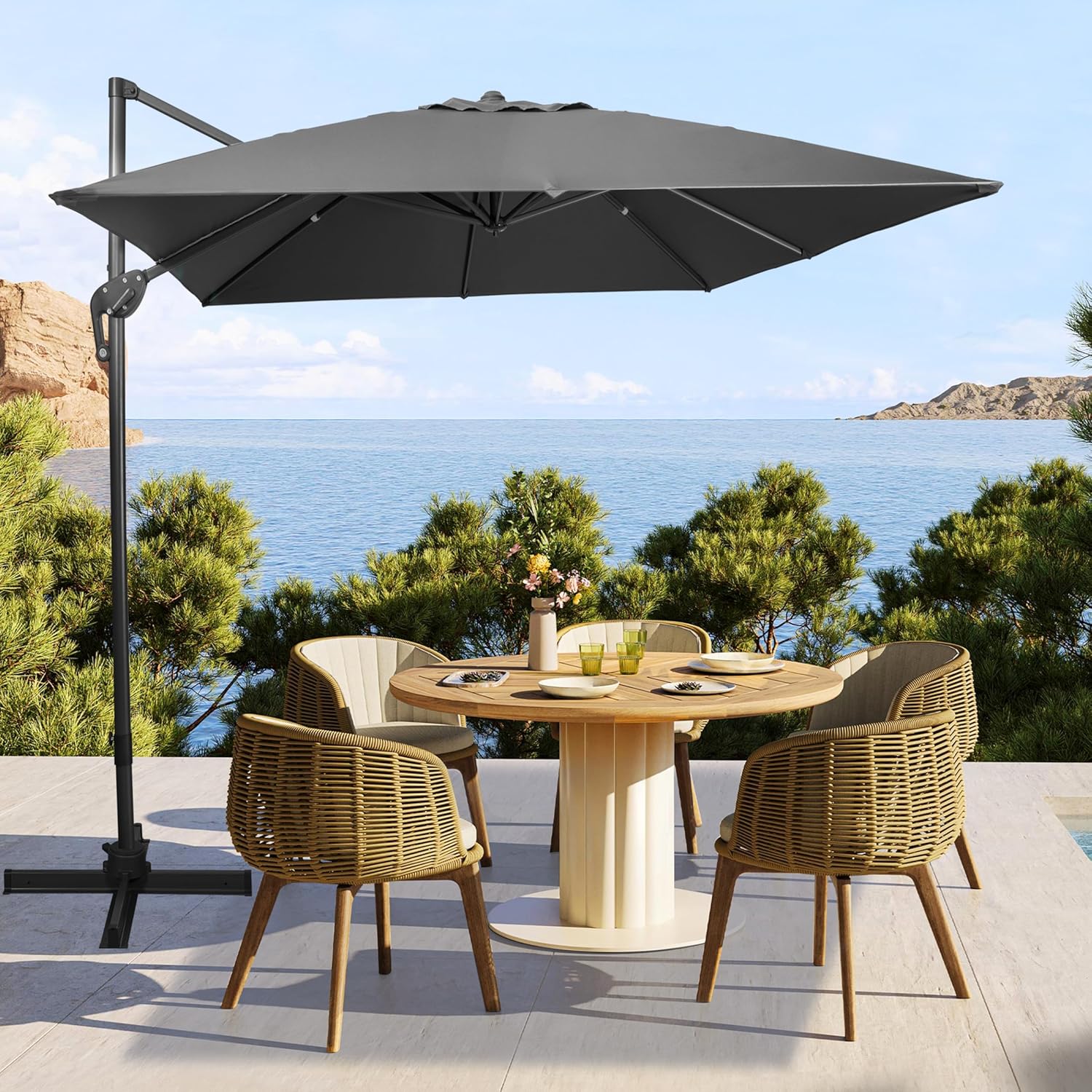 10x10Ft Cantilever Patio Umbrella Square Deluxe Offset Umbrella 360°Rotation & Integrated Tilting System Heavy Duty Patio Hanging Umbrella for Market Garden Deck Pool Backyard Patio
