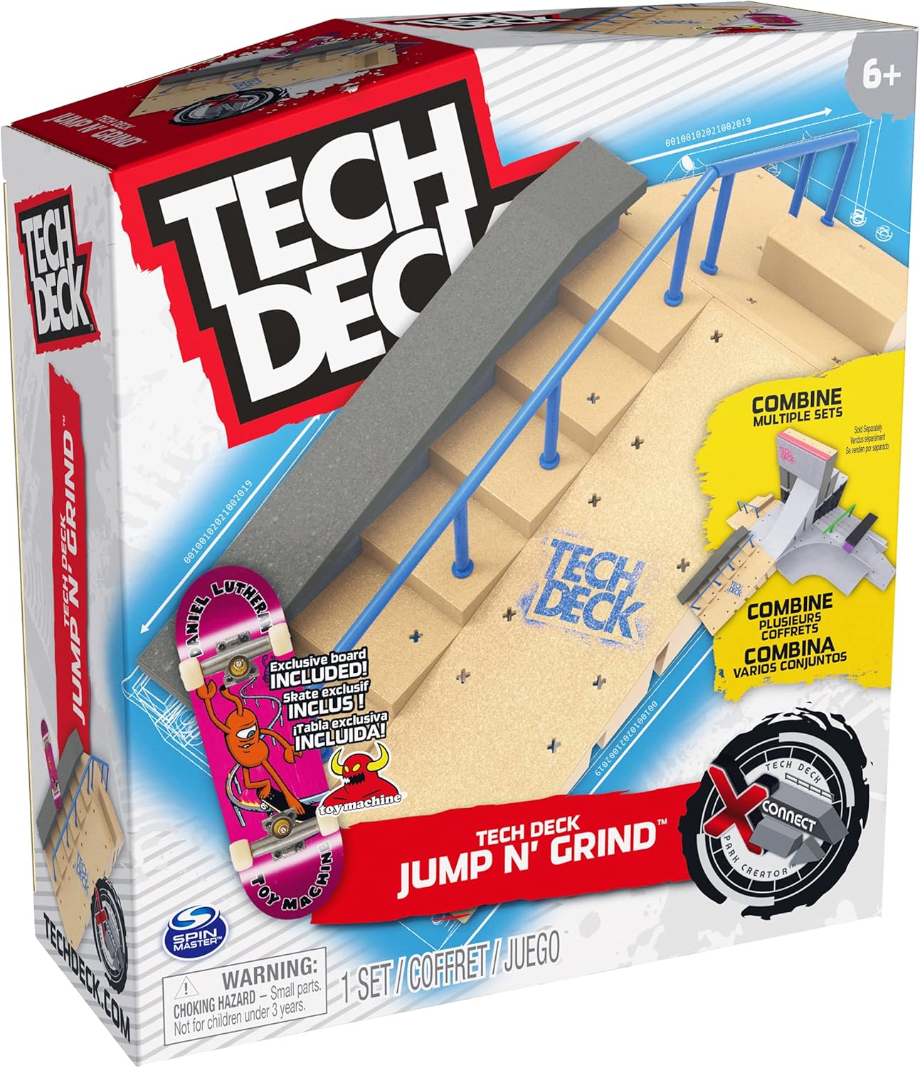 Grab some air with Tech Deck, the real deal fingerboards featuring authentic graphics from real skate companies! The Jump N’ Grind X-Connect Park Creator ramp set includes everything you need to build an awesome custom park for you to perfect your finger skateboard skills. Set up different combinations with two rails, a staircase, hubba ledge, and ramps to learn and progress your tricks. Gap the stairs, slide the ledge, grind the rail, or set up and customize the spot in any way you like. Skate the park with the included exclusive Daniel Lutheran signature Toy Machine Skateboards pro fingerboard and add to your mini skateboard collection. Combine the park with other X-Connect compatible ramps, such as the Bowl Builder or Nyjah Skatepark ramp sets (each sold separately) to build the ultimate fingerboard park for you to shred. Use the Jump N’ Grind X-Connect Park Creator with your Tech Deck fingerboard collection or Tech Deck BMX (each sold separately). Tech Deck mini skateboards for fingers and ramp sets make the perfect gift for girls toys age 6-8 who love small toys and cool toys or as an alternative to toy cars as a boys toys age 6-8 item. If you want real skate graphics from real skate companies, then it has got to be Tech Deck — start small, go big and collect them all.
