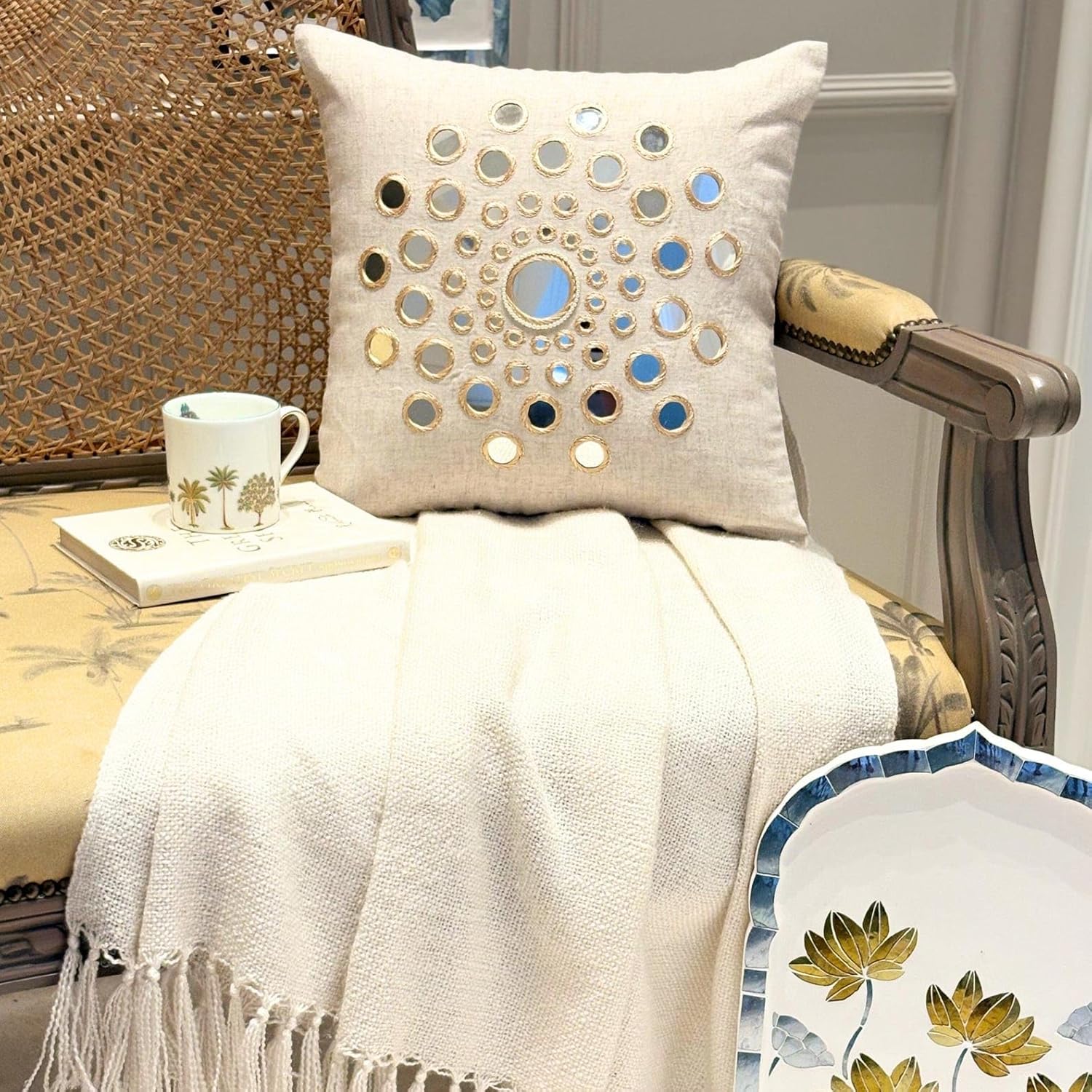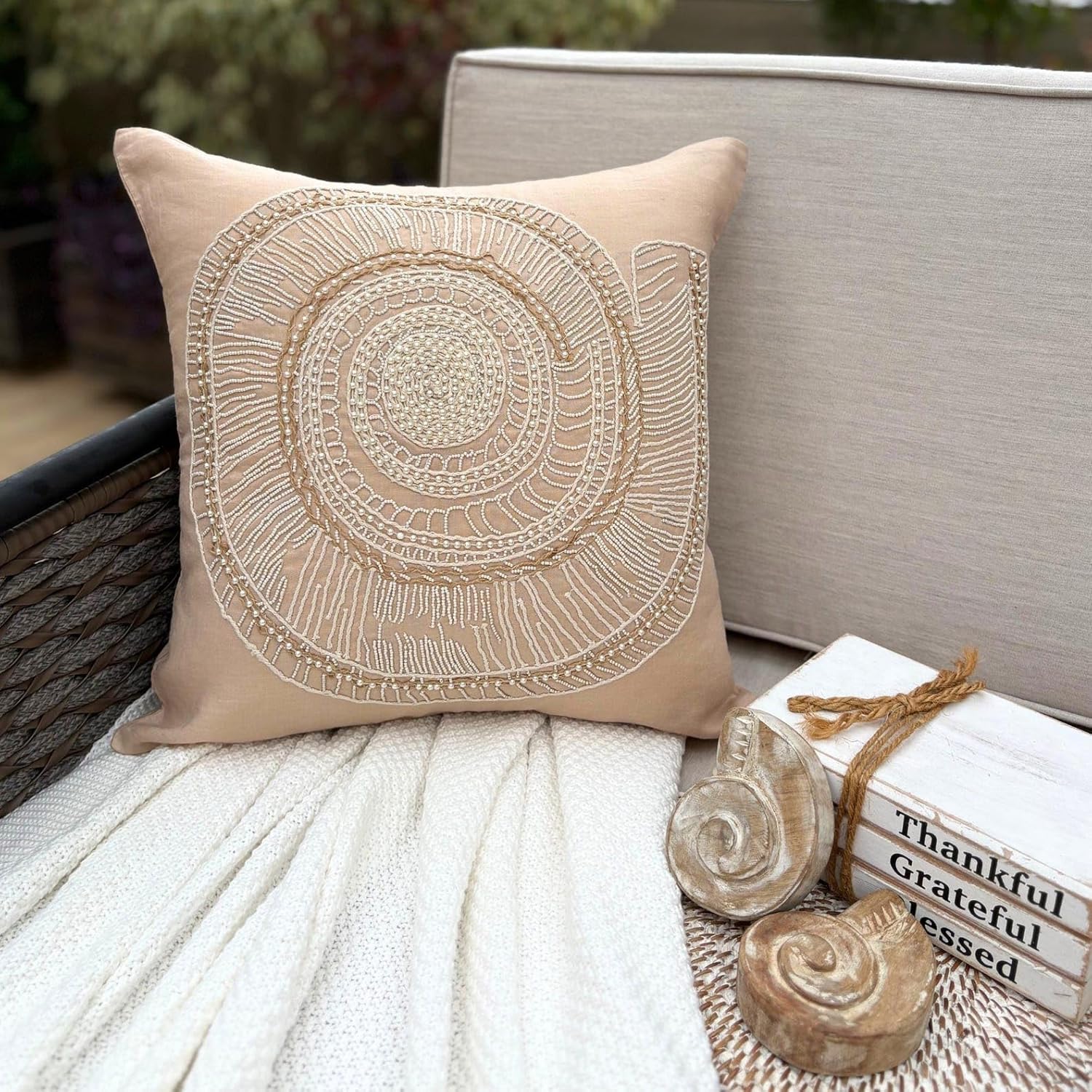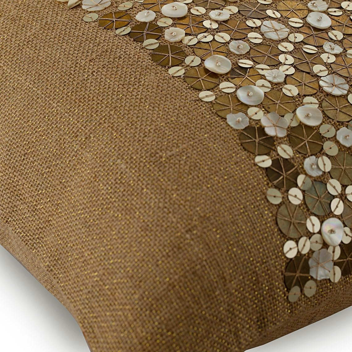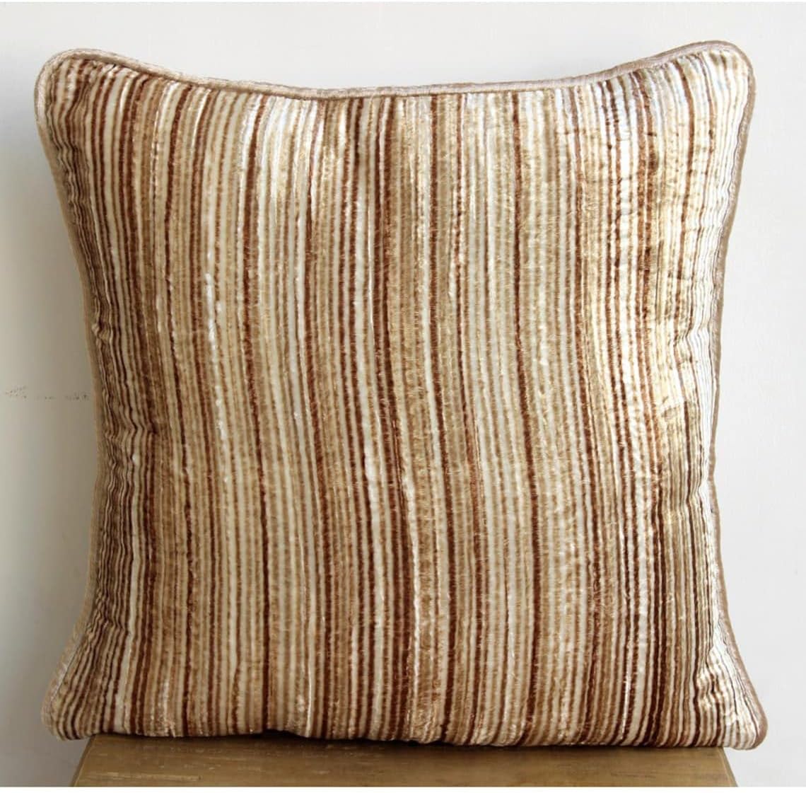 Wave Of Gold is an exclusive 100% handmade decorative pillow cover designed and created with intrinsic detailing. A perfect item to decorate your living room, bedroom, office, couch, chair, sofa or bed.Decorative Throw Pillow Cover Details:Condition: 100% Brand NewDimension: 16 x 16 inch (40 x 40 cm)Fabric: Art SilkMaterial: SilkColor: BeigeColor Map: BeigePattern: AbstractStyle: ModernBack of the Cover: Plain fabric with concealed flap covered zipper on the back for easy insertion and removal of insertsNote: This listing for decorative throw pillow cover does not include Pillow or Inserts. We do not sell pillow inserts on our store. Due to the difference in computer monitors, actual colors may slightly vary.The HomeCentric is the place where luxury is coated in comfort. Coveted by many, we offer a wide range of decorative pillow covers, euro shams, bed runners, table runners, duvet covers and even fabrics for your curtains and other home decor products. Handcrafted by Indian artisans, our products exhibit fine finishing and style to meet all your expectations.Our services reach out from customization to endless effort from your first click to the day we deliver and even after that. Feel The HomeCentric as your home for decor.