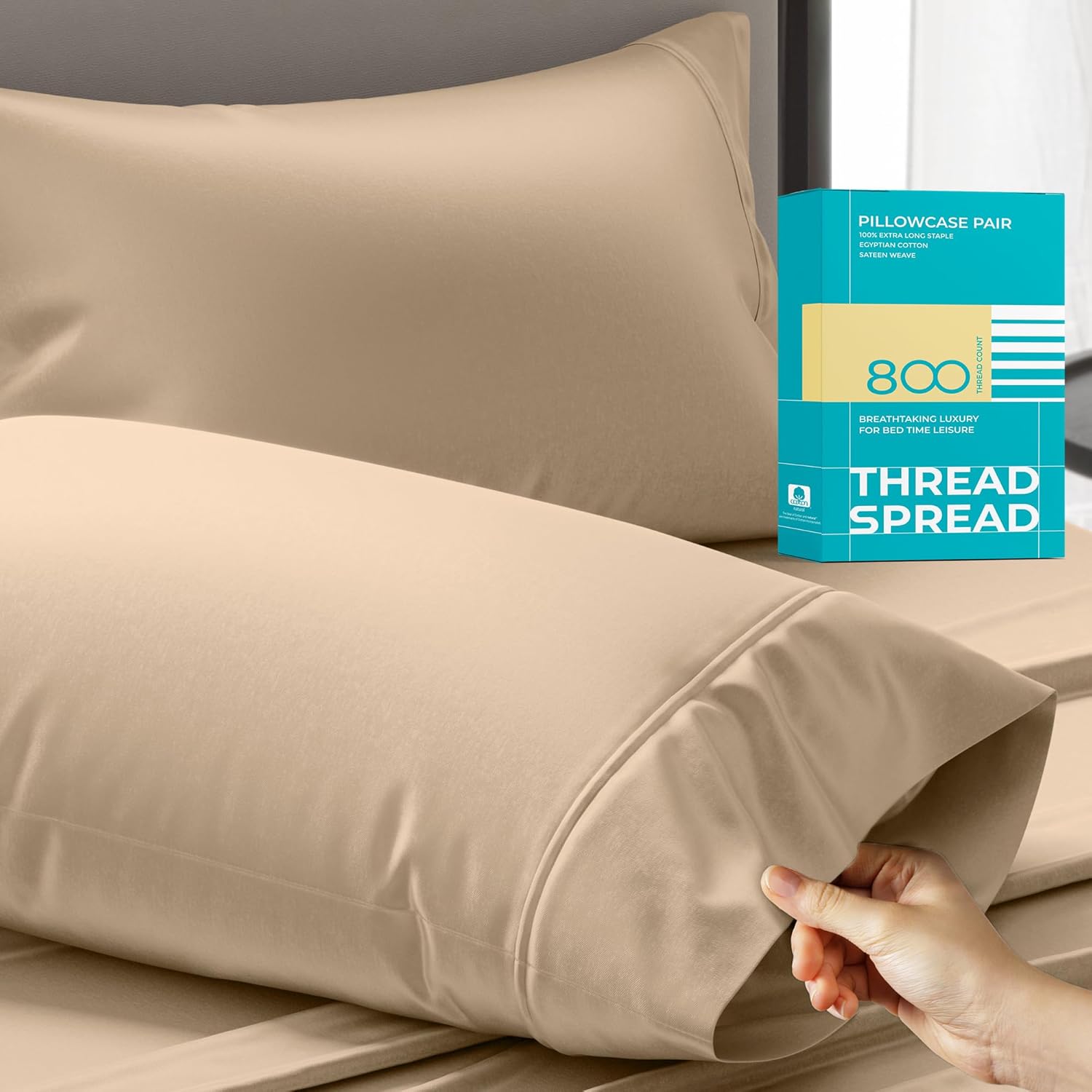 WHAT’S IN THE PACK? Set of Two Standard/Queen Pillow Covers (21’’ W x 32’’ L) (53cm x 81cm) KEY DETAILS: ? Authentic 800 threads per square inch for the highest-quality pillow cases ? 100% extra long staple Egyptian cotton for improved softness and durability ? Finished with a sateen weave for a rich, luminous look ? Spacious and oversized pillow cases to fit any pillows ? Certified as STANDARD 100 BY OEKO-TEX ? Machine washable; do not shrink, fade, or pill OUR SOFT & CLOUD-WEIGHT PILLOWCASES: Woven from the highest-quality 100% extra long staple Egyptian cotton, these 800 thread count pillow cases queen size set of 2 are softer and more luxurious for the best sleep. Cloud-weight and buttery-smooth, these standard pillow case set of 2 are loved for their five-star hotel luxury, all-season cooling, and unmatched durability. DESIGNED KEEPING YOU IN MIND: We consider every detail to make our linen stylish and functional for you. Each queen pillow cases set of 2 has a luxurious 4-inch hemstitch and inline sturdy stitching. Pillow cases are large and well sized to easily fit your pillows. SAFE FOR YOU & YOUR FAMILY: Unlike microfiber and other fabrics, Egyptian cotton is naturally-grown without the use of unwanted substances, making it safe for you and your family. Our STANDARD 100 by OEKO-TEX certification ensures no unwanted substances get into the bedding for better sleeping at night. CARE INSTRUCTIONS: We recommend washing the Egyptian cotton pillow cases queen in a machine using warm/lukewarm water. Line dry or tumble dry, then fold the cover to avoid wrinkles. Our cotton pillow cases resist pilling, fading, and shrinking.