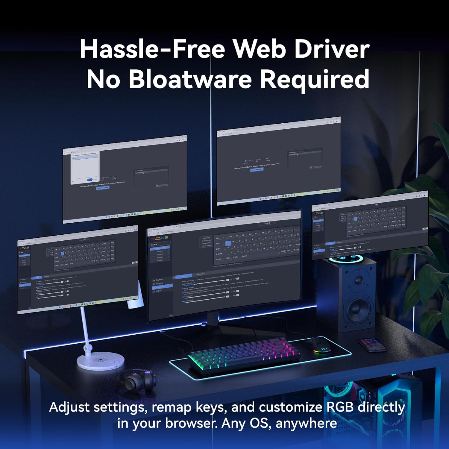 | Additional Features | Hall Effect Magnetic Switches, Rapid Trigger Adjustable Actuation, 8000 Hz Polling Rate, Driver-Free Customization |