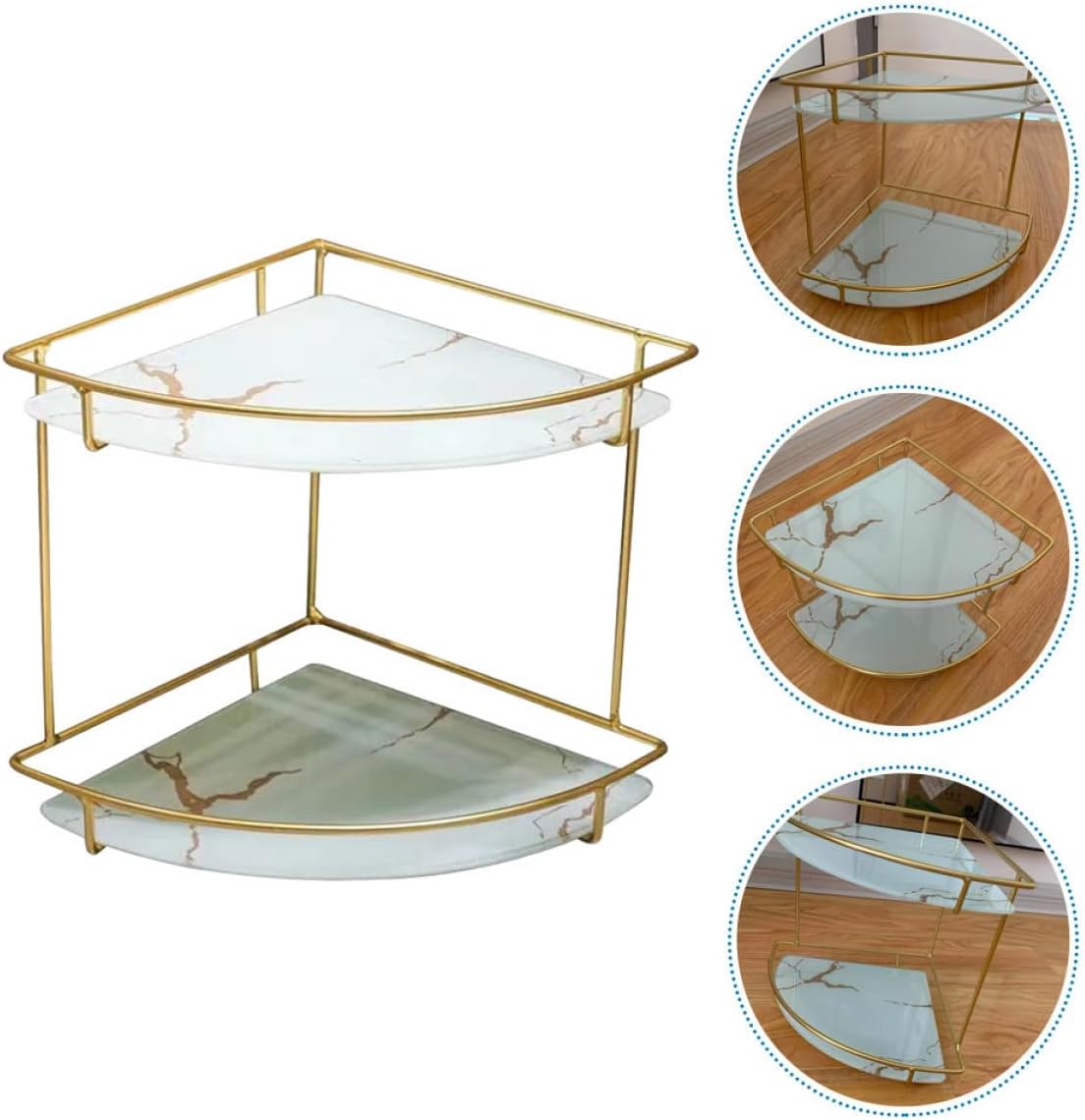 Package Include 1 × Corner Shelf Features - Color: Golden -Product Info:Skin care storage rack - Material: Iron, glass - Size: 30.00X23.50X22.00cm/11.79X9.24X8.65in - This storage rack is made of , which is not easy to deform, has strong bearing capacity and can be used for a long time. - It is designed into a triangular shape, which is perfect for placing in the corner of the kitchen and bathroom Corner Storage Shelf. - The base board of the corner shelf can be disassembled, which makes it very convenient to clean and install Triangular Corner Rack. - This display shelf has two layers, very simple to install, very practical to use, bring convenience to your life Shower Corner Rack. - The storage rack has more storage space, can be installed easily, and can be placed in other places according to your needs Desktop Storage Rack.Goods InformationDesktop Storage Rack The installation is simple and convenient, the details are perfect, practical to use.Wash Table Corner Rack The corner shelf has strong load-bearing capacity and simple style, suitable for a variety of.Kitchen Storage Shelf Are you looking for the right shelf? This product is perfect for you