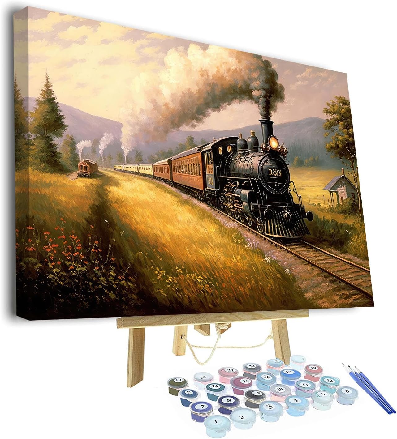 TUMOVO Paint By Numbers for AdultsAs a professional modern painting manufacturer, TUMOVO committed to bringing better products to our customers, ensure our customers have a good user experience. Paint by Numbers has become a style of art created by filling in pre-numbered areas on a canvas panel with matching colors of paint. This art form is popular again and TUMOVO is leading with more new designs for you to enjoy.🌈 Item Specifications:Unfold Size: 16"x20" (40x50cm)Frame: Not includedFeature: DIY, leisure, fun, artistic, environmental friendly🌈 Feature:◆High quality pure cotton canvas, have texture tactility, easy to color.◆Friendly non-toxic non polluting paint, bright colors, do not fade.◆Figure is clearly visible, can be fully covered with paint, to achieve good results.🌈 TUMOVO Paint By Numbers Advantage:✔High coverage paint.TUMOVO's pigment is made of friendly, healthy, non-toxic and odorless material, it has high spreadability and you can modify it when make a mistake. Bright color, make your painting is more real.✔Waterproof.The numbers painting is waterproof after the pigment dried. Wipe it with a damp cloth when the surface has dust.✔High stretch nylon brush.3 different size paintbrush can be applied for different area in the pre-printed canvas, which make you easy to color up number picture fluently and smoothly.✔Get creases out easily.You can use the iron to get creases out from backside of canvas before painting(non-printed side).🌈 Package Included:1 set of paints1 x canvas (without frame)3 x brushAccessories: paper packaging + hook + number drawing + renderings