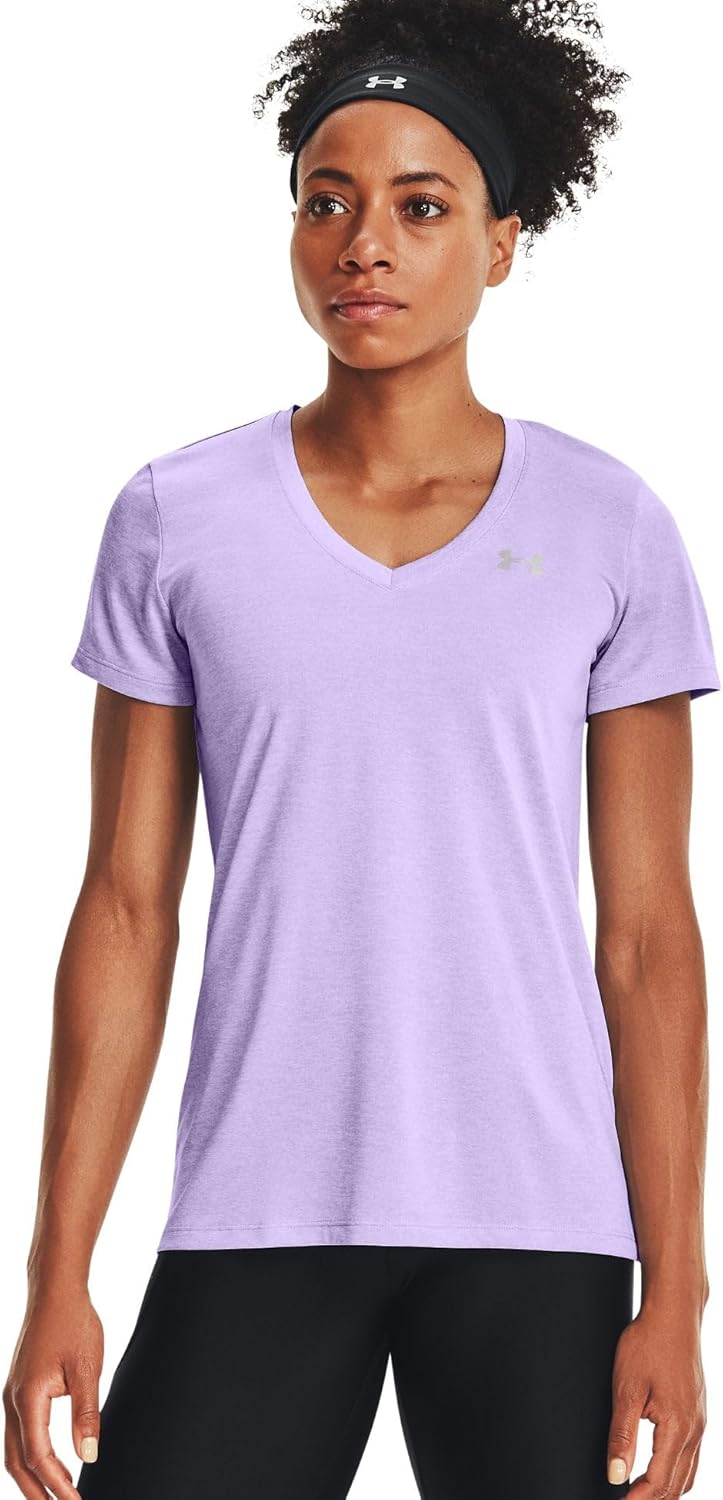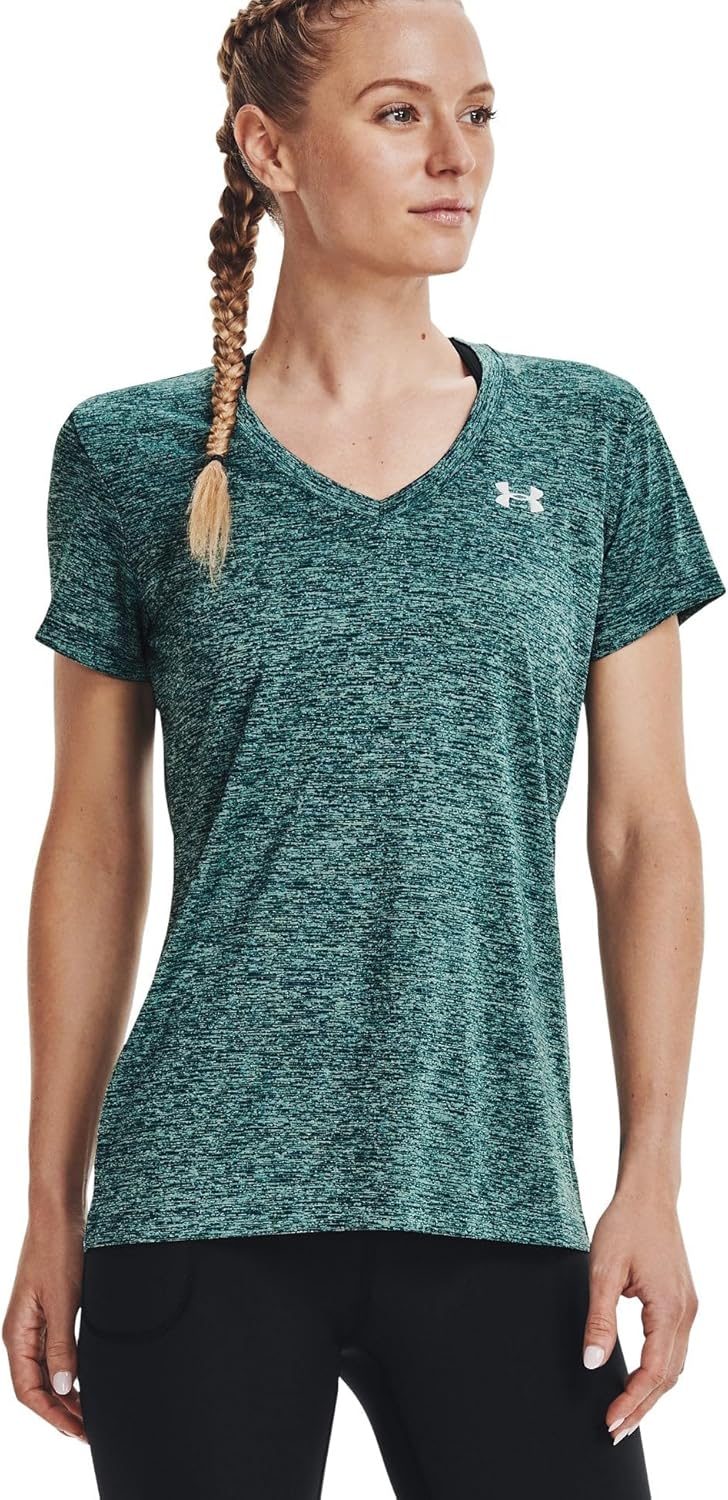 The Under Armour women's UA Twisted Tech V-neck T-shirt is loose, light, and it keeps you cool. It's part of our original go-to training gear, and it's everything you need. UA Tech™ fabric is quick-drying, ultra-soft & has a more natural feel. Material wicks sweat & dries really fast. 4-way stretch construction moves better in every direction. Deep V-neck collar. Allover twist effect. Loose:Fuller cut for complete comfort. 100% Polyester.