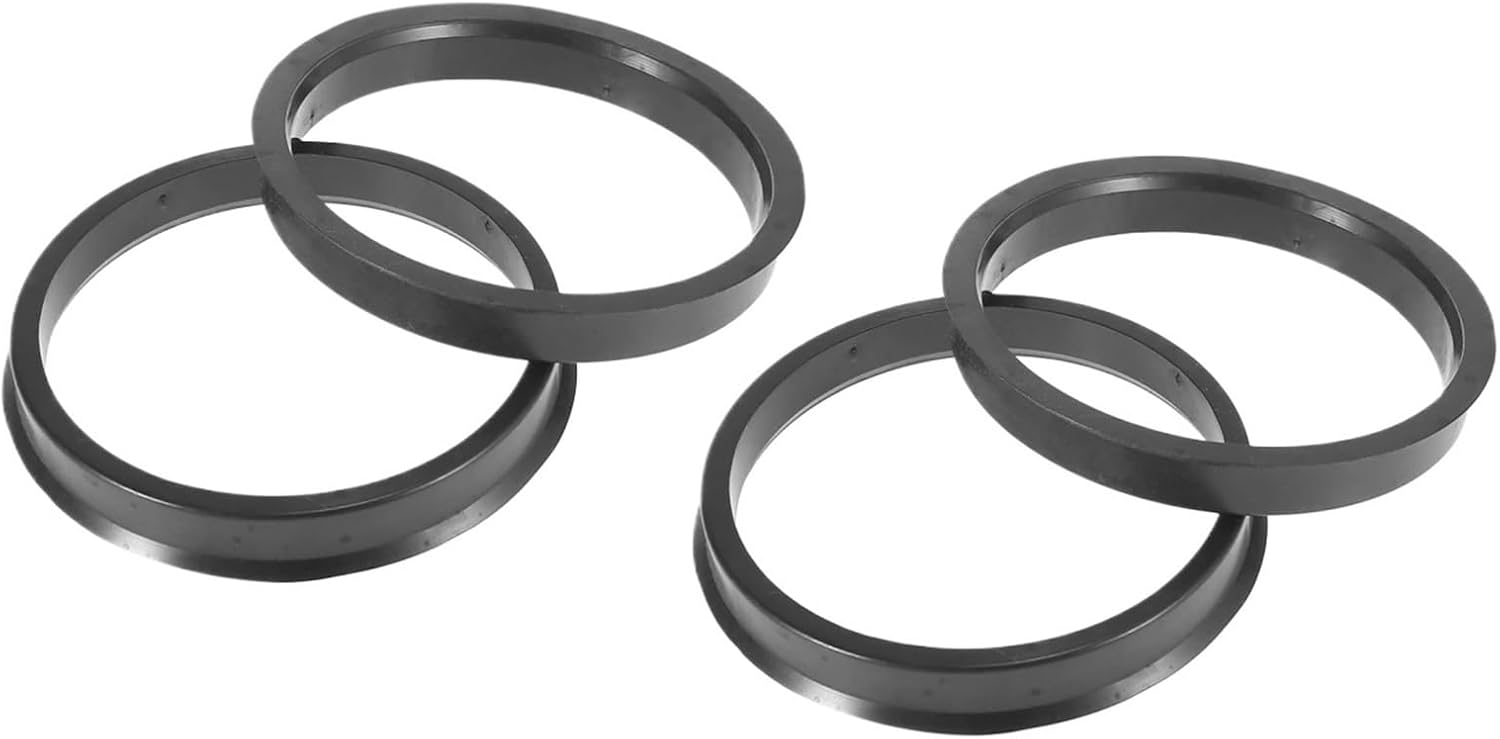 "4pcs Plastic Car Hub Centric Rings Wheel Bore Center Spacer 64.1mm to 66.6mm 65.1mm to 72.56mm 72.56mm to 74.1mm.Description:This device is installed between the vehicle's hub and the wheel.The hub ring fills in the gap between the vehicle hub and the center bore of the wheel.Ensures a precise fit between your wheel and the hub.Designed to eliminate unwanted steering wheel vibrations.Precision machined to stop vibrations and ensure a snug fit every time.How to chose the hub ring?Hub rings are sized by using two different numbers that are measured in millimeters.The smaller of the 2 measurements such as 72.56mm is the inner diameter. This should match your vehicle's hub bore.The larger of the 2 measurements such as 74.1mm is the outer diameter. This should match your wheel's center bore.Notes:The outside diameter of the spigot ring should fit the wheel's center bore in the back of the wheel.The inside diameter is the size of the wheel hub on the vehicle you intend to fit the wheels too.Specification:Material: PlasticInner Diameter: (Vehicle Hub Size)72.56mm/2.86"Outer Diameter: (Wheel Bore Size) 74.1mm/2.92"Thickness: 10mm/0.39"Size: 10x74.1mm/0.39"x2.92"(T*D)Color: BlackPackage Includes:4 x Hub Centric RingsIdeal for stopping tires rubbing on body work.Wheel spacers widen your cars wheelbase, improving grip, handling, and precision.Made of metal material, it is sturdy and durable.