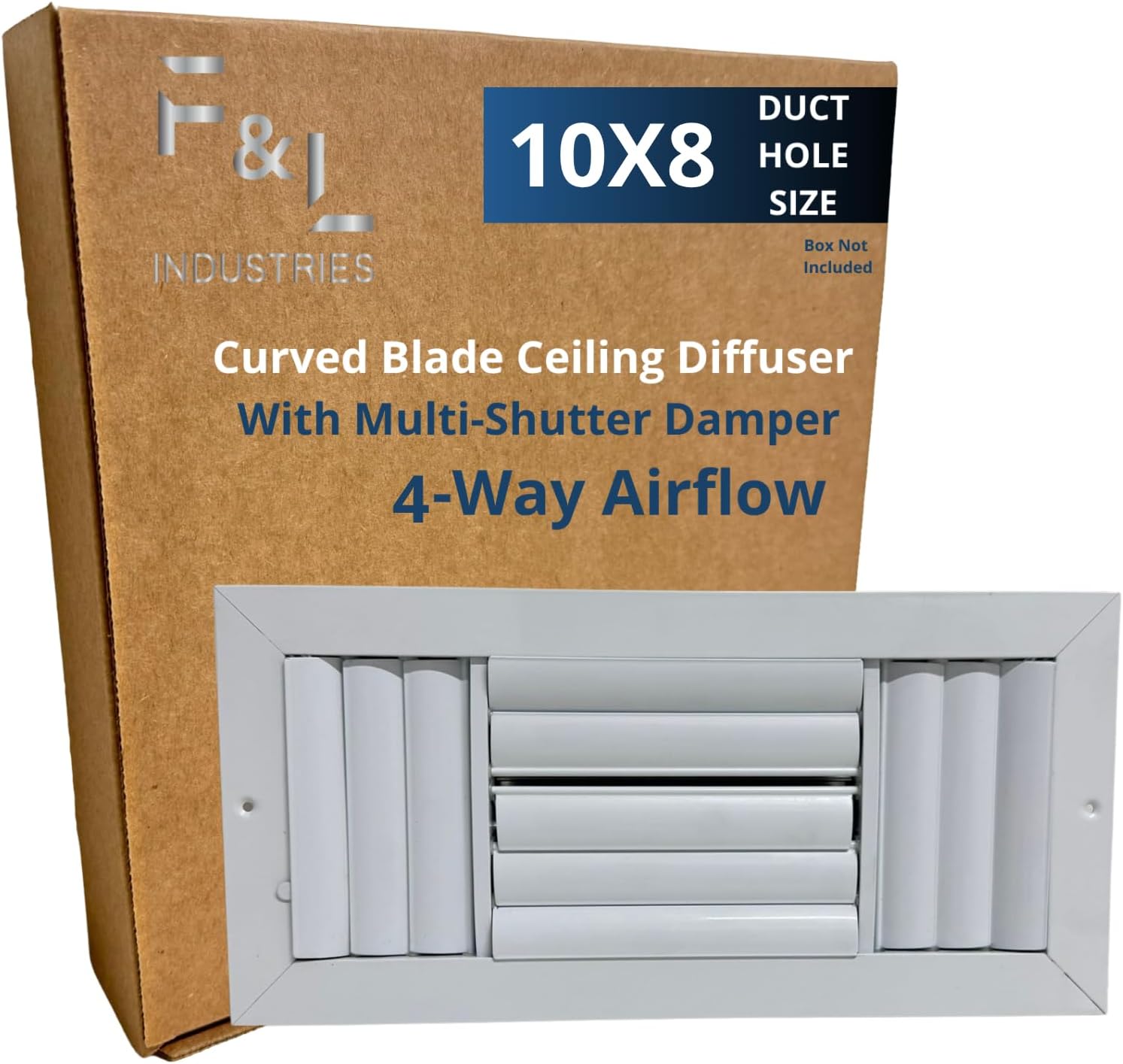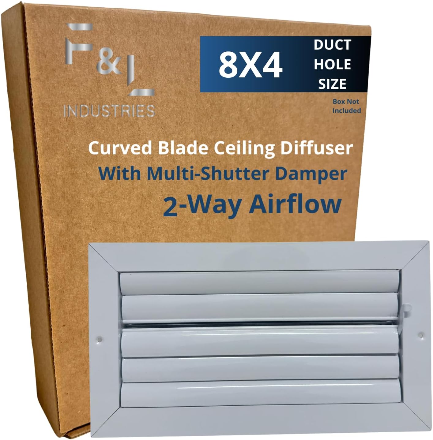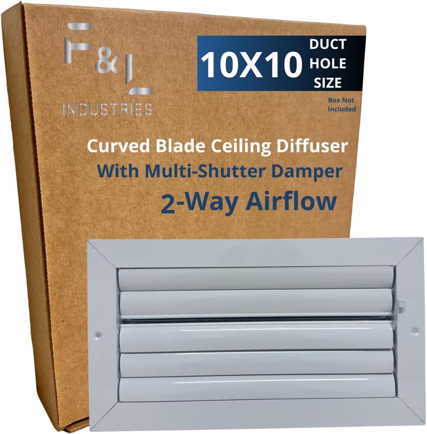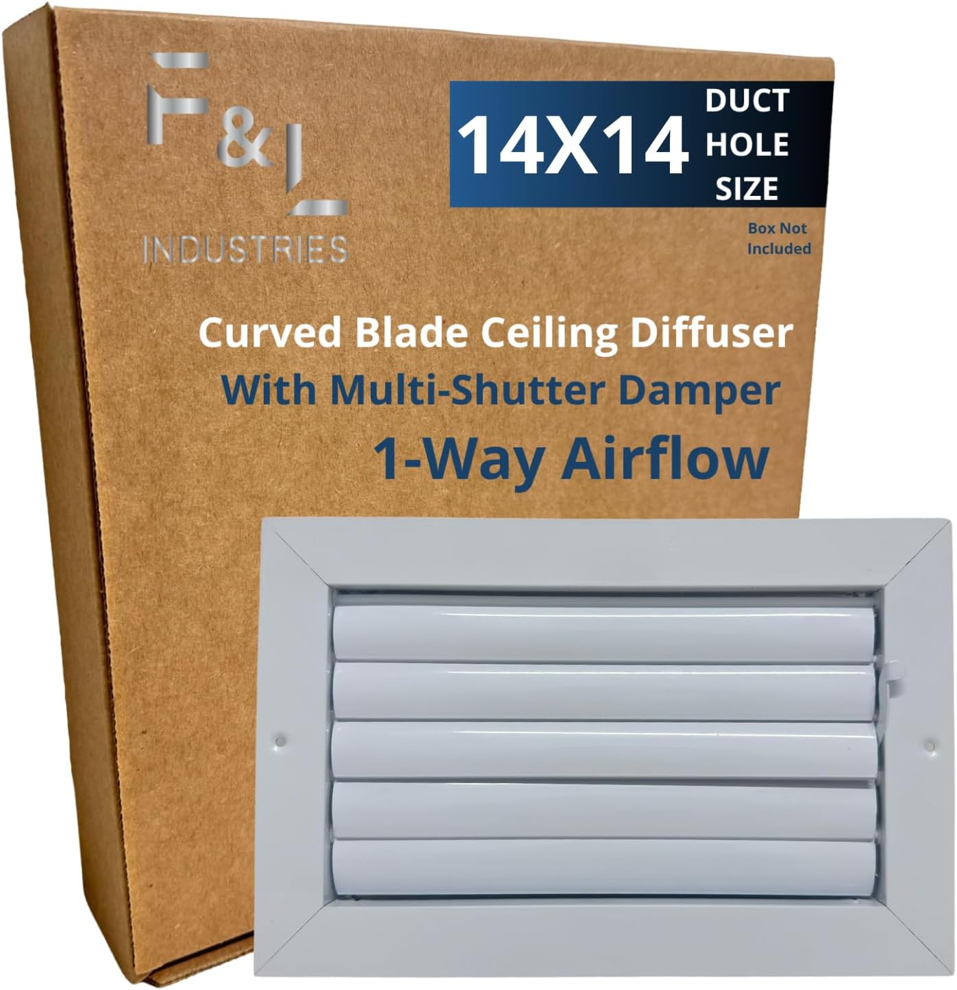 Upgrade Your Ventilation System with Our Curved Blade Ceiling Diffuser! This high-performance ceiling diffuser combines functionality and style, offering a curved blade design for smooth, uniform air distribution. The 2-way directional airflow capability allows you to tailor air movement for maximum comfort, while the integrated multi-shutter damper gives you precise control over airflow volume and pressure. Crafted from durable, high-quality materials, this diffuser is built to withstand years of use in both residential and commercial settings. Whether you’re enhancing air circulation in a home, office, or retail space, this diffuser seamlessly integrates with standard HVAC systems for effortless installation. Designed with a sleek, low-profile look, it complements modern ceiling aesthetics, making it an attractive addition to any space. Not only does it enhance comfort, but it also boosts energy efficiency, reducing HVAC workload and cutting down on energy costs. Perfect for: Homes seeking better air circulation and improved indoor air quality. Offices looking for precise airflow control for employee comfort. Commercial spaces needing reliable and efficient ventilation solutions. Upgrade your space with our Curved Blade Ceiling Diffuser with Multi-Shutter Damper—the perfect blend of performance, durability, and style. Click "Add to Cart" now to transform your airflow today!