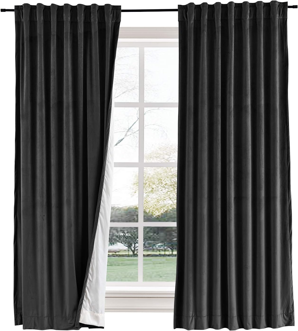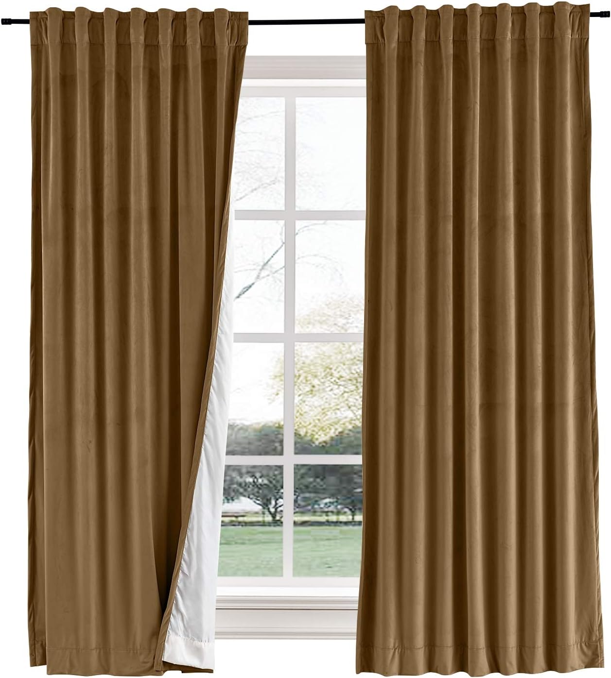 Sleep better while saving money Create complete darkness in any room of your home with a black-out curtain by Curtains Your Way. Crafted from heavy-weight plush velvet fabric and boasting a light-blocking interlining, this stylish drape locks out 95% to 99% of light and UV rays. Their light-blocking properties also make our blackout drapes ideal for darkening movie rooms. With 10% to 25% of thermal energy loss coming from windows, its temperature-regulating qualities also keep the room warmer in winter and cooler in summer, for greater overall comfort and efficiency. Durable, dramatic window coverings for any room Sold here in single panels, Create Your Way Blackout Curtains are made of richly colored, sophisticated velvet for superior draping ability and easy care. Panels are made of machine-washable 100% polyester, and are fade-resistant and silky-soft. They are also suitable for quick ironing or steam cleaning as needed. These lush, elegant velvet curtains immediately transform your living room, bedroom or office into a comfortable and inviting space. Installs with ease in seconds Thread trimmed and wrinkle-free, they are ready for use upon arrival. Each of our 120"W x 84"L thermal blackout curtains has 16 integrated tabs that accommodate any standard curtain rod or pole. Simply thread the panel onto the rod and then affix the rod with curtain over your window. The room instantly takes on a cozy ambience that invites relaxation and blissful slumber. Create a cozy setting for relaxation and sleep. Add Curtains Your Way Black-Out Window Curtain Panels to your cart today.