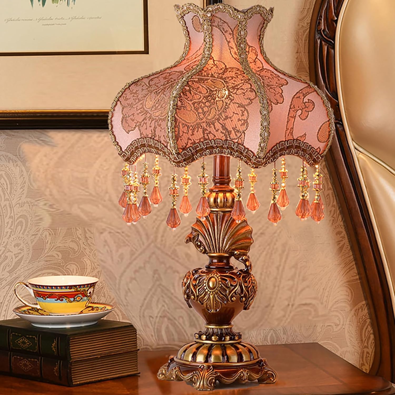 Our exquisite European-style table lamp, the perfect addition to your bedroom or bedside. This lamp combines the charm of vintage design with modern elegance, making it a beautiful and functional piece for any living space. Crafted with attention to detail, this table lamp features a delightful fabric embroidery lampshade that adds a touch of sophistication. The intricate embroidery is sure to catch the eye and create a warm and inviting ambiance in your room. The lampshade is made from high-quality fabic materials that ensure durability and long-lasting use.The lamp body is made from resin, which not only adds a touch of luxury but also provides stability and sturdiness.The table lamp is perfect for use in the bedroom, specifically as a bedside lamp. It provides a soft and warm light that creates a cozy atmosphere, perfect for reading or winding down after a long day. Specification:Name:Victorian Style Table LampMaterial: resin, fabricSize:32x55cm(13x22inch)Switch Type: Button switchBulb Base:E26Light source type: incandescent, LED, Edison, energy saving lampWhether with light source: NOPower: 31W~40W (including)Voltage:AC 110V ~ 240V (including)Wattage: Max 40WThe package includes:1 x victorian Style Table Lamp(not including bulb)
