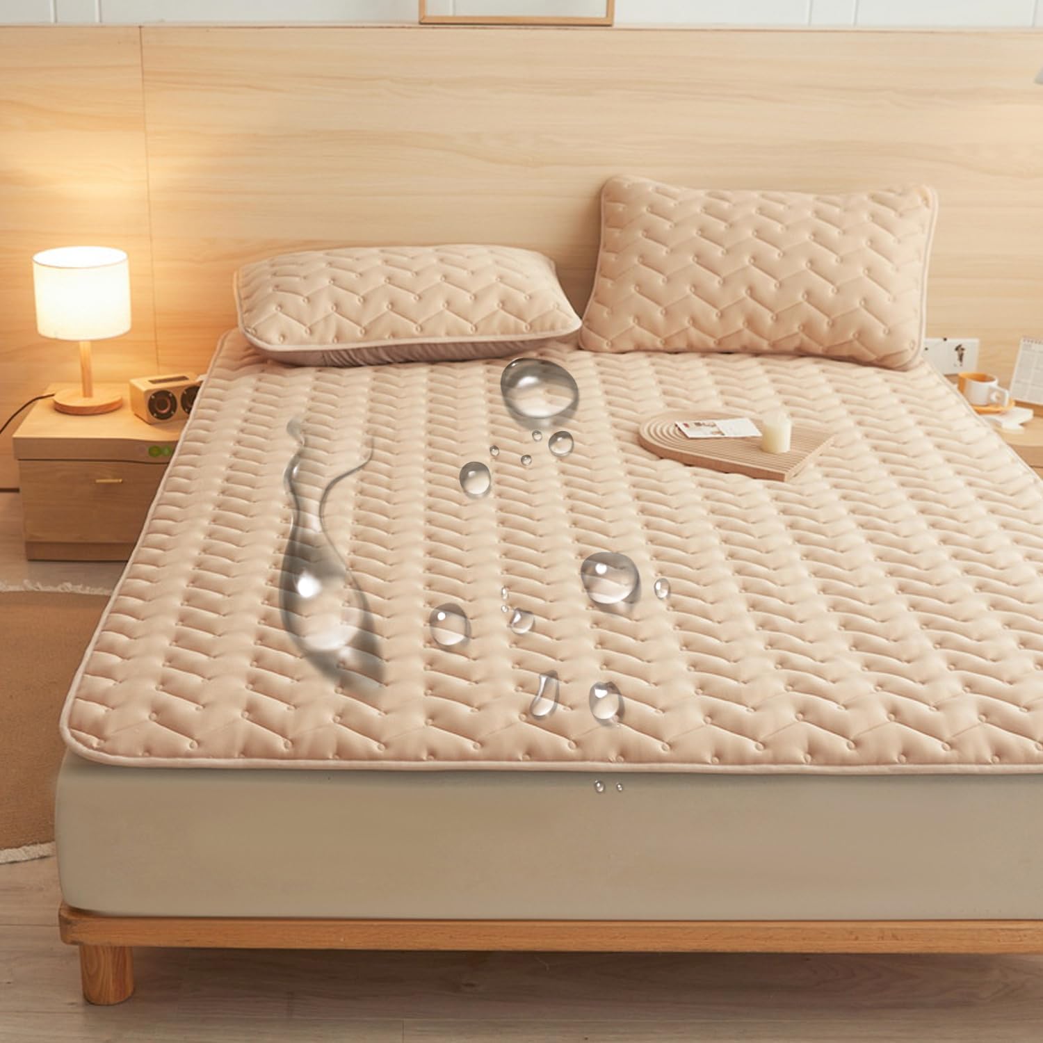 This mattress protector is designed with health in mind,While having waterproof technology,The middle layer is filled with soy fiber,Effectively waterproof and dust-proof,Make sleep healthierProduct fabric: raw cotton washed cottonProduct technology: TPU waterproof technologyProduct filling: soy fiberColor:a/1,a/2,a/3,a/4,a/5,b/1,b/2,b/3,b/4,b/5Size:90*200cm(35*79in)100*200cm(39*79in)(twin)120*200cm(47*79in)(full)135*200cm(53*79in)150*200cm(59*79in)(queen)180*200cm(71*79in)(king)180*220cm(71*87in)200*220cm(79*87in)pillowcase*2(48*74cm)(19*29in)Package Includes:1 x Mattress Protector(Pillowcase not included)If you need pillowcase, please choose "pillowcase * 2"Notes:Due to the light and screen setting difference, the item's color may be slightly different from the pictures.Please allow slight dimension difference due to different manual measurement.