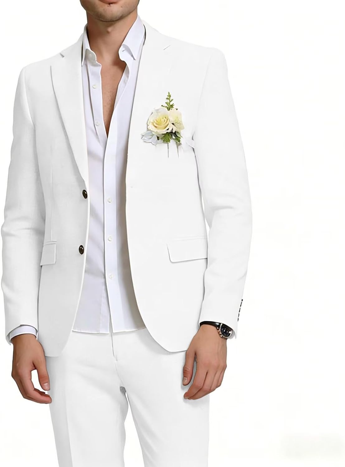 Package Include1*Linen Blazer+1*Linen PantsPlease pay attention to the following issues before you place an order1.do not look at the Amazon size chart for sizing.Please only look at our size table in picture 3 carefully before purchase to make sure it will fit.2.Our suits will be made as over 95% similar as the picture. So there may be a slight color difference between the photo and the finished suit (this isn't an error), because different display screens will have a little different show on same color3.Due to manual measurement, please allow us to have an error of 1 to 3 cm4.This linen suits is suitable for multiple occasions, such as summer beach weddings , homecoming, business meetings, fashion shows, parties, grand holidays or just daily use.